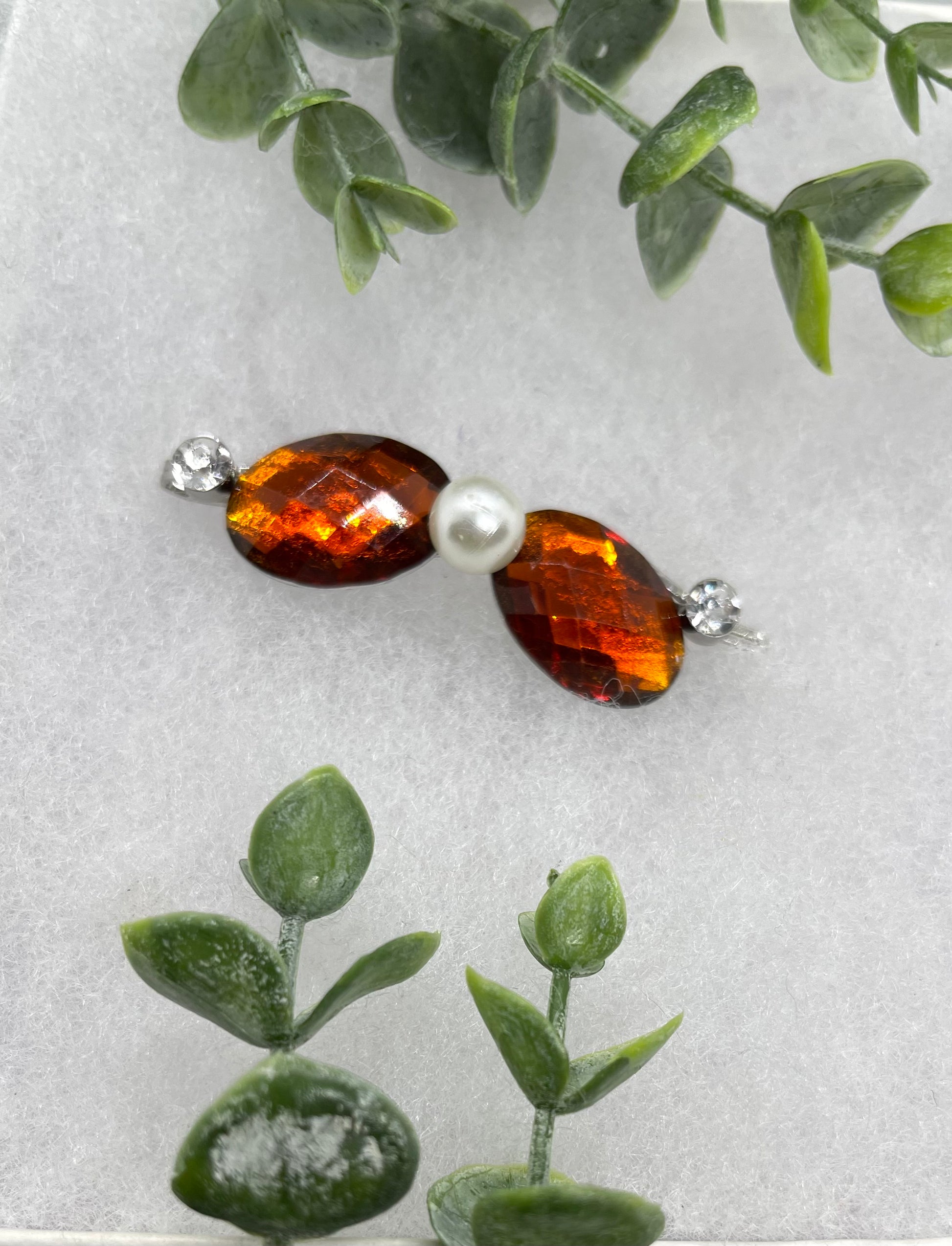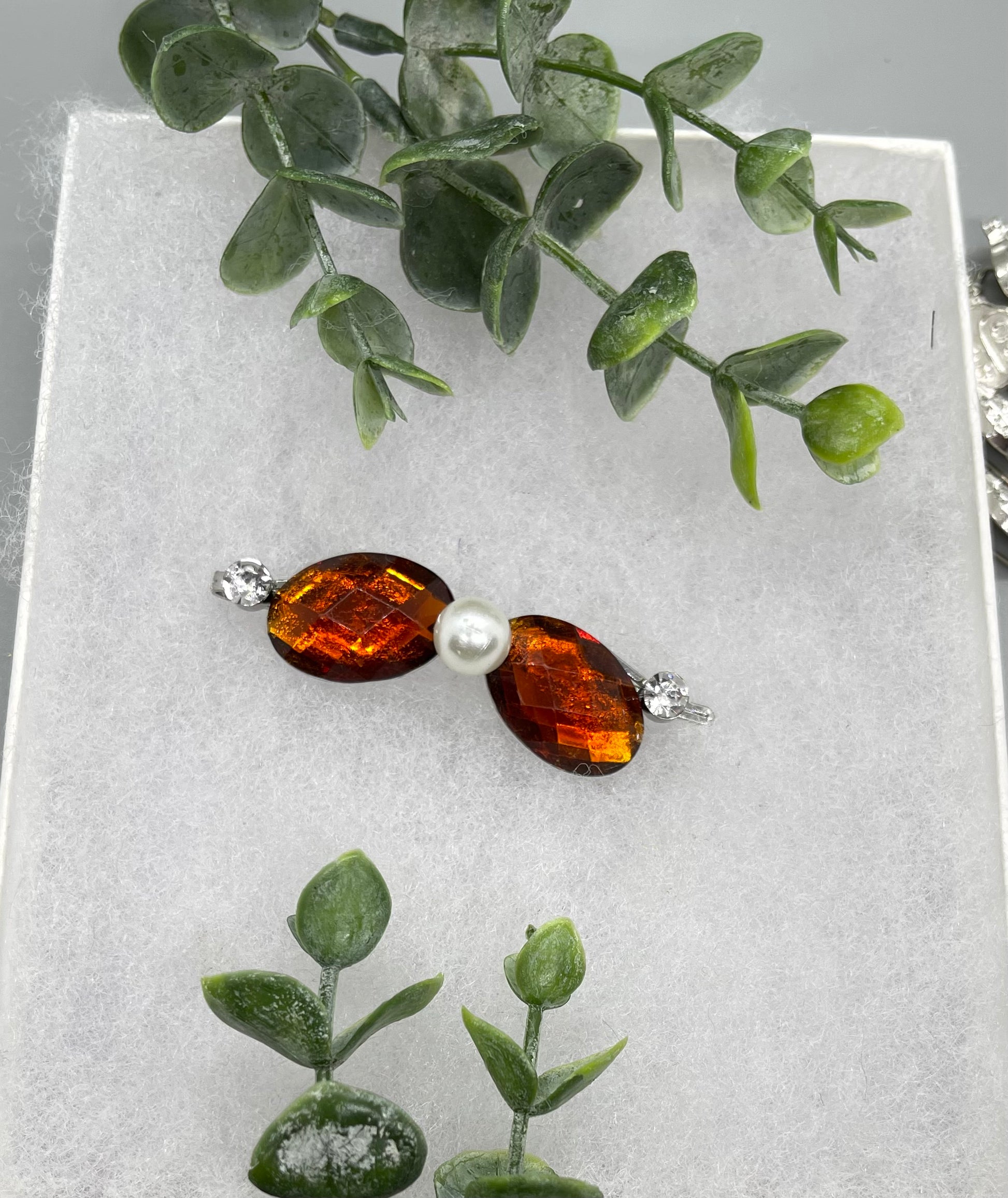 Brown faux Crystal Rhinestone Pearl hair pins approximately 3.0 ”silver tone formal hair accessory gift wedding bridal Hair accessory