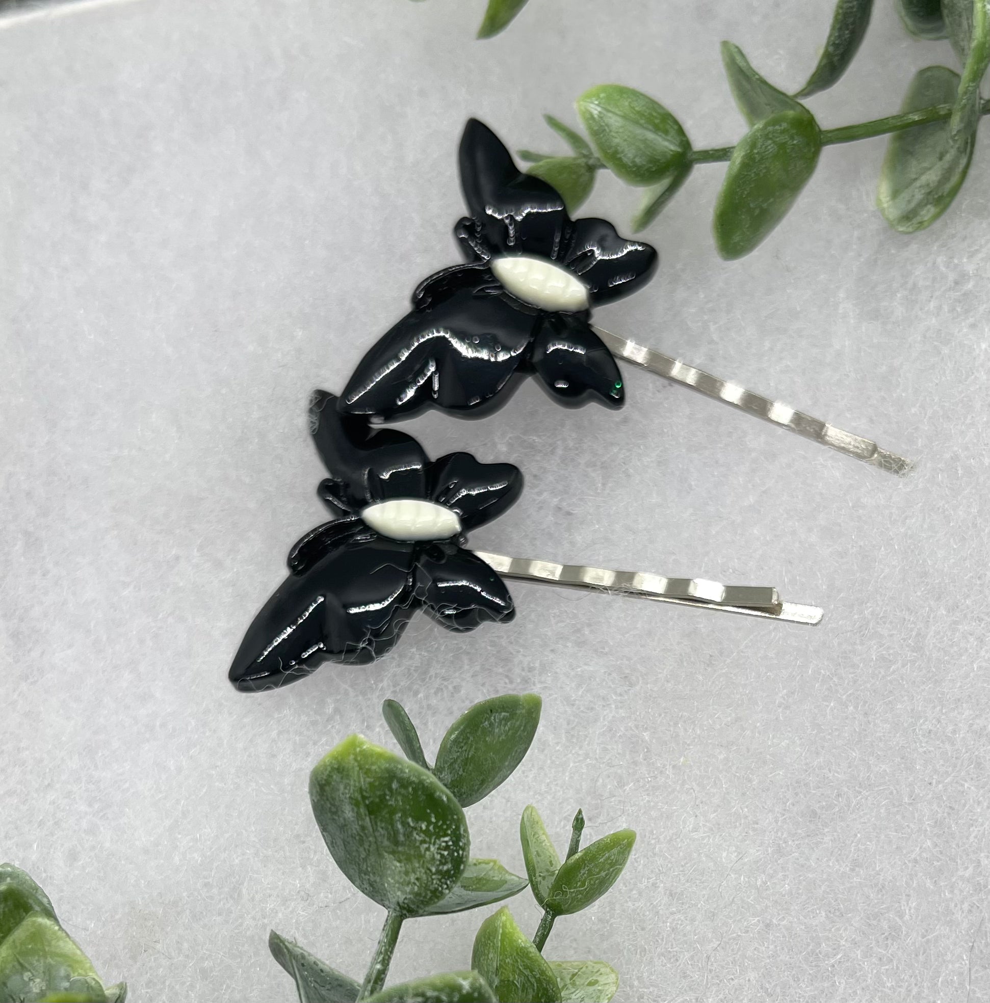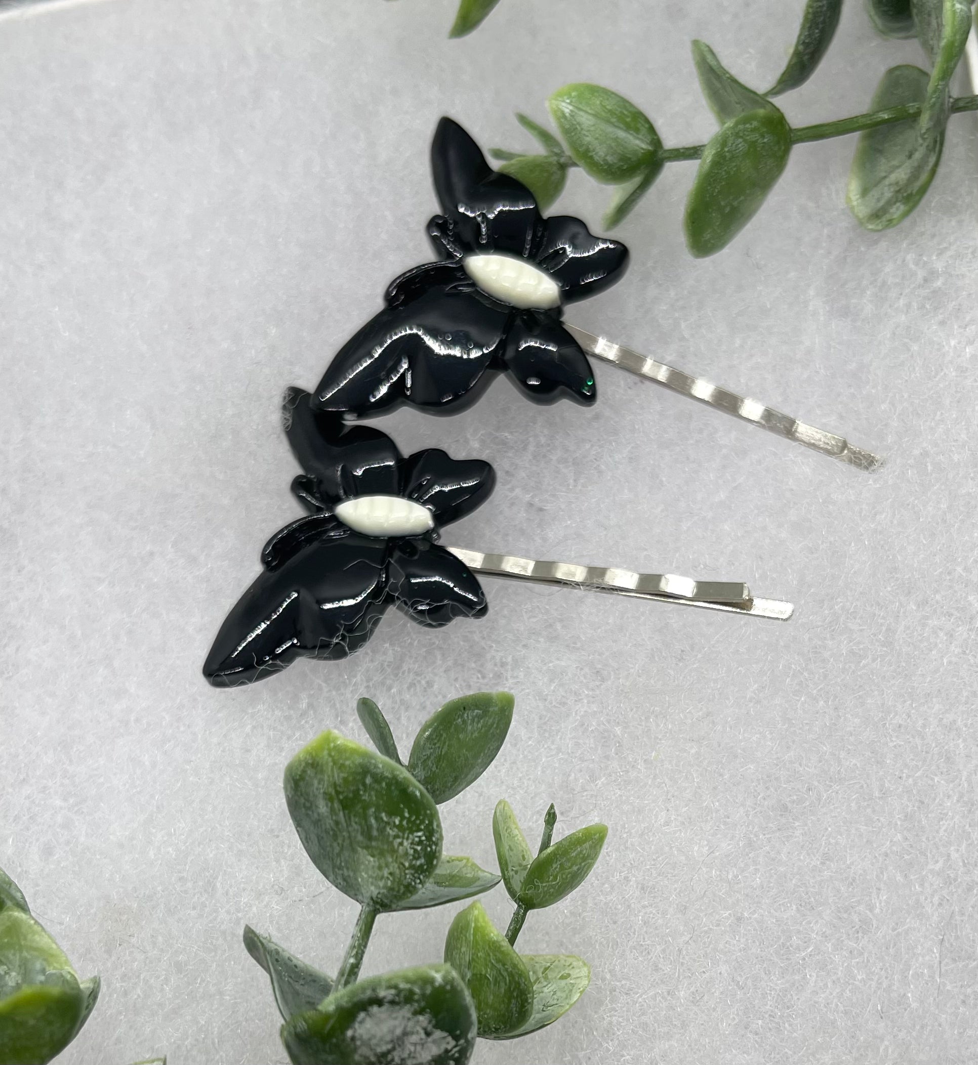 2 pc black white Butterfly hair pins approximately 2.0”silver tone formal hair accessory gift wedding bridal Hair accessory #004