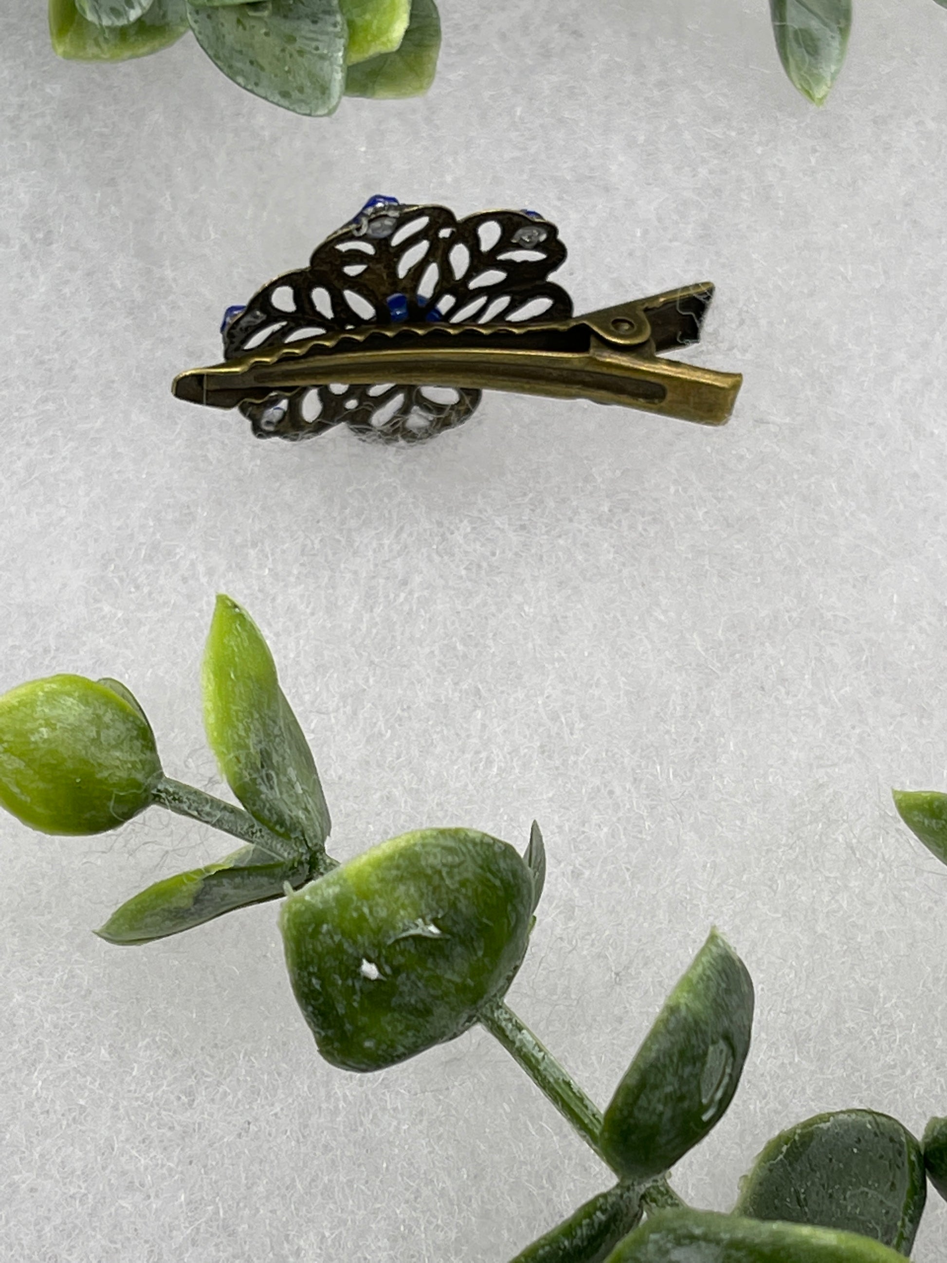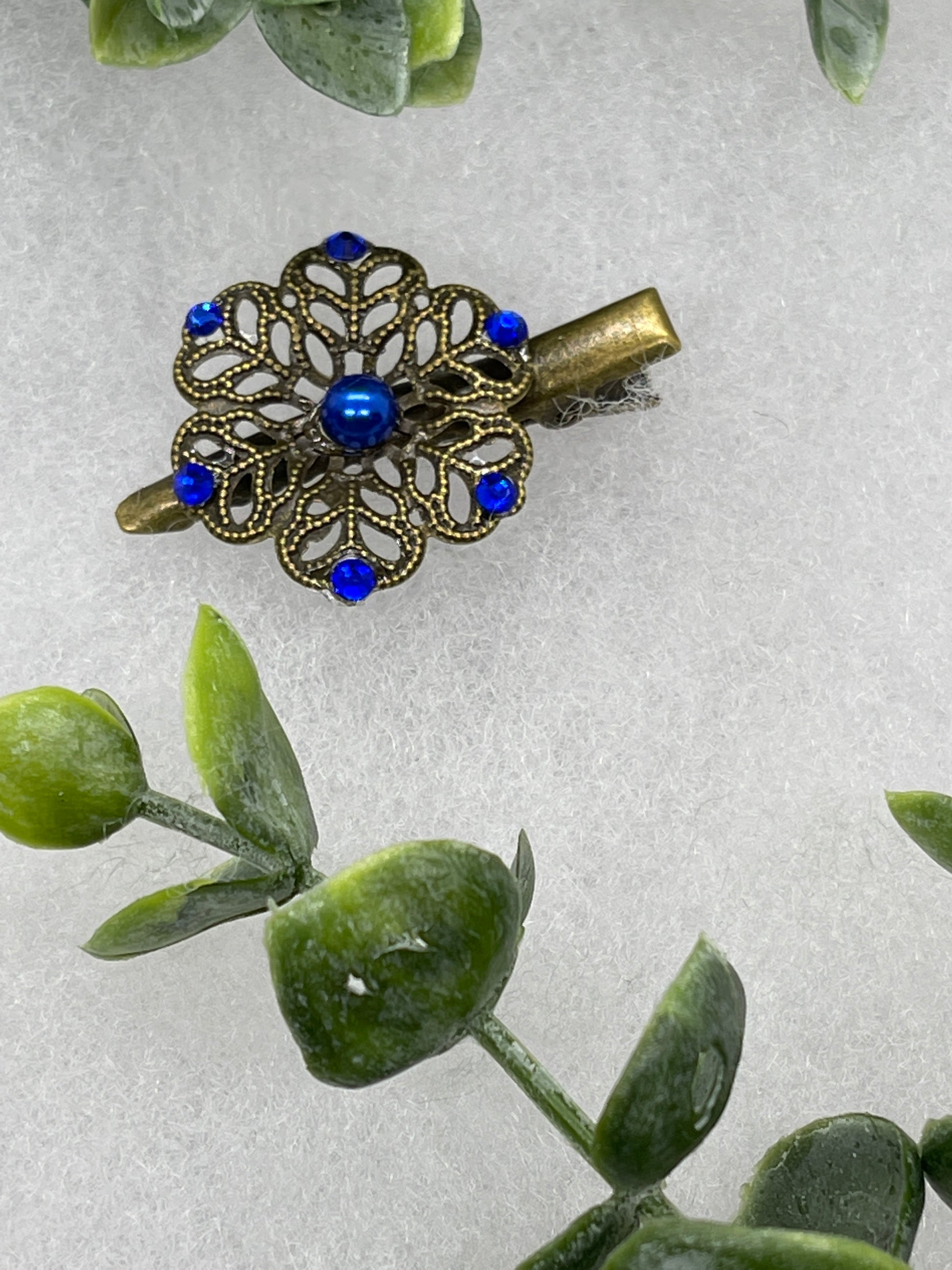 Royal blue crystal pearl vintage antique style flower hair alligator clip faux Pearl on a 2.0