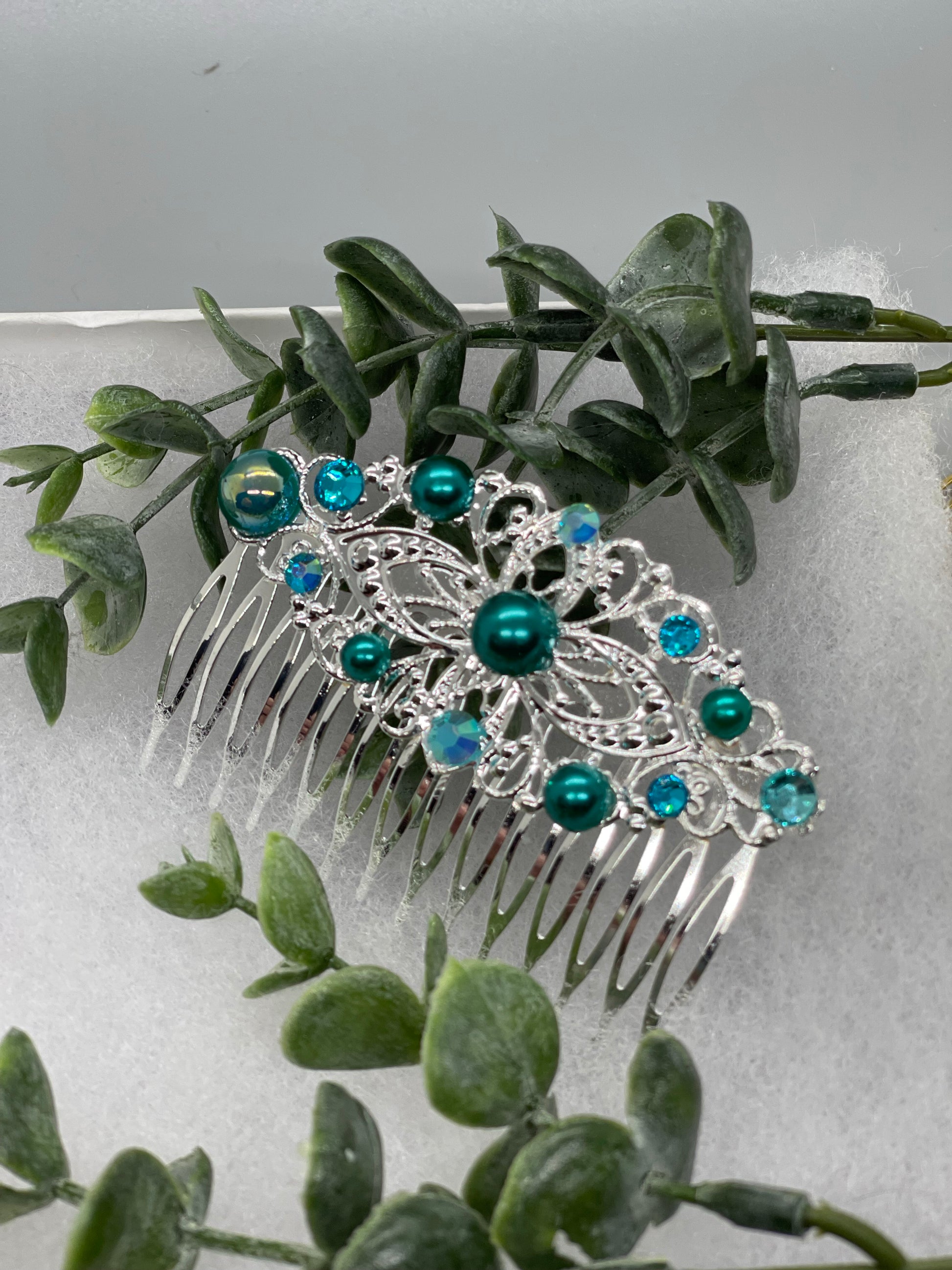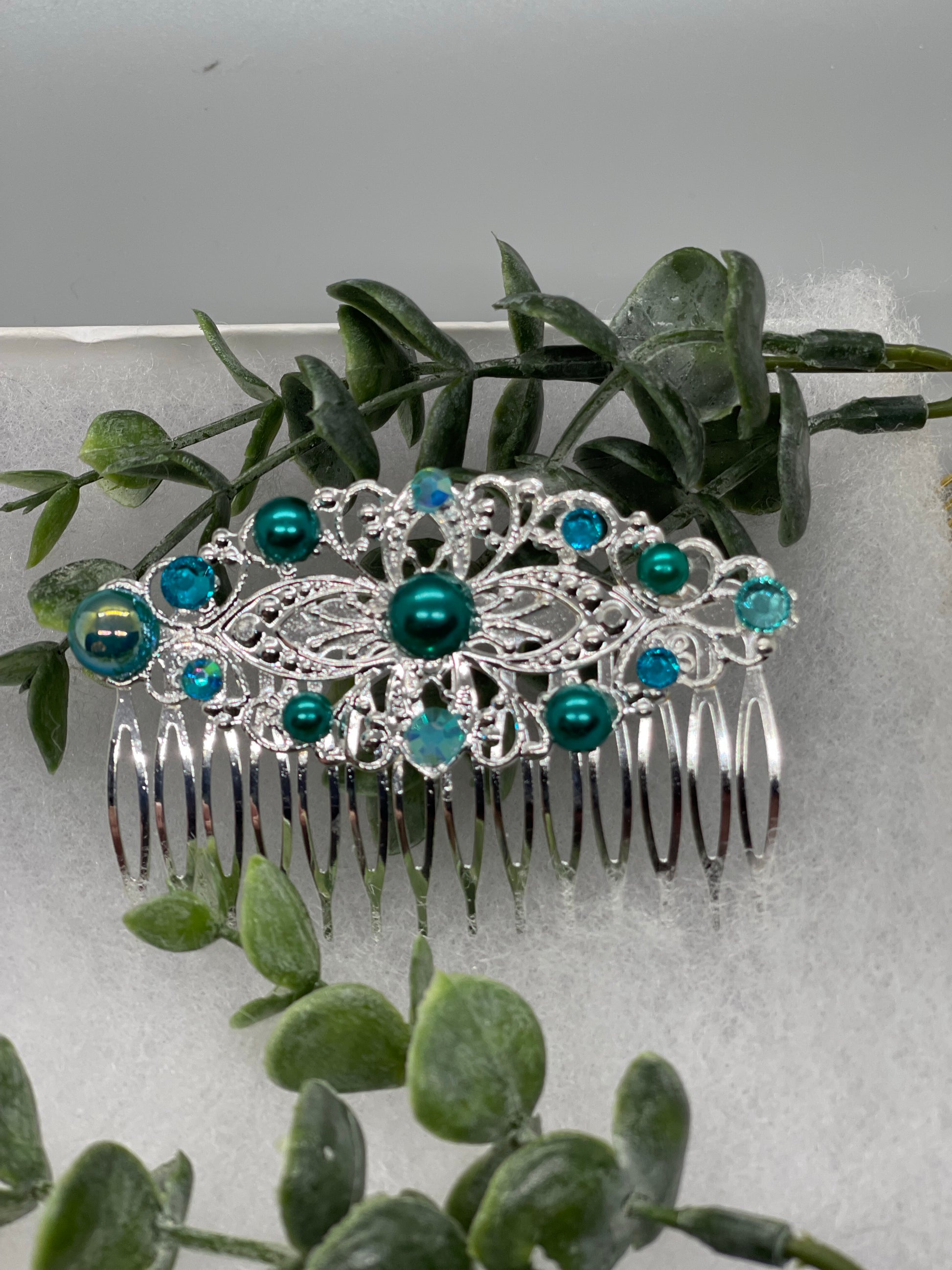 Teal Pearl crystal Antique vintage Style silver crystal 3.5 side Comb wedding engagement bride princess formal hair accessory accessories