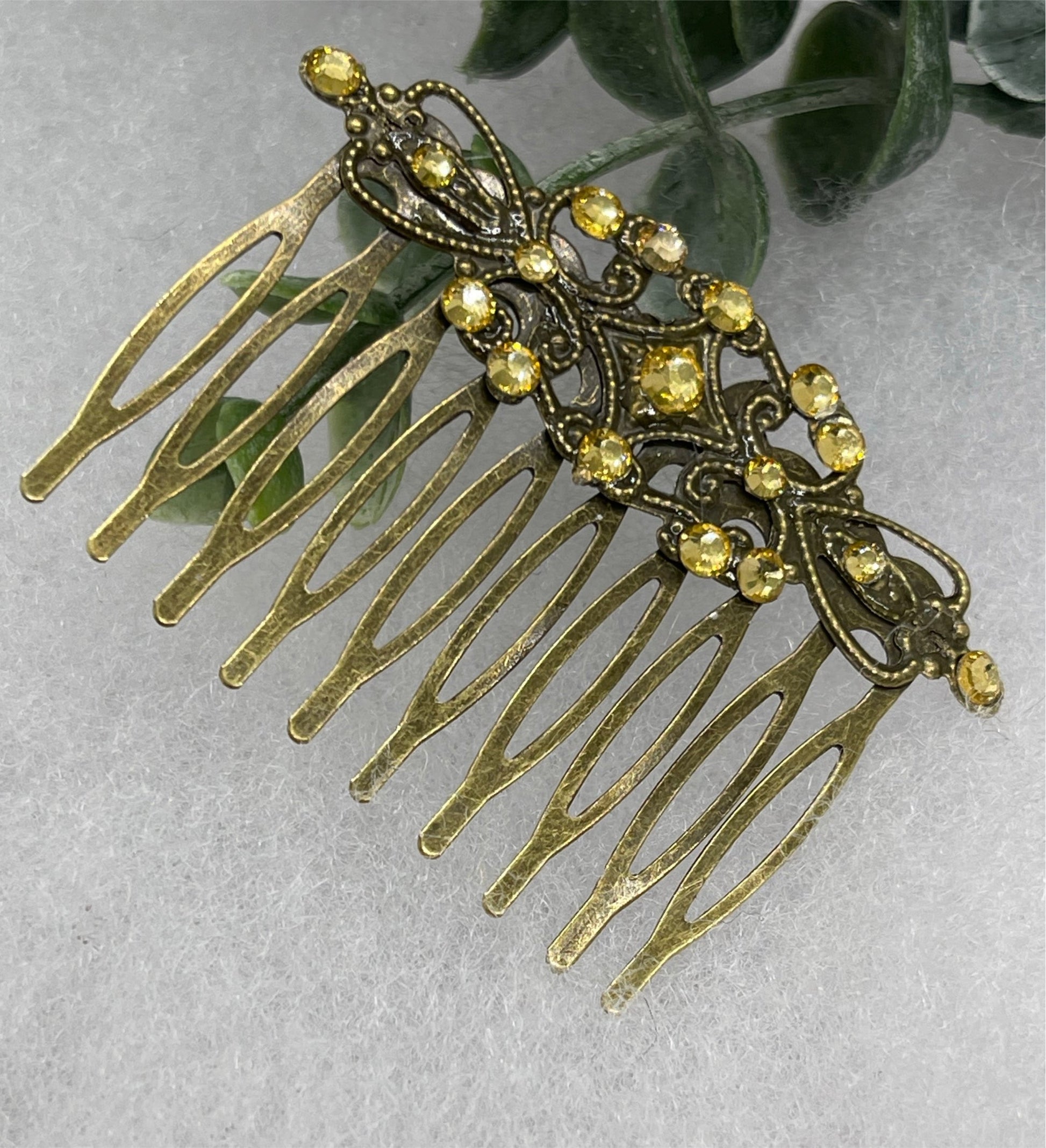 Yellow crystal rhinestone 2.5” side Comb Antique vintage style bridal Wedding shower sweet 16 birthday princess bridesmaid hair accessory