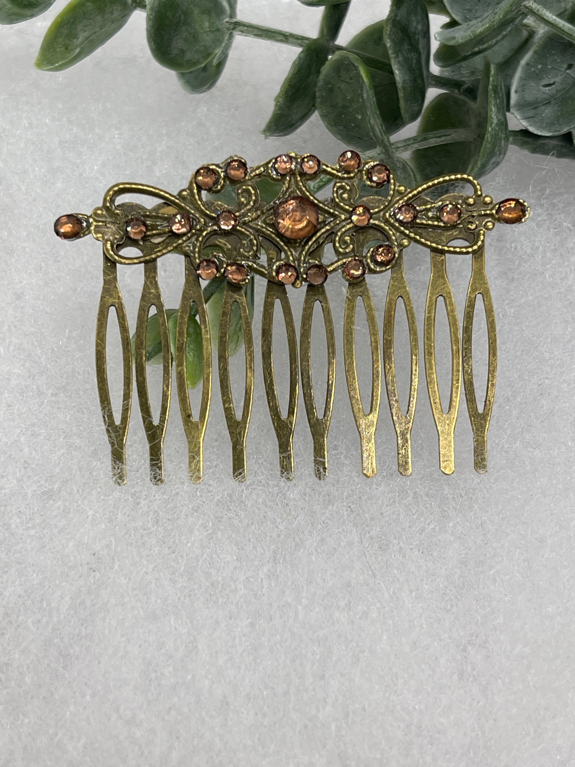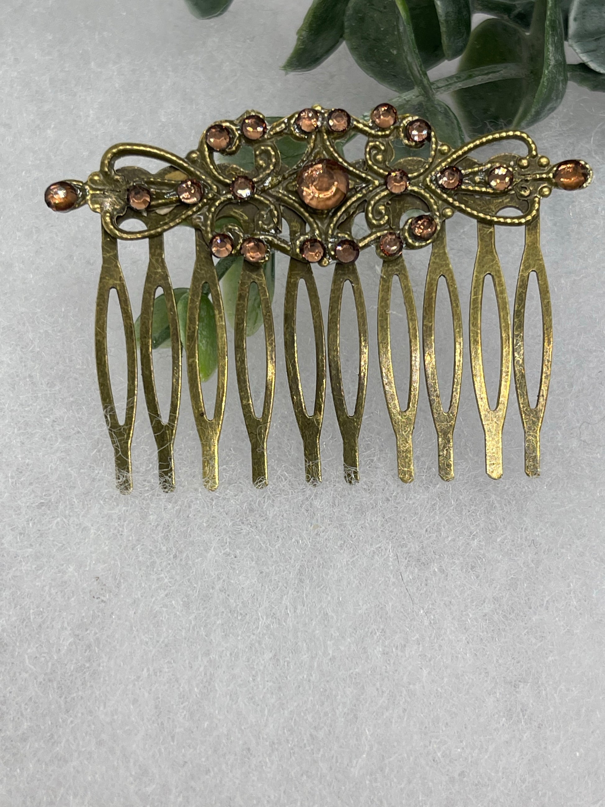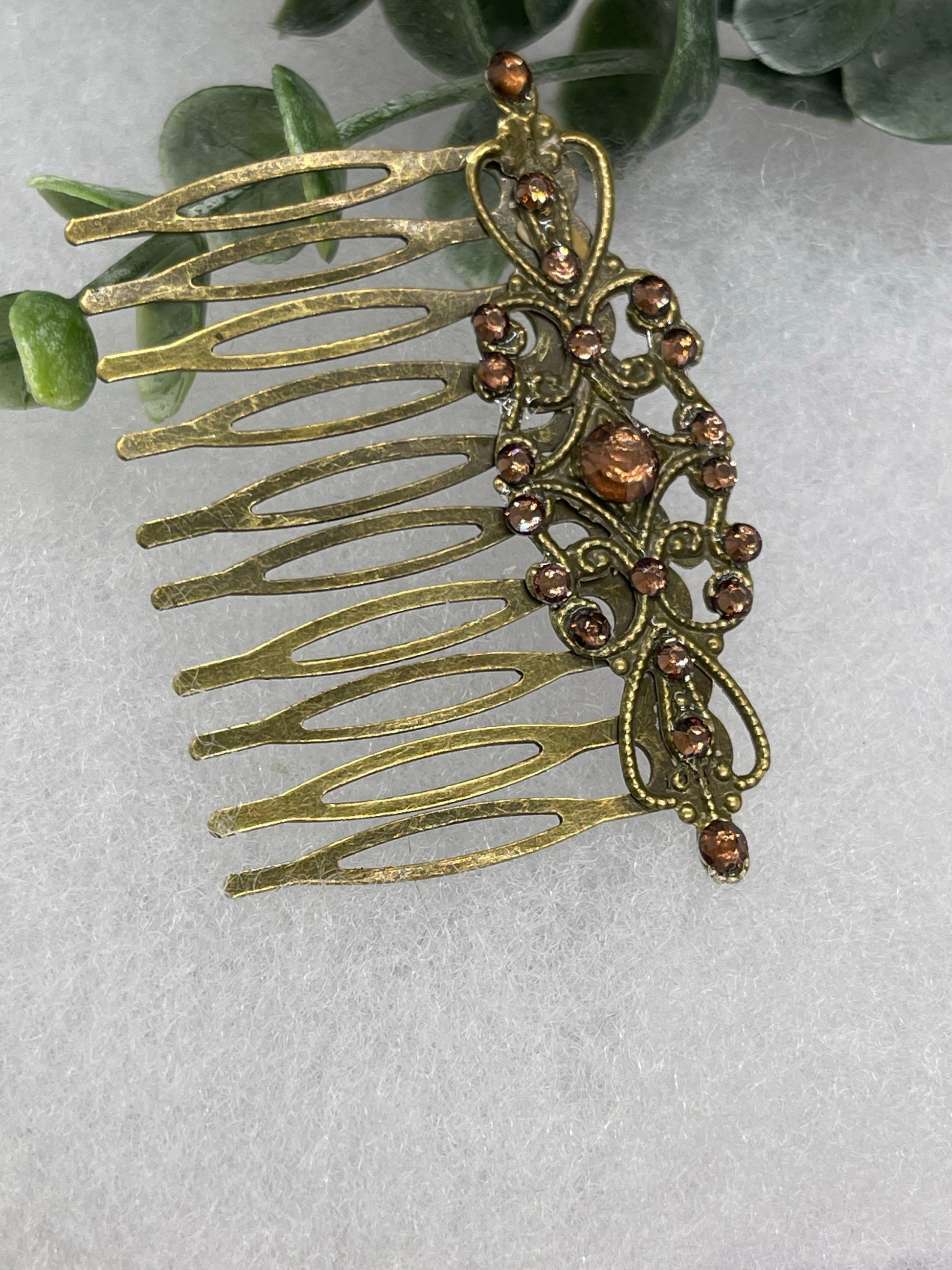 Brown crystal rhinestone 2.5” side Comb Antique vintage style bridal Wedding shower sweet 16 birthday princess bridesmaid hair accessory