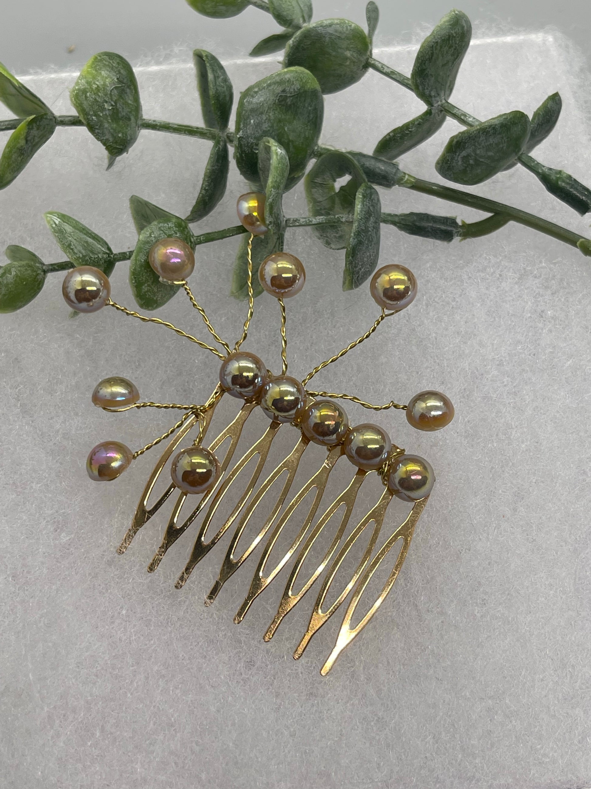 Gold iridescent faux pearl 2.0” gold tone bridal side Comb accents vine handmade by hairdazzzel wedding accessory bride princess gifts Shower hair accessory