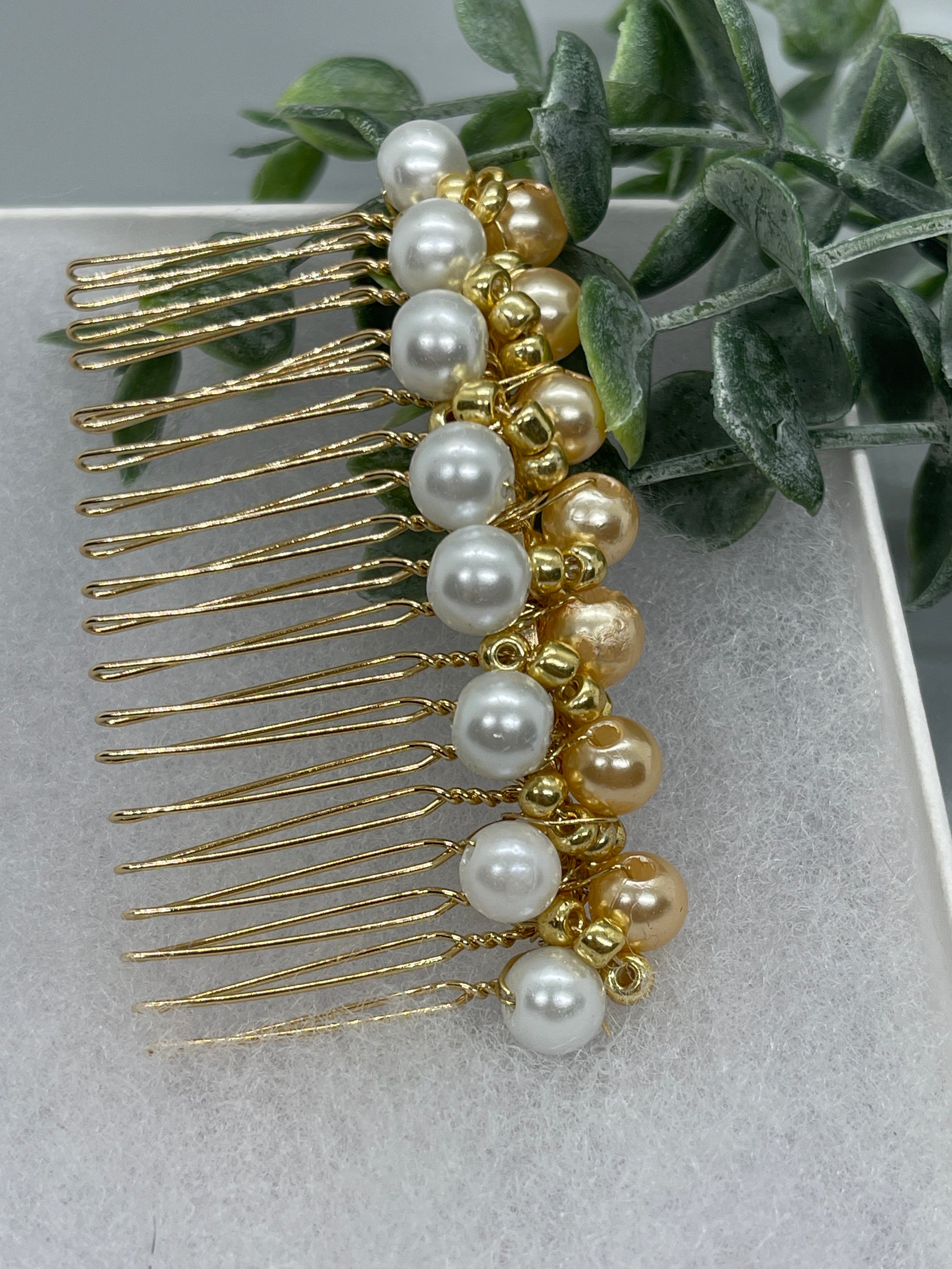 Peach gold beaded side Comb 3.5” gold Metal hair Accessories bridesmaid birthday princess wedding gift handmade accessories