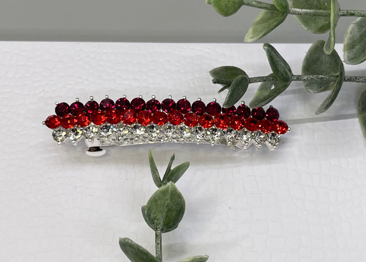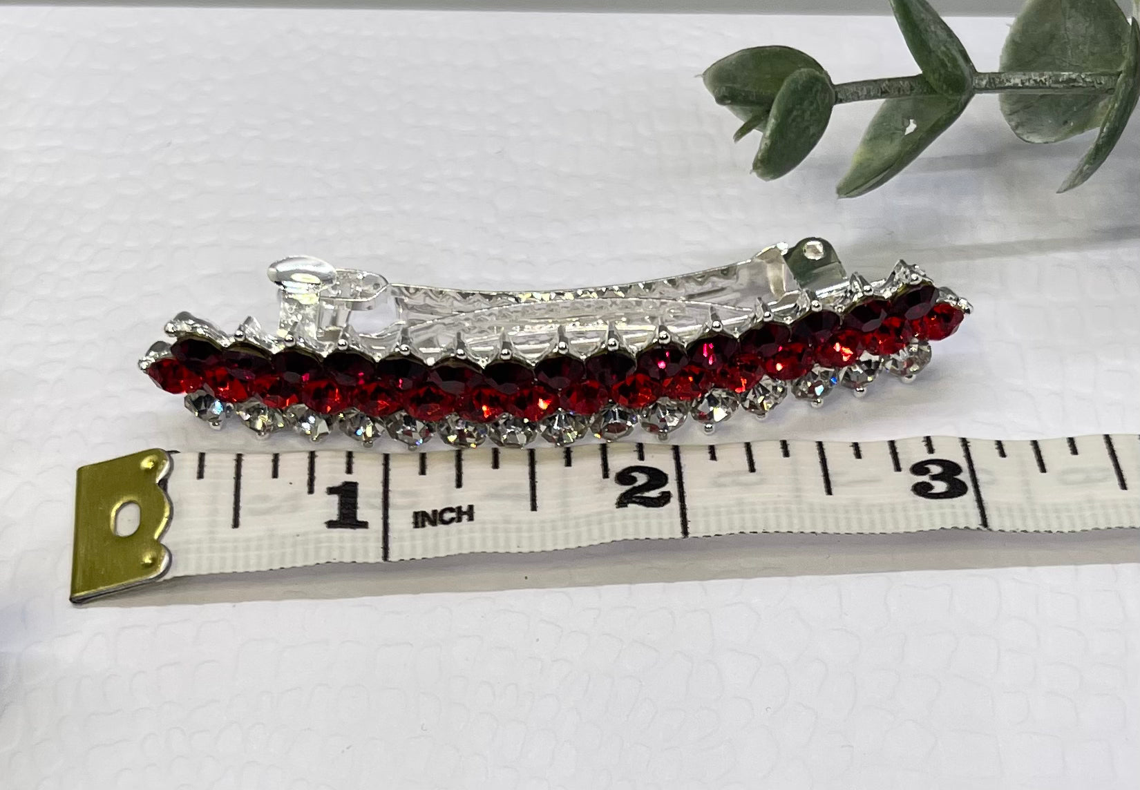 Ruby Red Crystal rhinestone barrette approximately 3.0” Silver tone formal hair accessories gift wedding bridesmaid