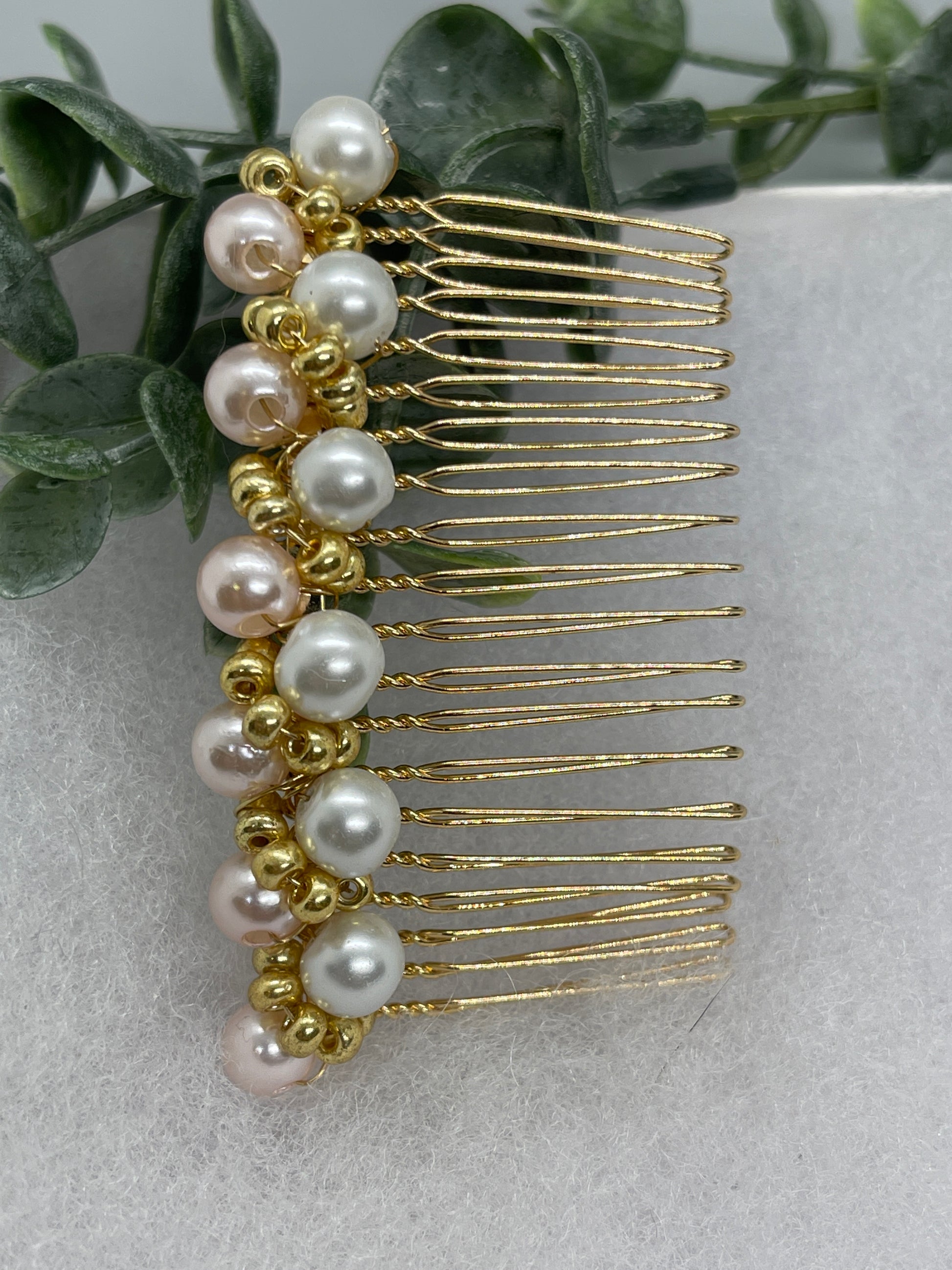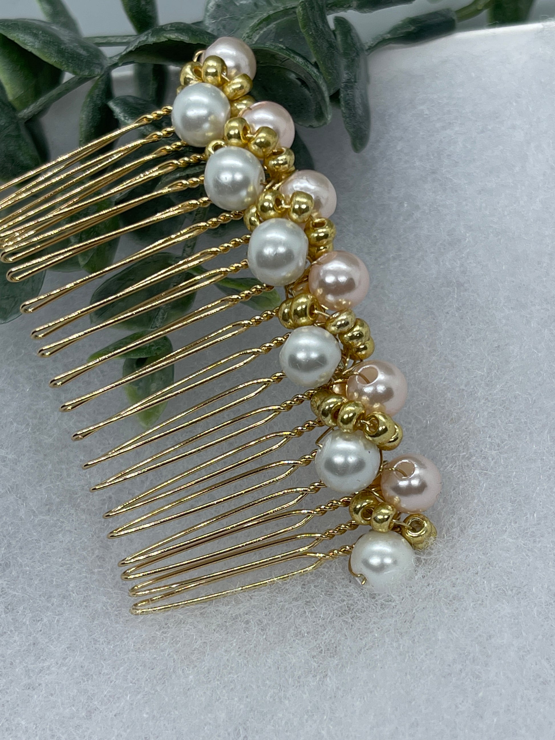 Baby Pink gold beaded side Comb 3.5” gold Metal hair Accessories bridesmaid birthday princess wedding gift handmade accessories