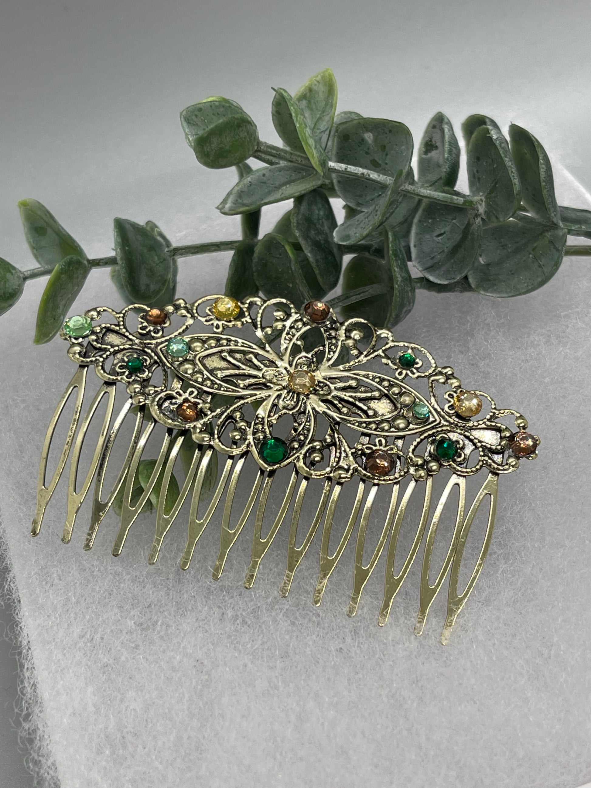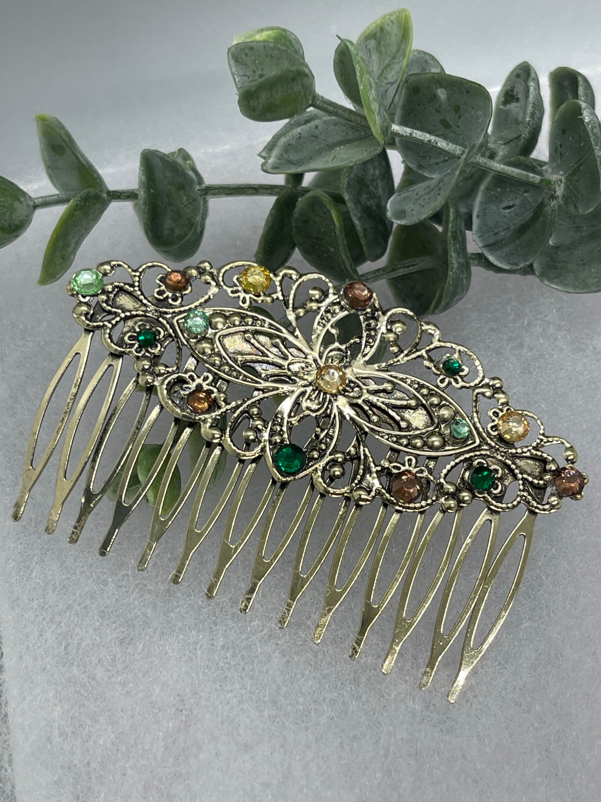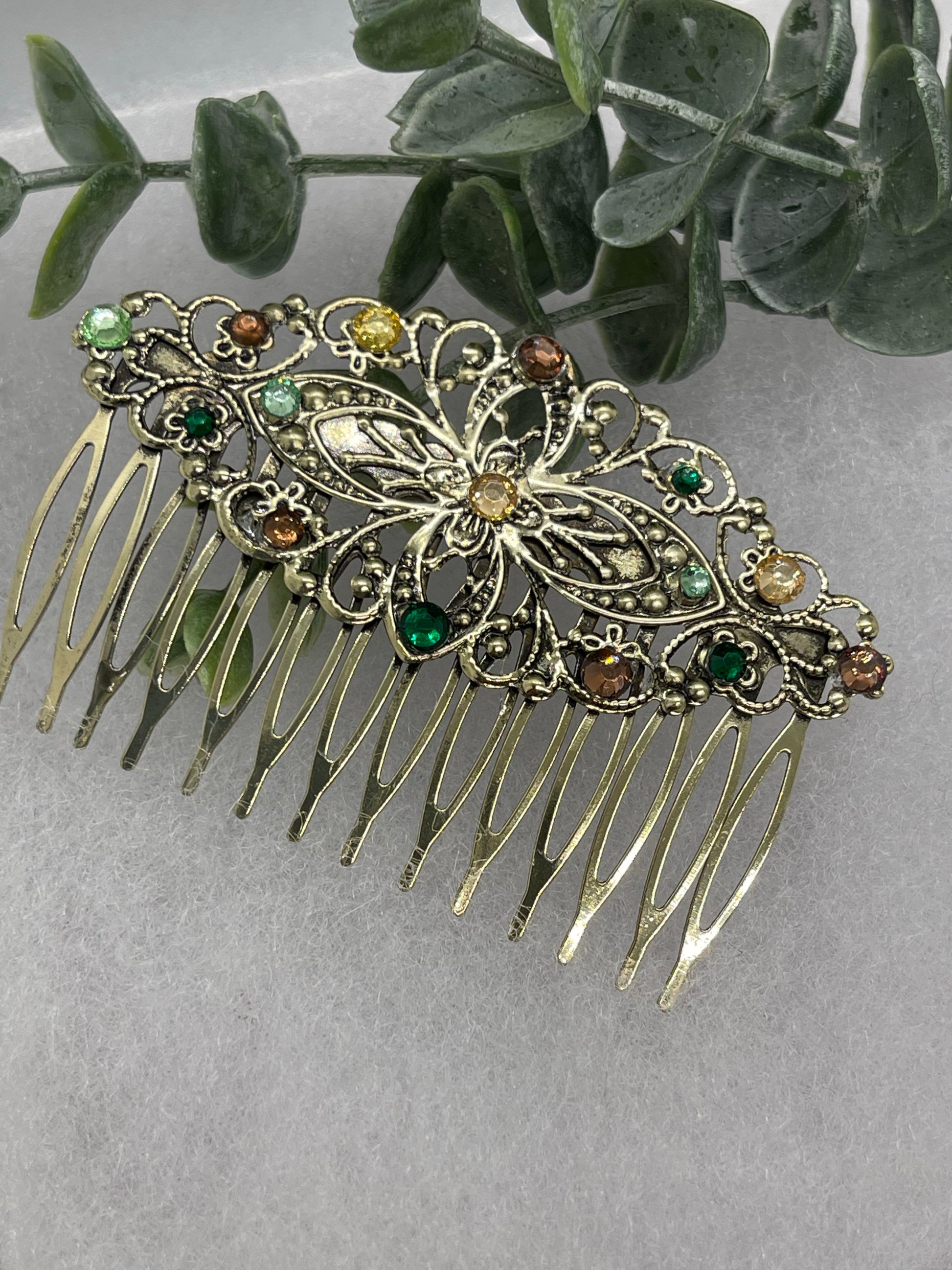 Camouflage crystal rhinestone 3.5” side Comb Antique vintage style bridal Wedding shower sweet 16 birthday princess bridesmaid hair accessory