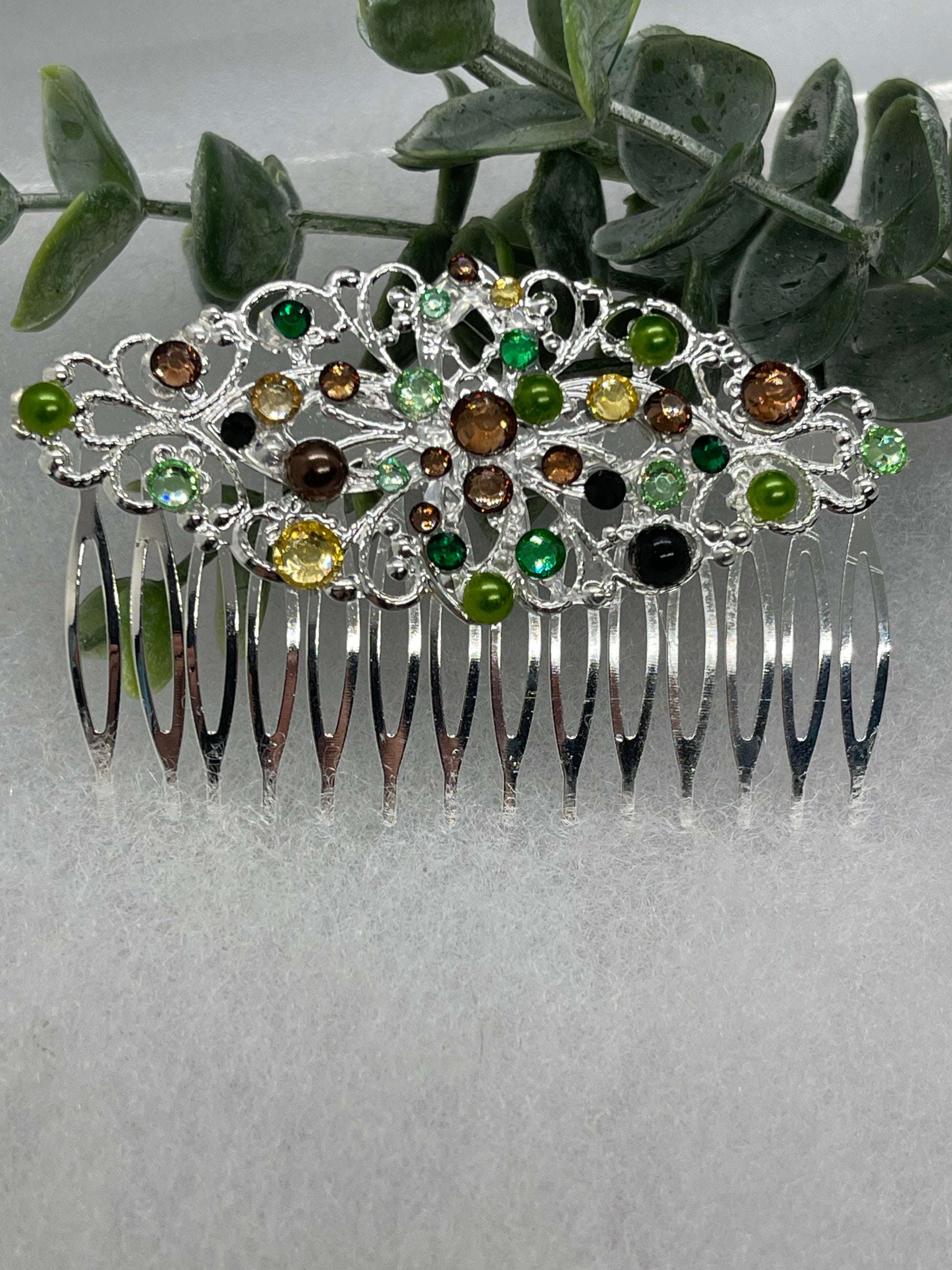 Camouflage crystal rhinestone 3.5” silver side comb Antique vintage style bridal Wedding shower sweet 16 birthday princess bridesmaid hair accessory