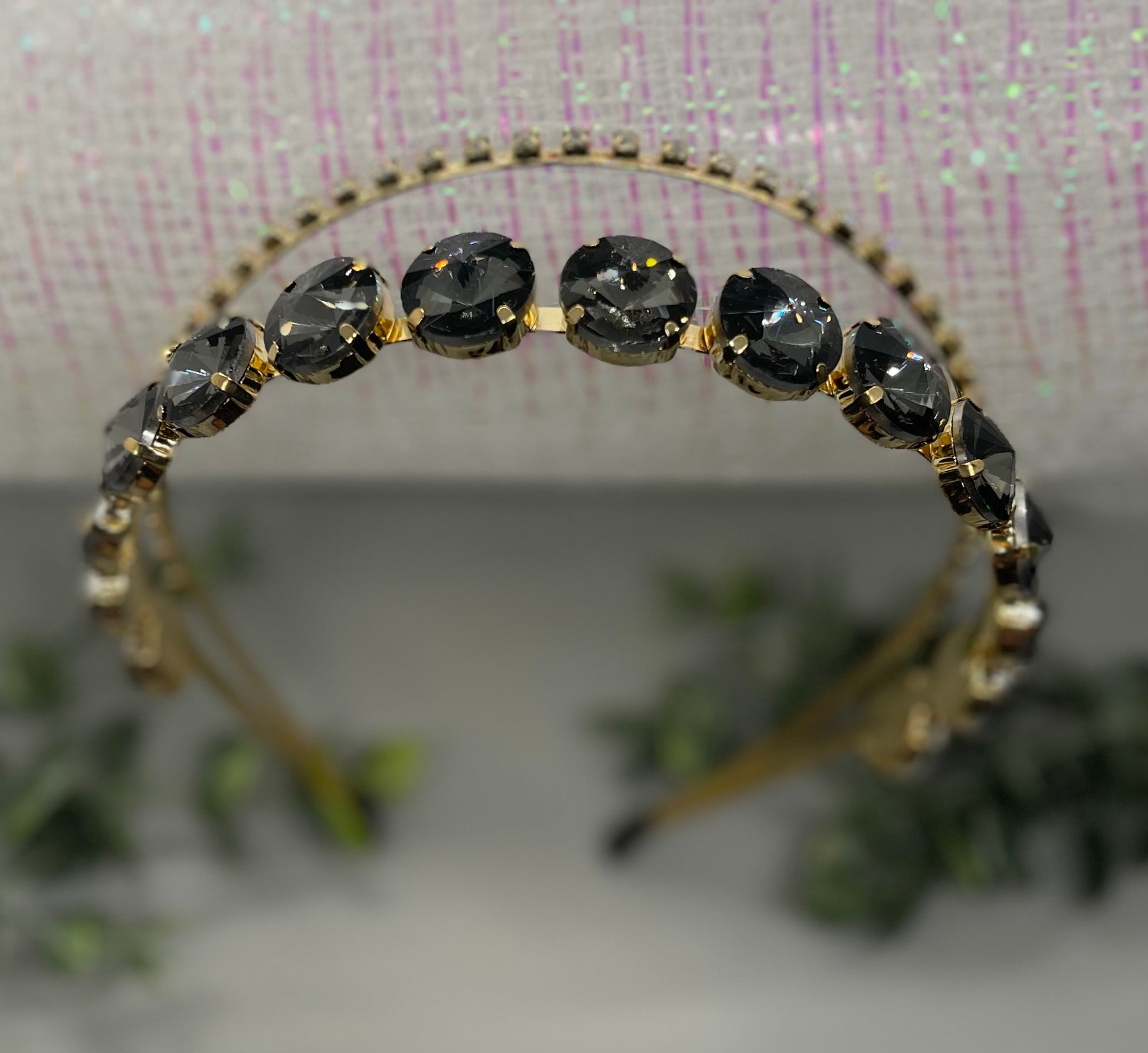 Gray crystal rhinestone luxe headband Elegant formal princess wedding engagement birthday bridesmaid sweet 16 hair accessory