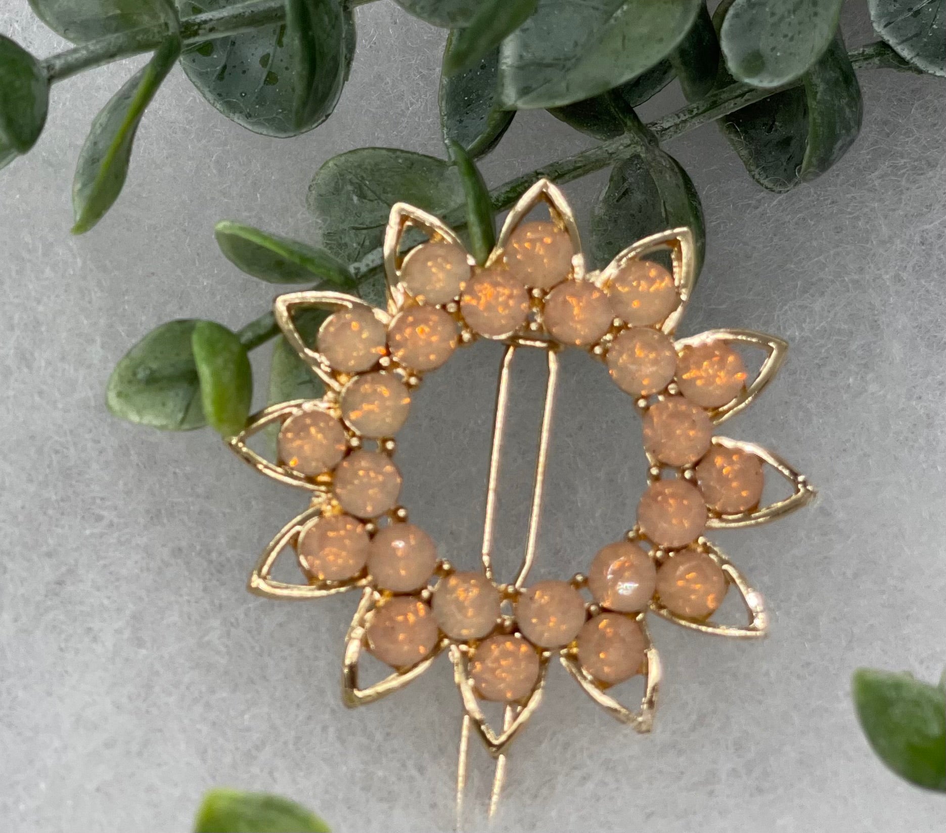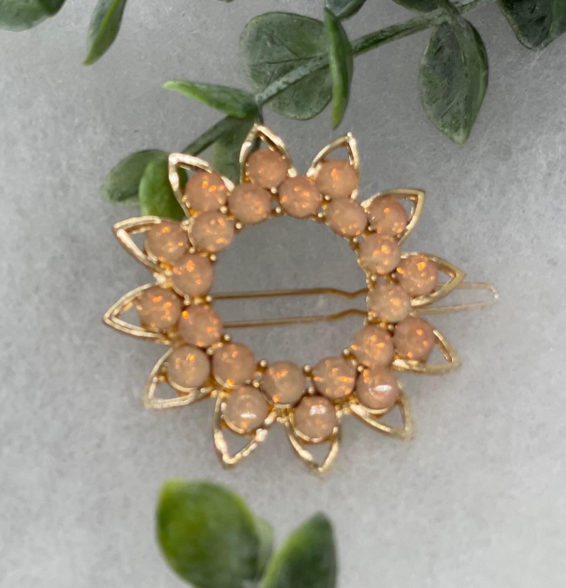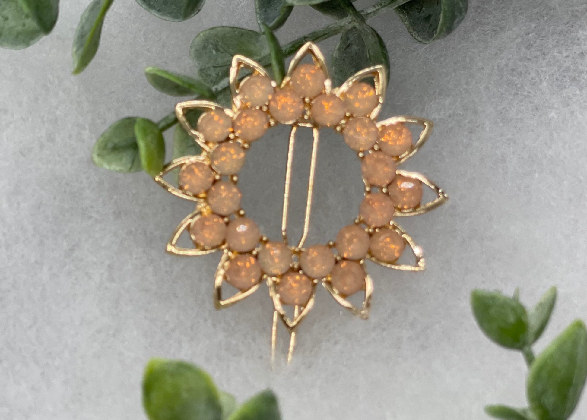Peach crystal rhinestone sunflower approximately 2.5” barrette Gold vintage style bridal Wedding shower