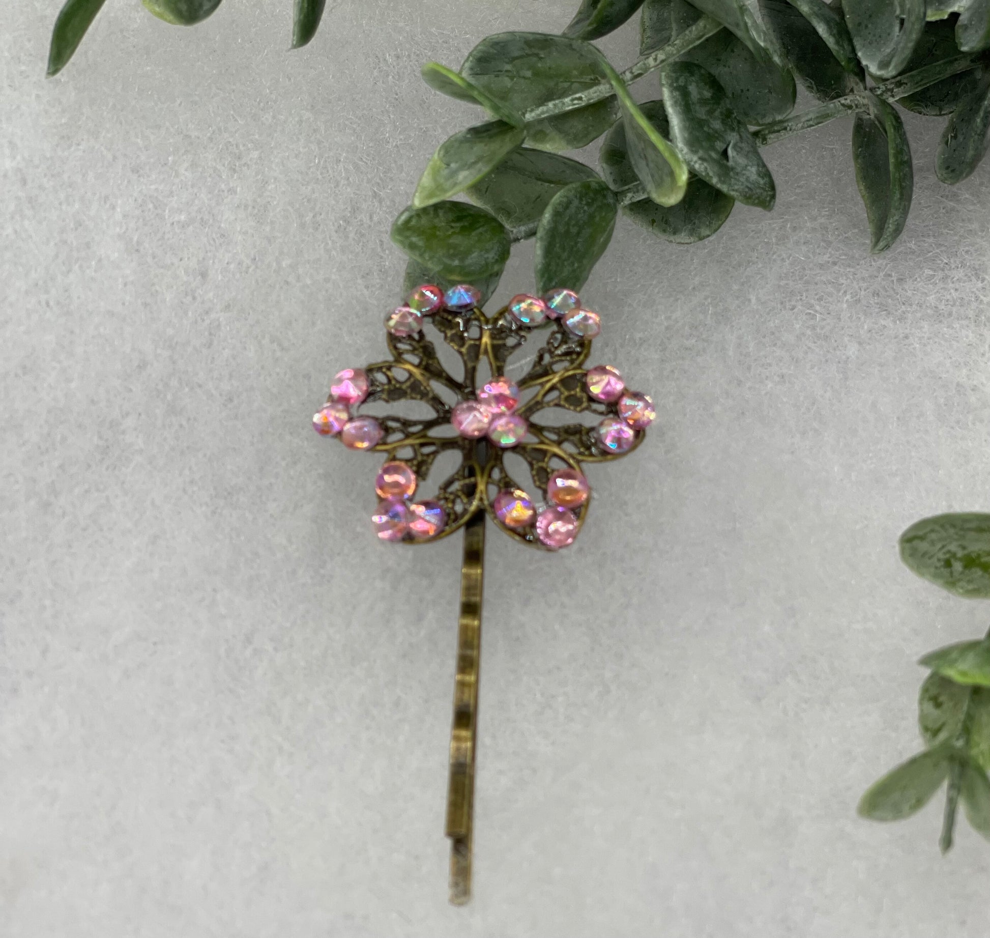 Pink Crystal Antique vintage Style approximately 3.0” flower hair pin wedding engagement bride princess formal hair accessories