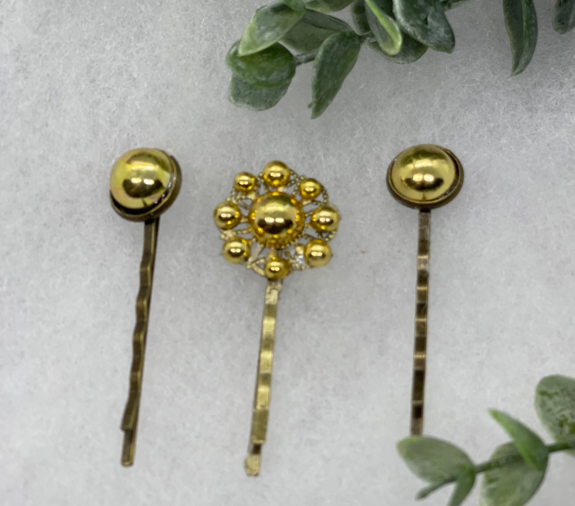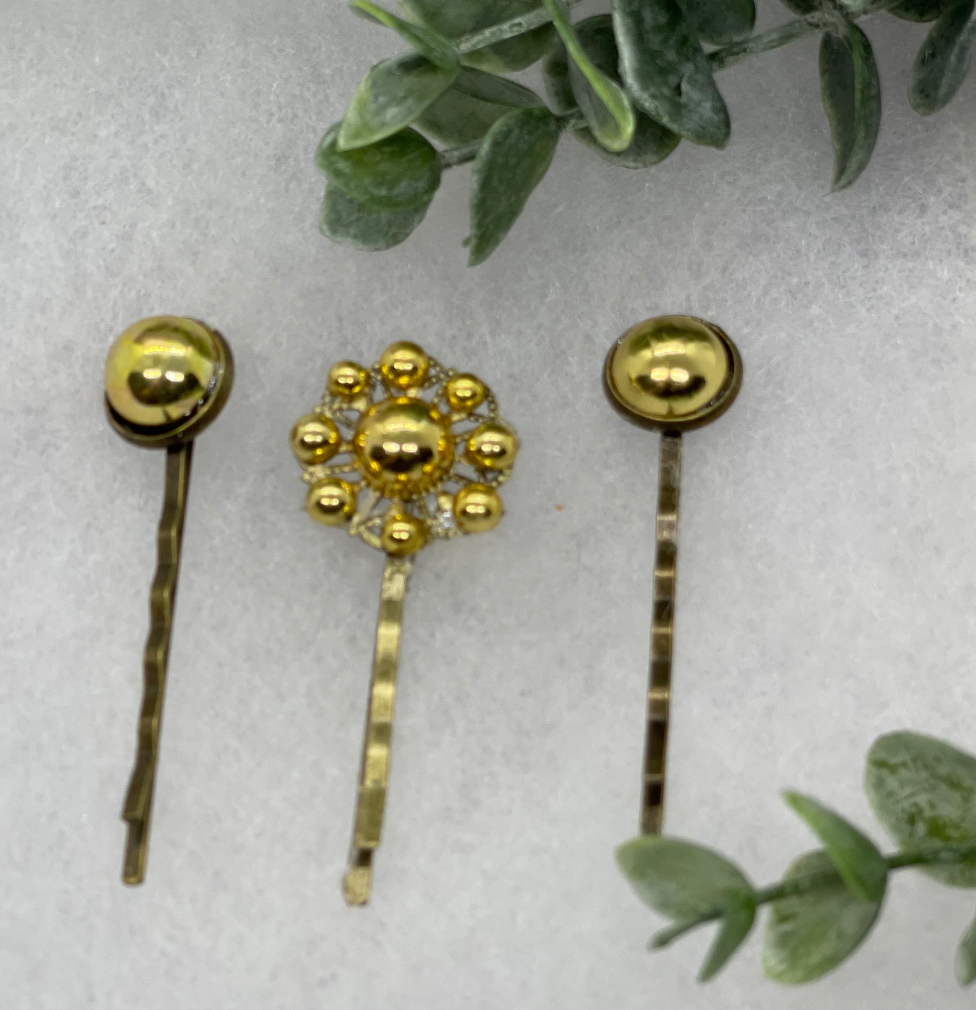 Gold faux pearl 3 pc set Antique vintage Style approximately 3.0” flower hair pin wedding engagement bride princess formal hair accessories