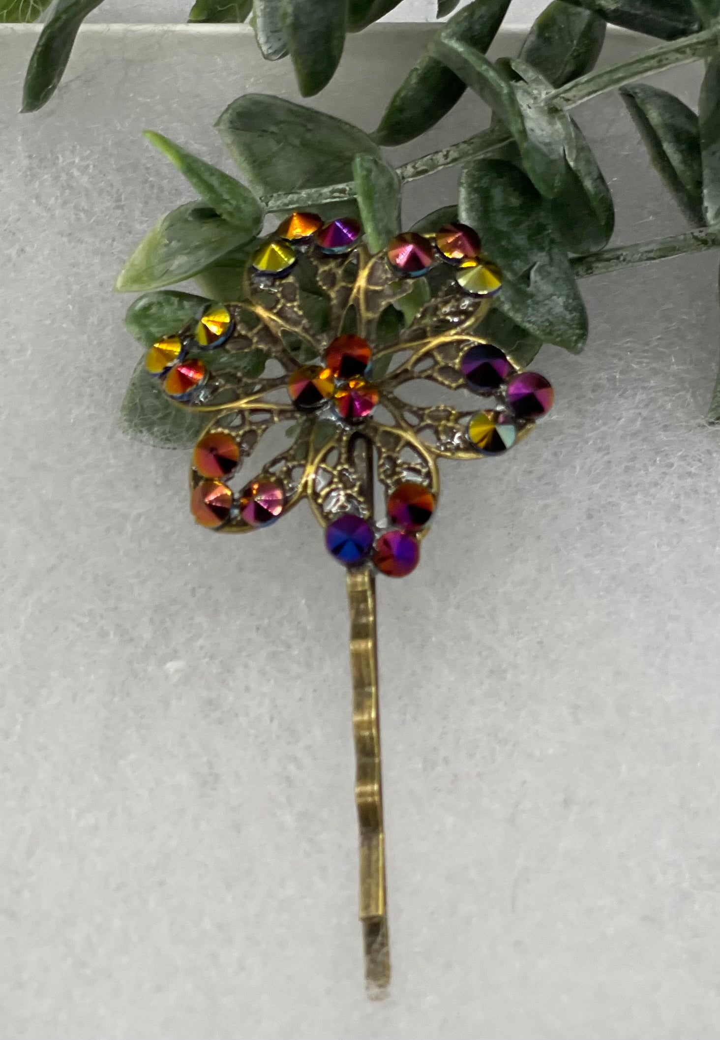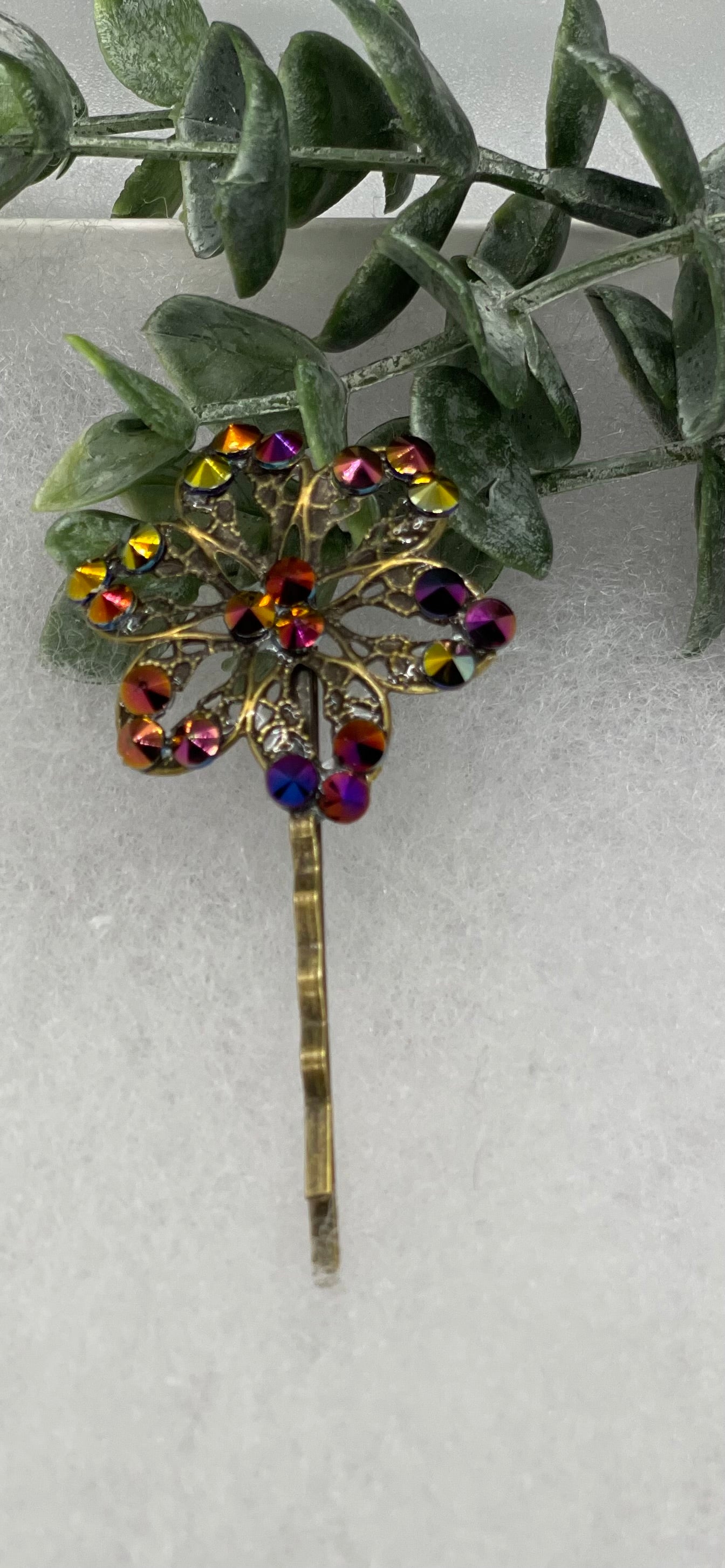 Bronze Rainbow crystal Antique vintage Style approximately 3.0” flower hair pin wedding engagement bride princess formal hair accessories