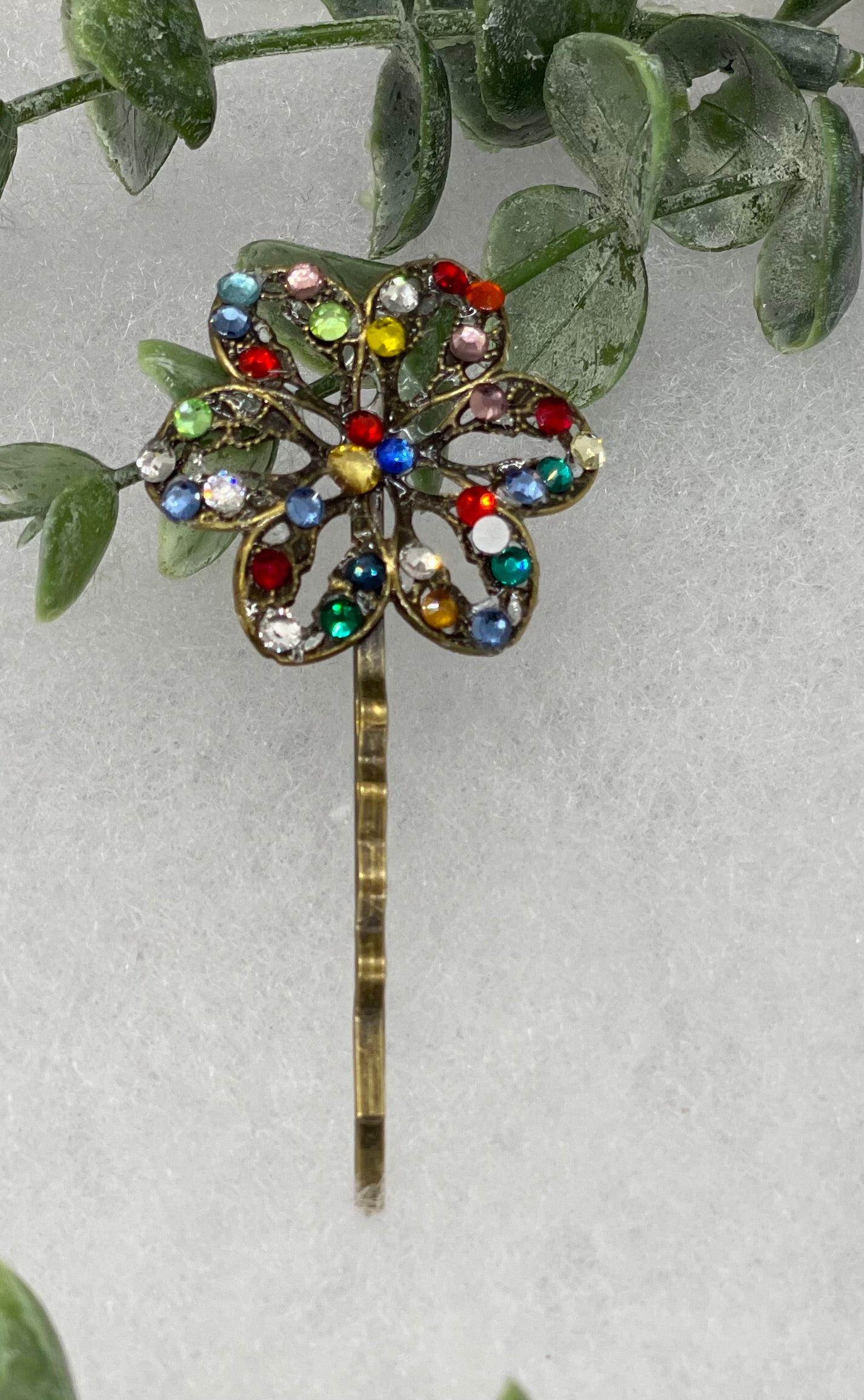 Rainbow crystal Antique vintage Style approximately 3.0” flower hair pin wedding engagement bride princess formal hair accessory