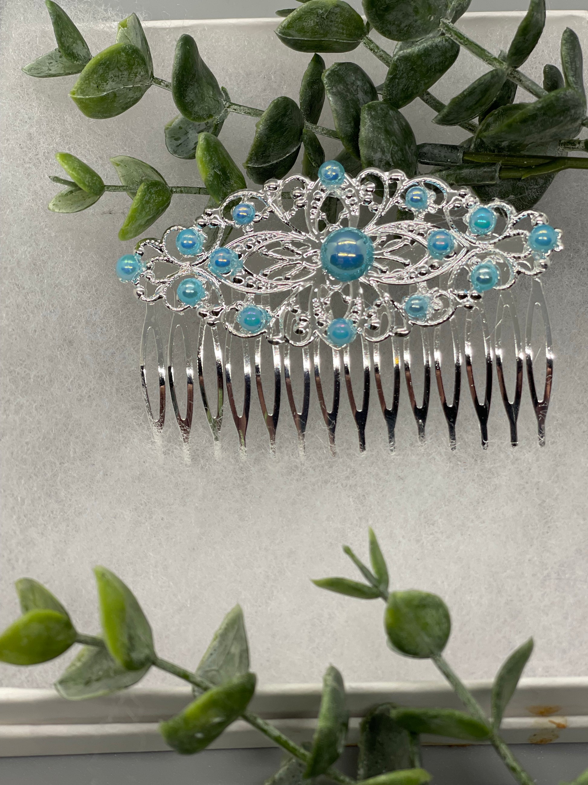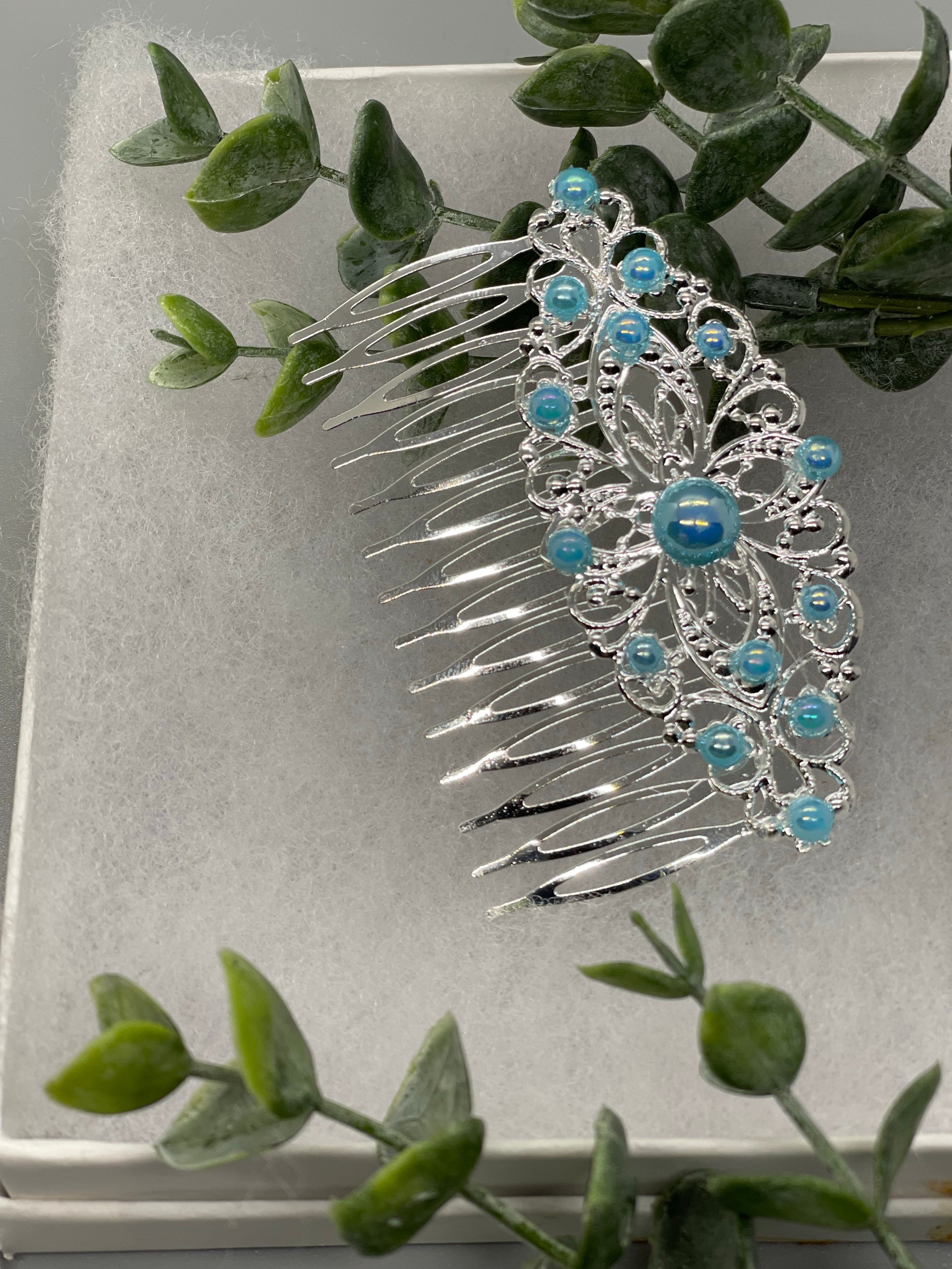 Baby Blue pearl vintage style silver tone side comb hair accessory accessories gift birthday