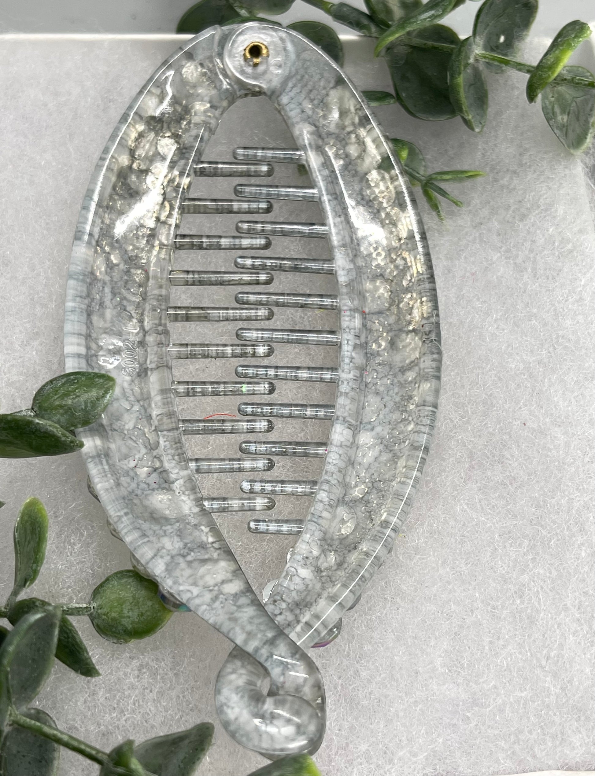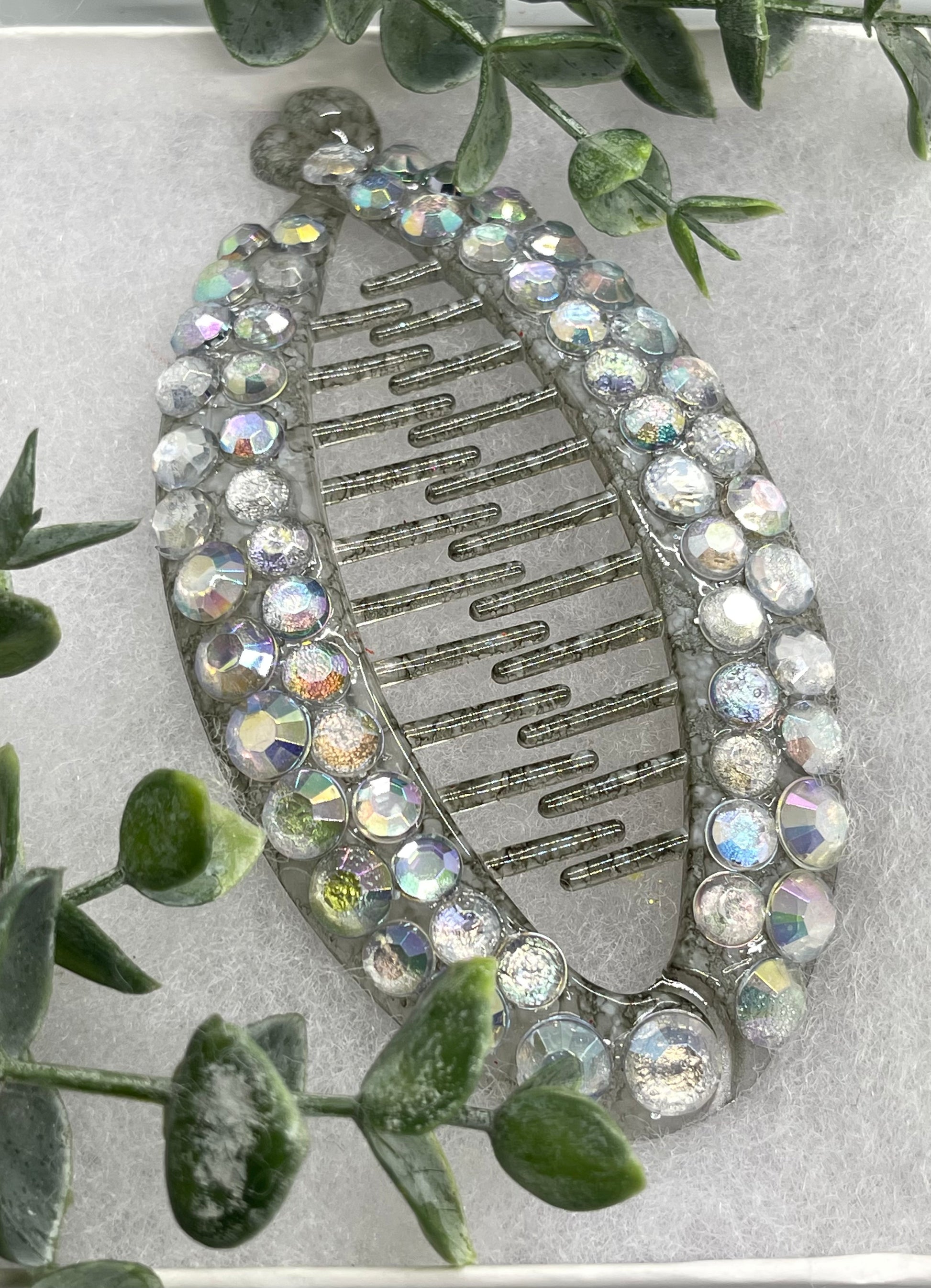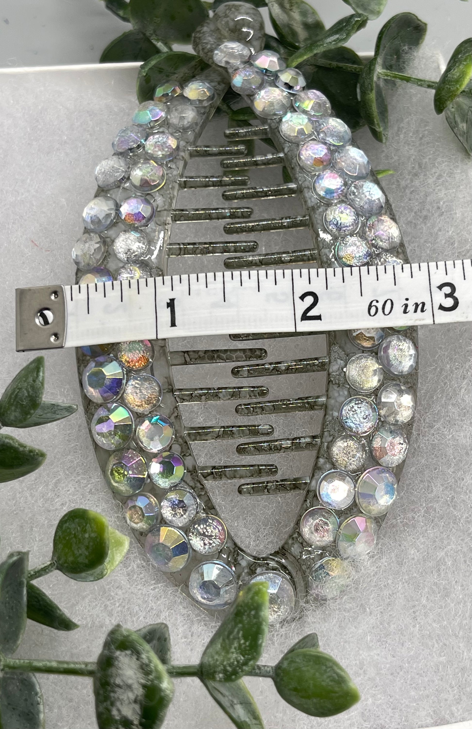 Gray Iridescent crystal rhinestone hand Embellished 5” L 3”W banana comb clips bridesmaid wedding engagement party formal hair accessories