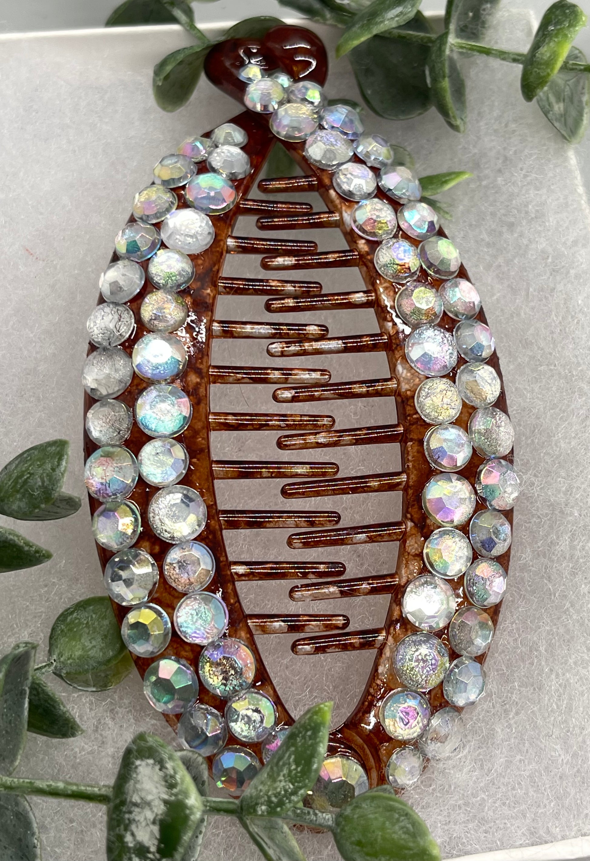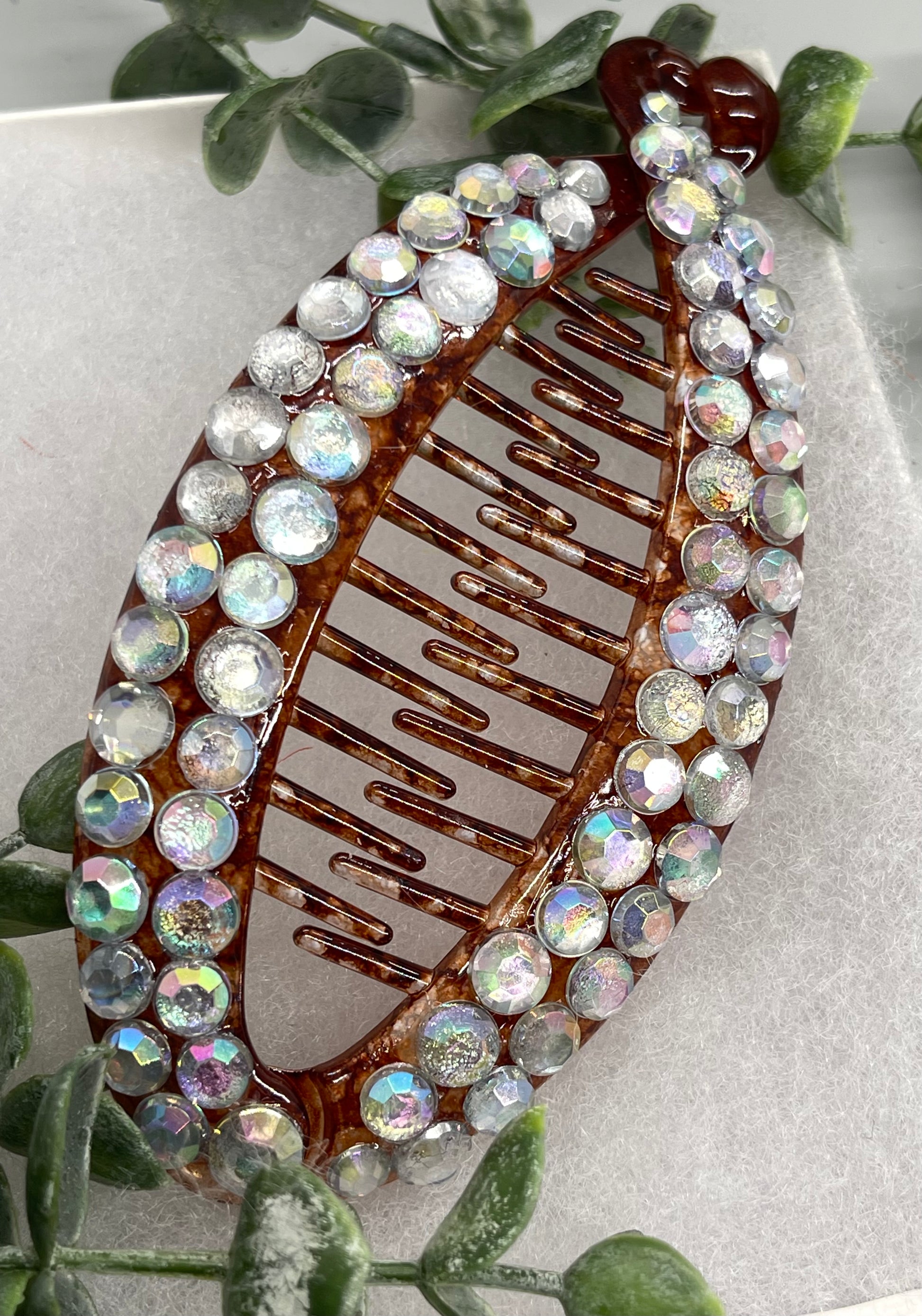 Brown Iridescent crystal rhinestone hand Embellished 5” L 3”W banana comb clips bridesmaid wedding engagement party formal hair accessories
