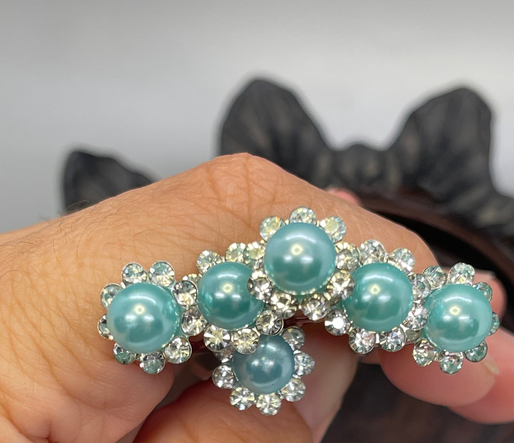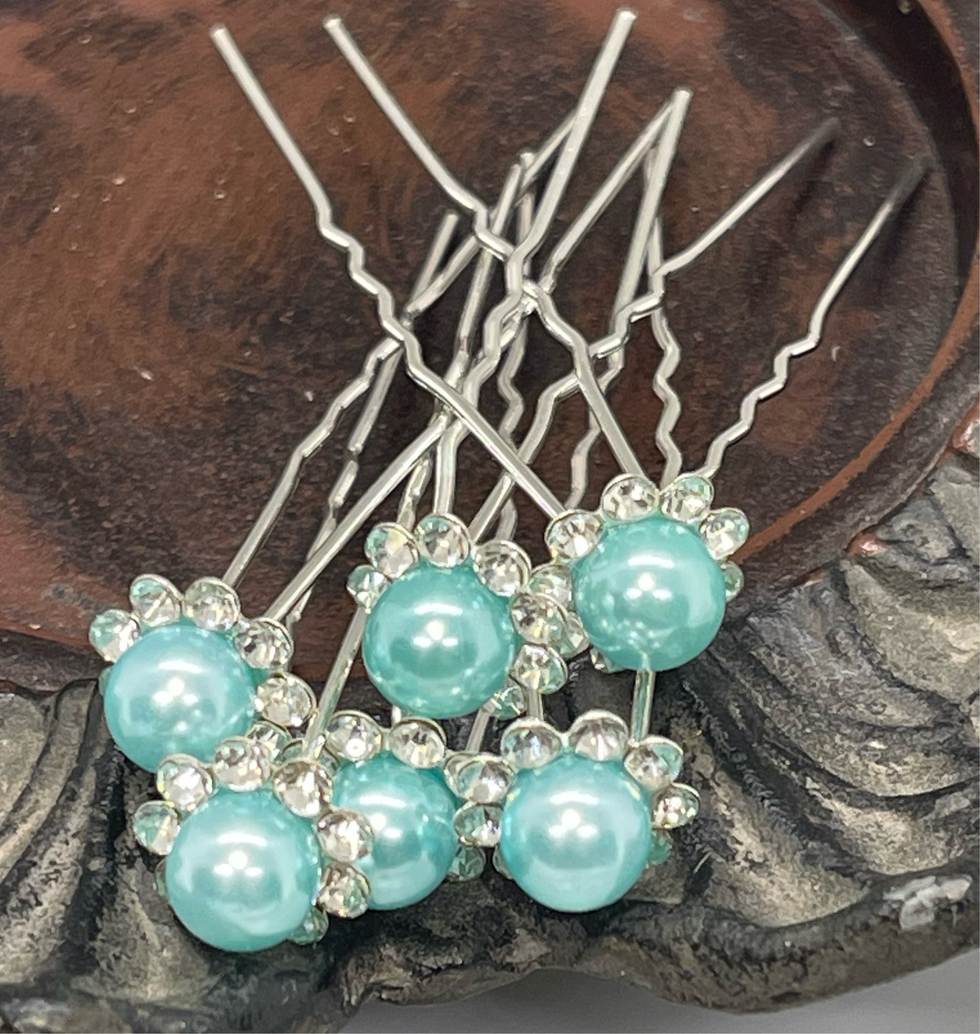 Baby blue Pearl crystal hair pins 6pc set hair accessory accessories Jewelry hair accessory wedding bridesmaids shower accessories
