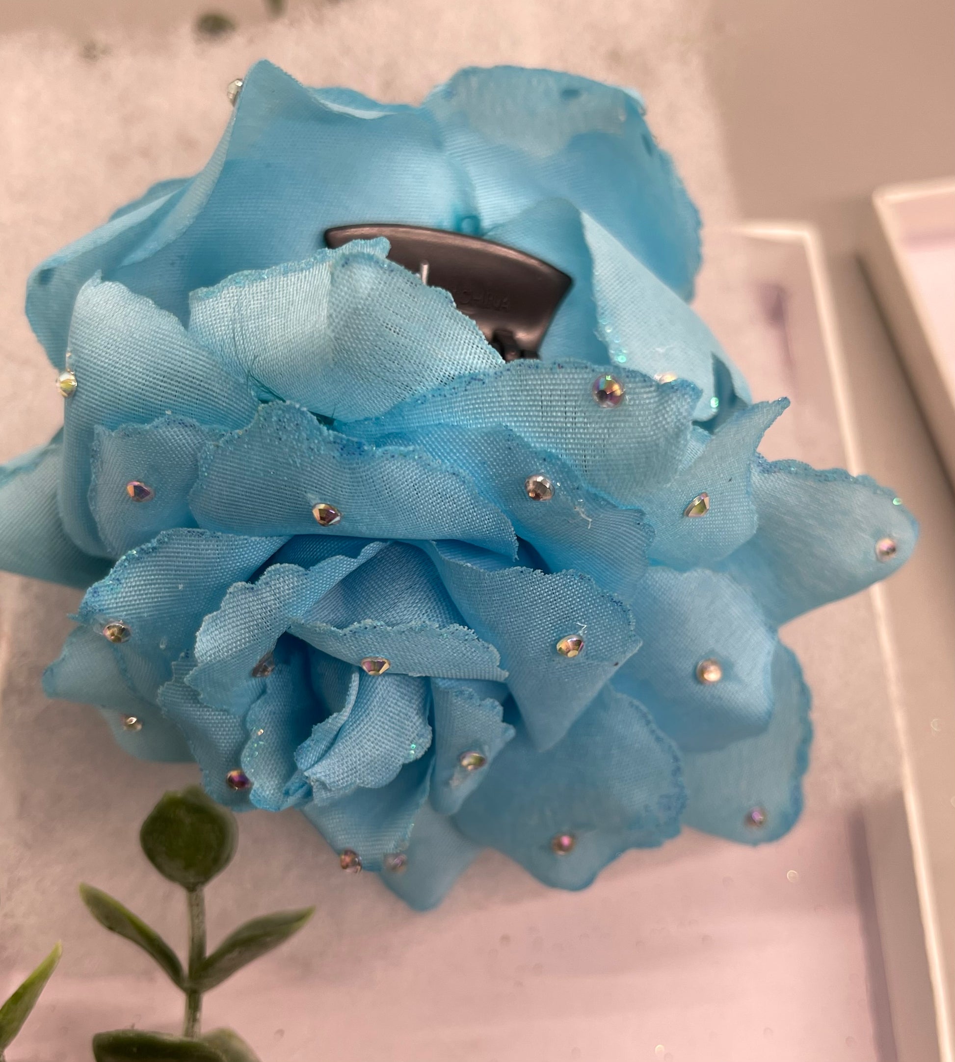 Baby Blue Rose flower crystal rhinestone embellished Claw Jaw clip approximately Large 5.0”W 4.0”L formal hair accessory wedding bridal