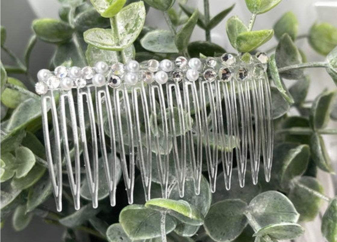 White bridal crystal Rhinestone Pearl hair comb accessory side Comb 3.5” clear plastic side Comb #0012