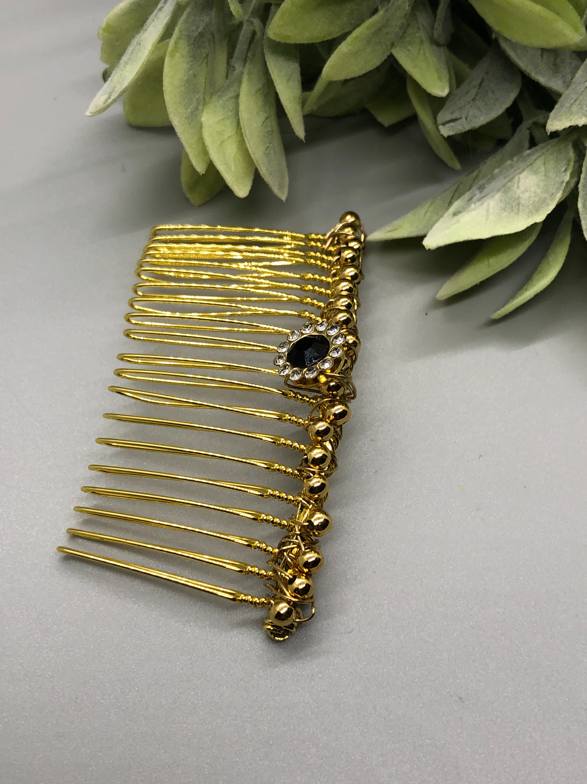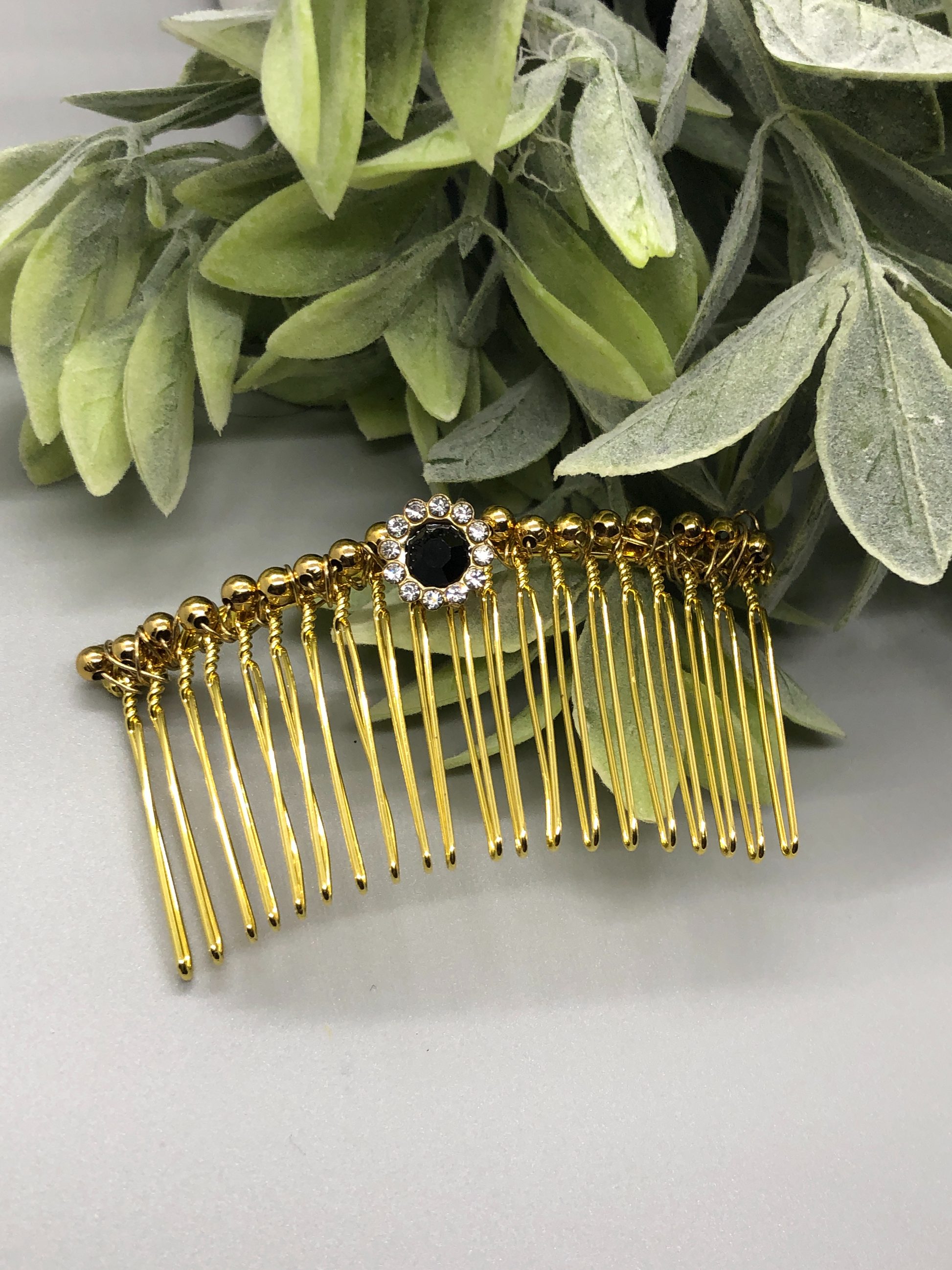 Black Rhinestone Gold Beads 3.5" Metal Side Comb Retro Vintage Style 1 pc