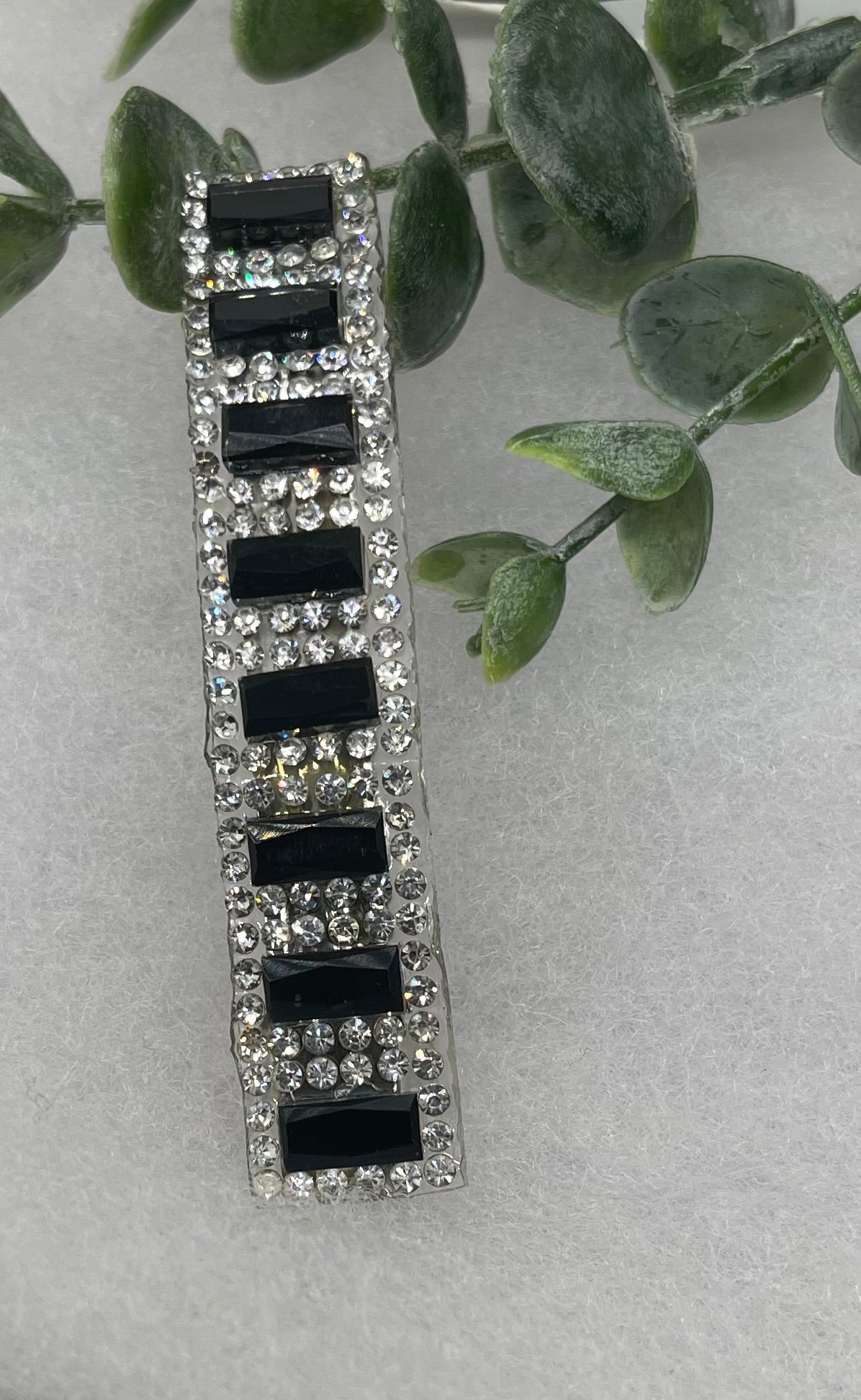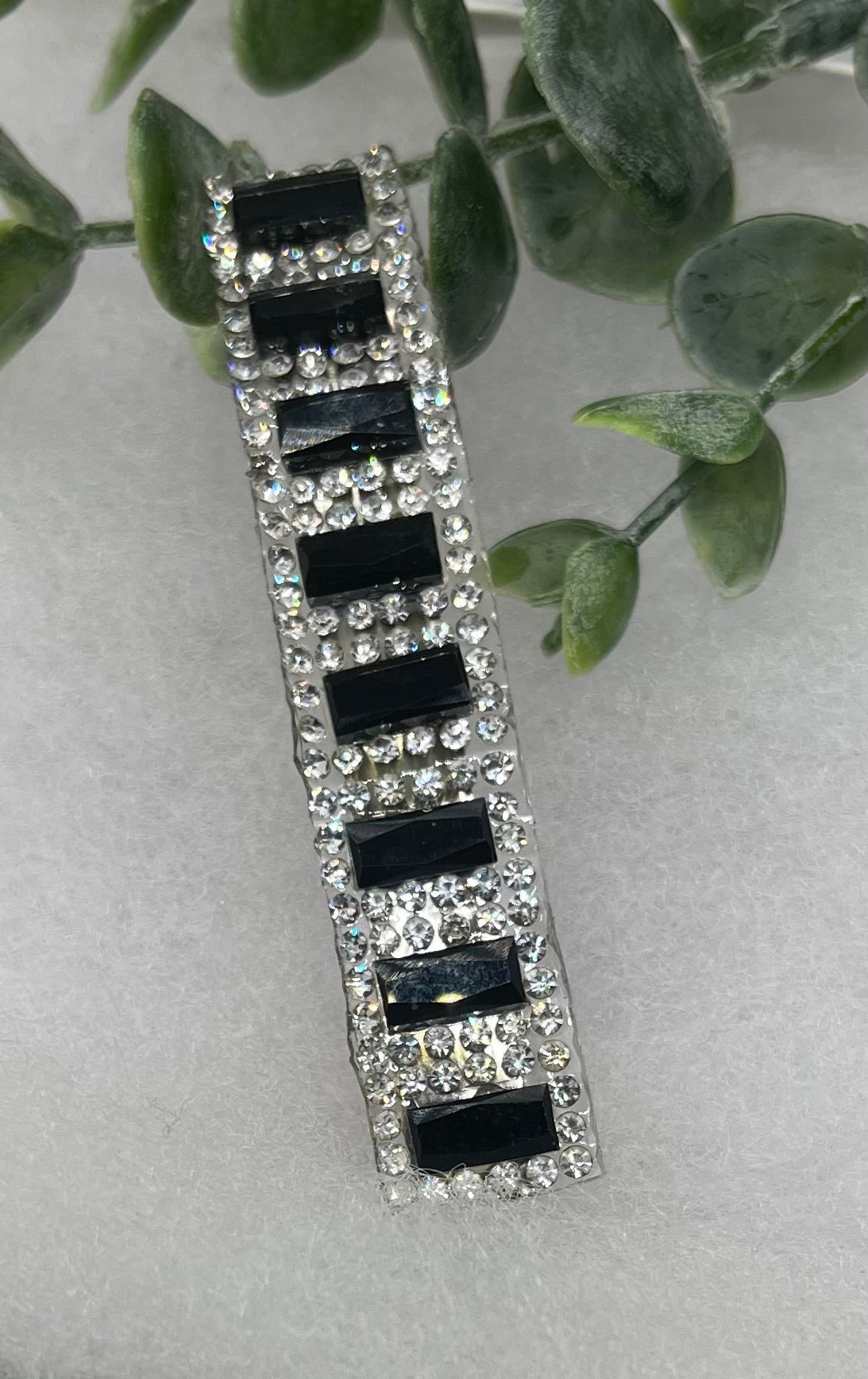 Black silver Acrylic rhinestone silver tone hair clip barrettes approximately 3.0” long hair accessory
