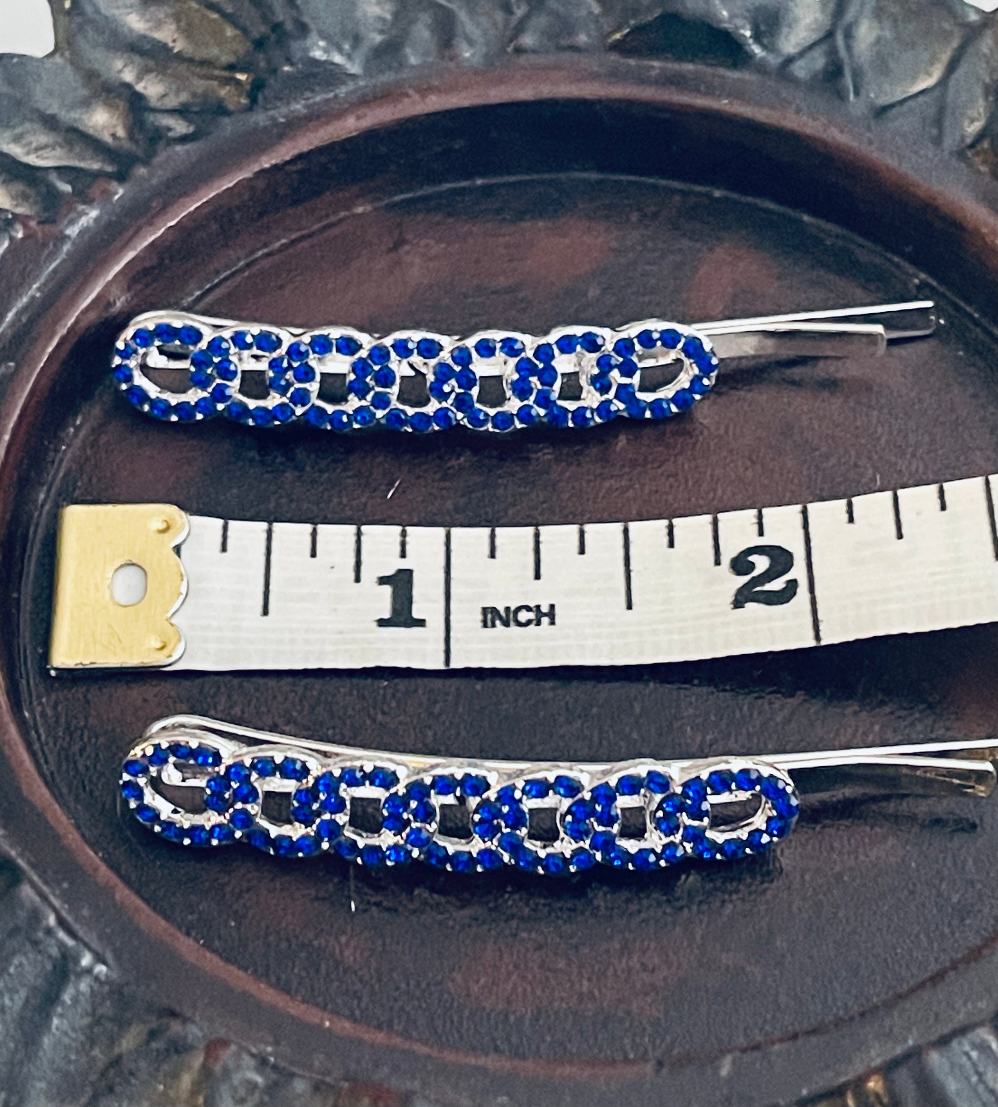 BLue Crystal rhinestone hairpins 2pc approximately 2.5”Silver tone formal hair accessories gift wedding bridesmaid princess accessory