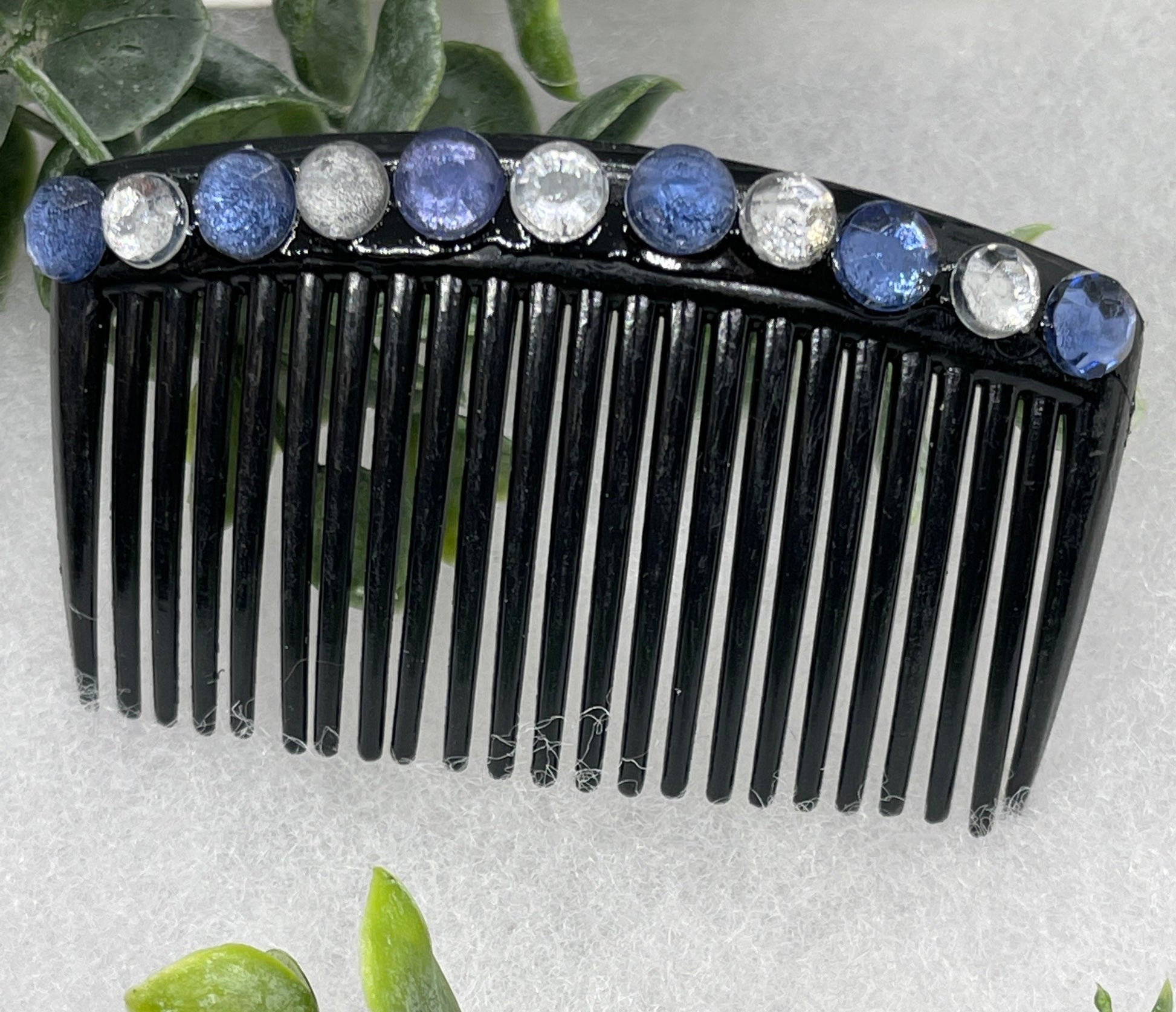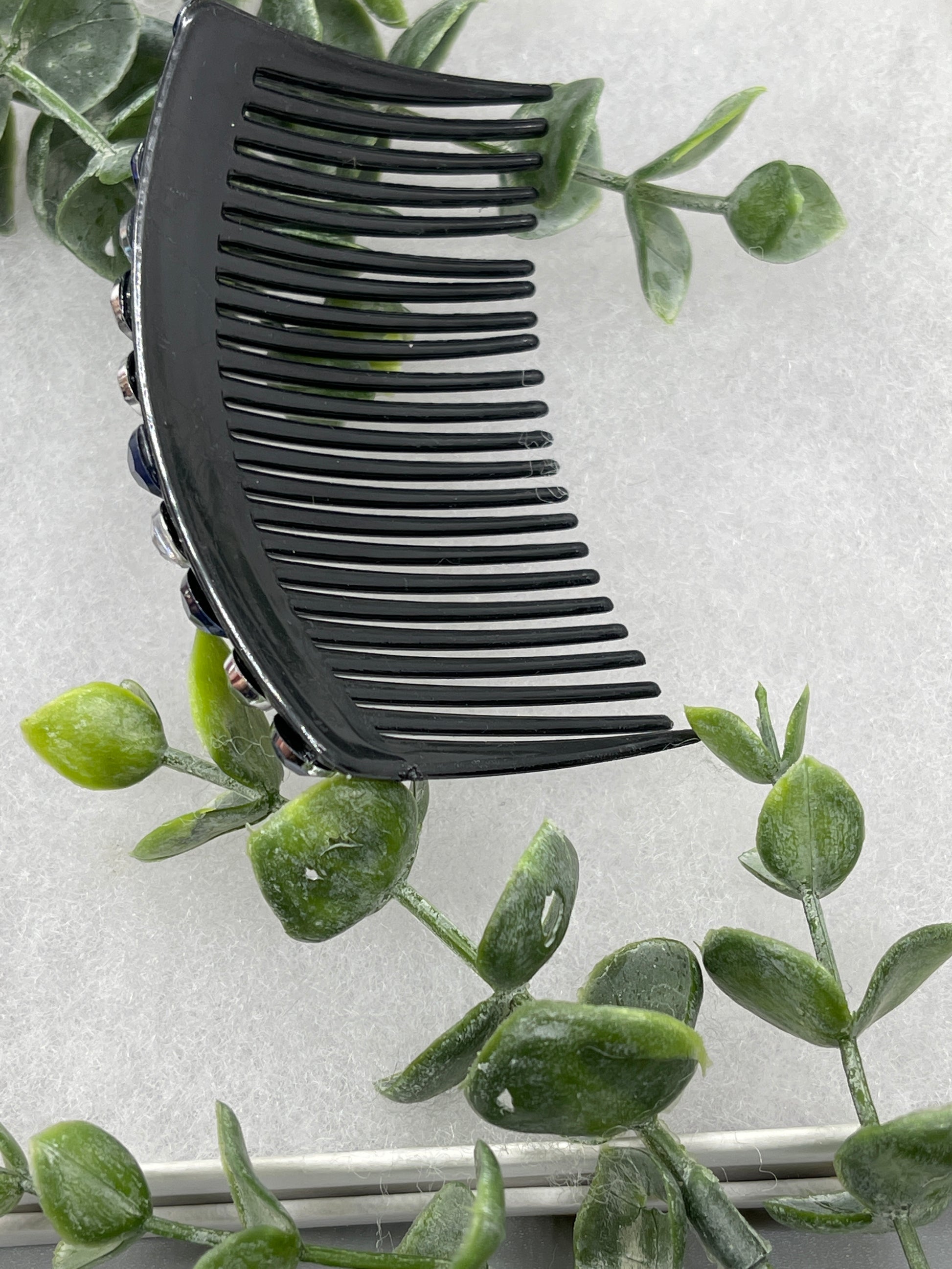 Blue faux crystal rhinestone side comb 3.5” black plastic hair accessory bridal wedding Retro Bridal Party Prom Birthday gifts
