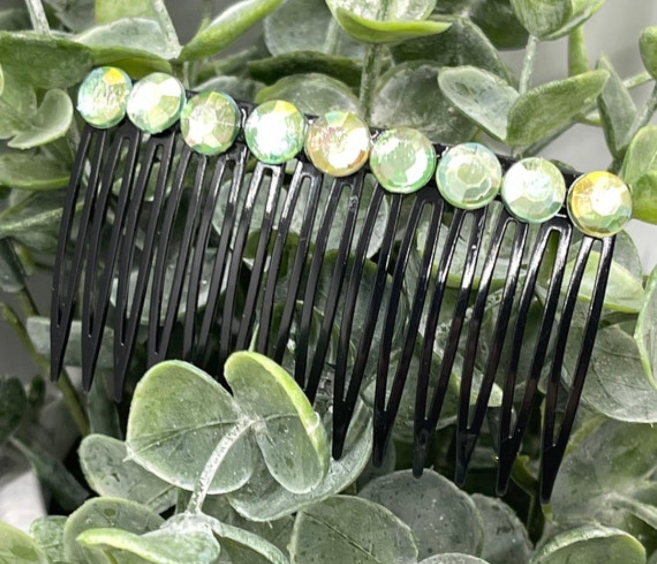 Light Green faux Rhinestone hair comb accessory side Comb 3.5” black plastic side Comb