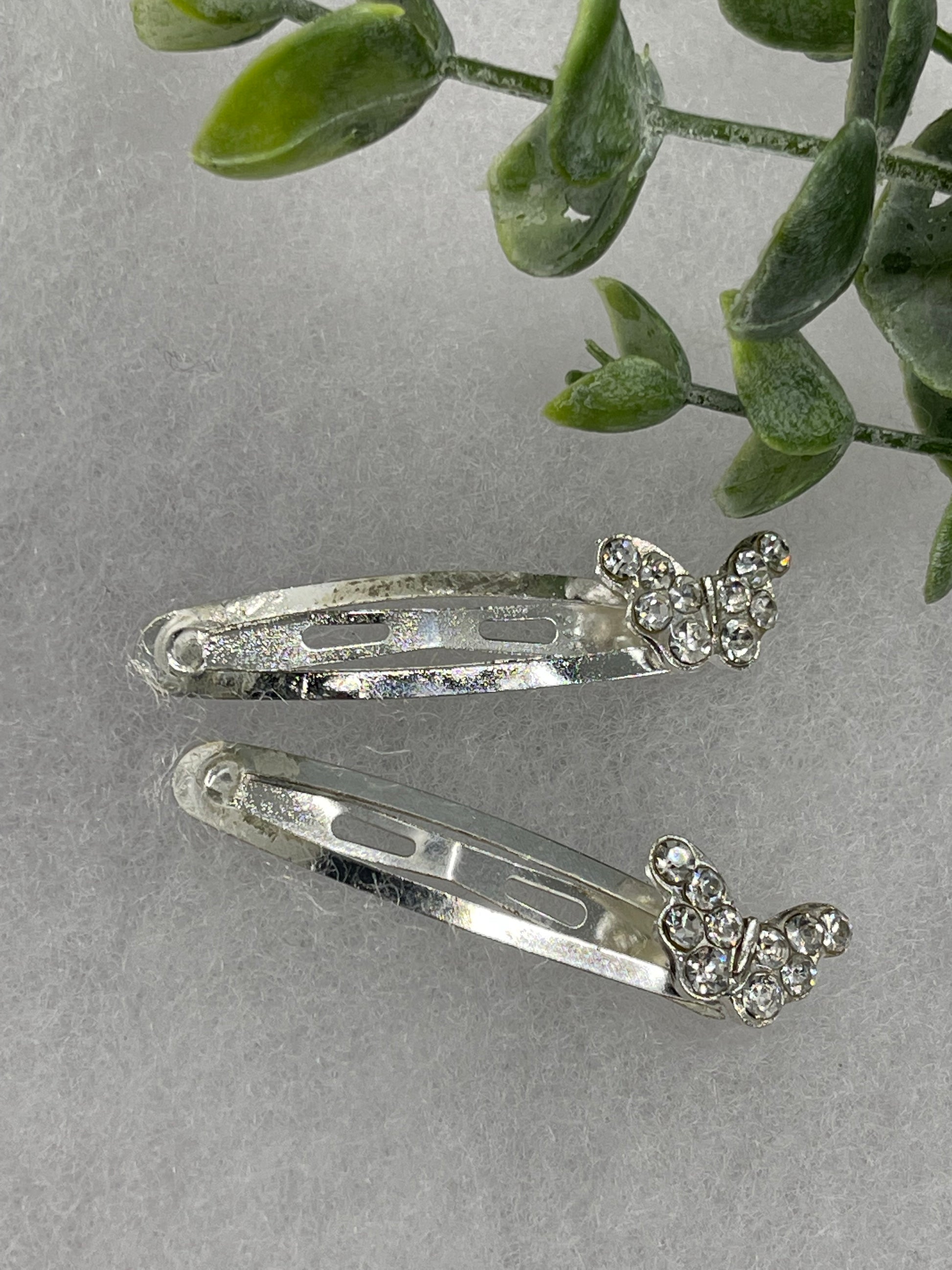 Clear crystal rhinestone butterfly approximately 2.0” silver tone sbap clips 2 pc set wedding bridal shower engagement formal princess accessory accessories