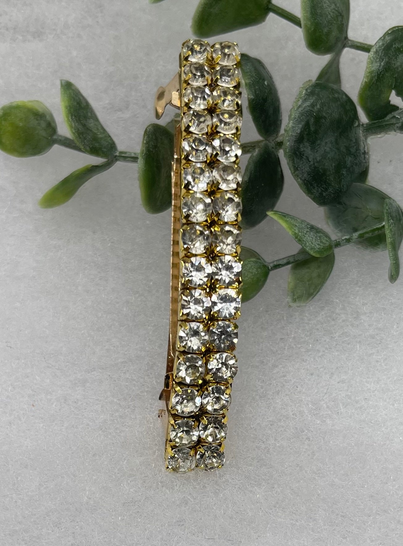 Clear Crystal Rhinestone Barrette approximately 3.0”Metal gold tone formal hair accessory gift wedding bridal shower accessories