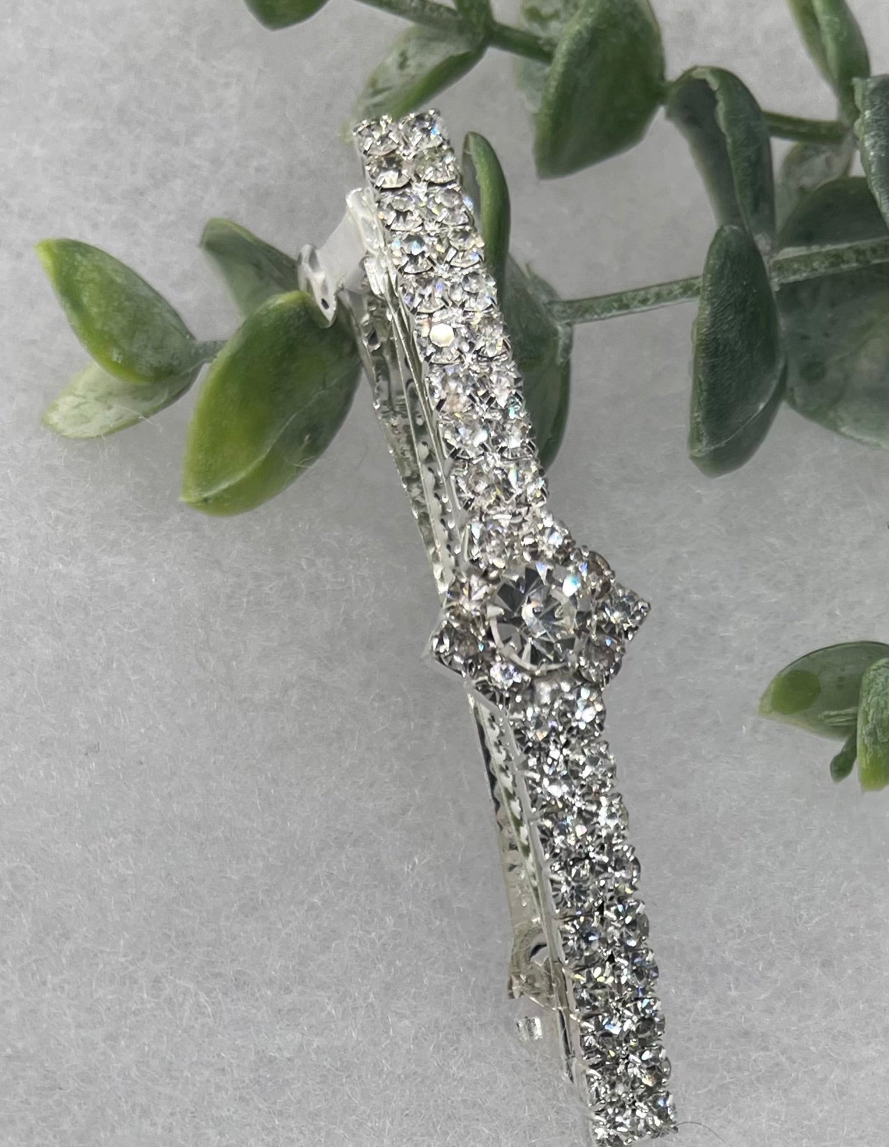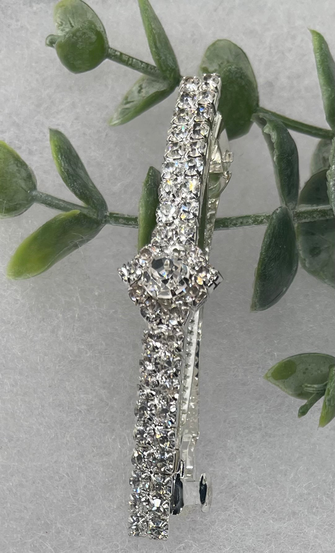 Clear Crystal Rhinestone Barrette approximately 3.0”Metal silver tone formal hair accessory gift wedding bridal shower accessories