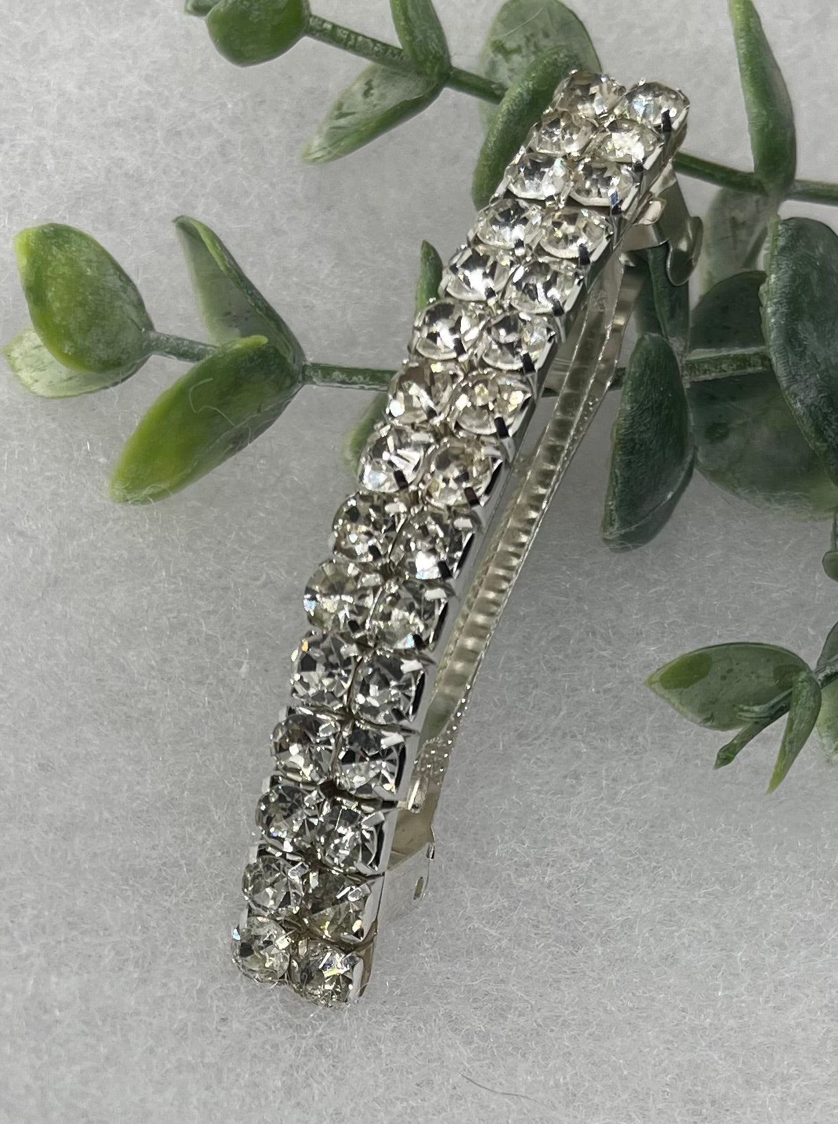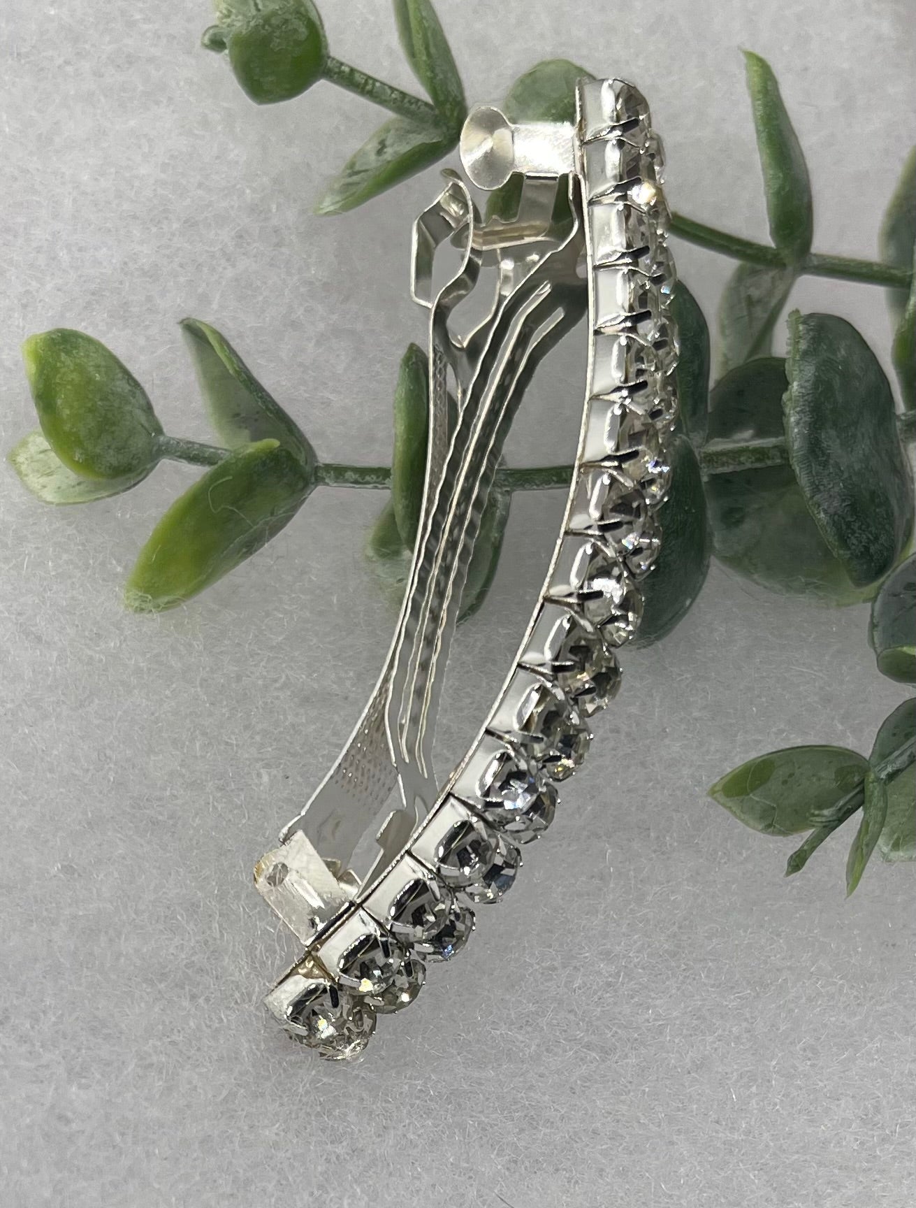 Clear Crystal Rhinestone Barrette approximately 3.0” Metal silver tone formal hair accessory gift wedding bridal shower accessories