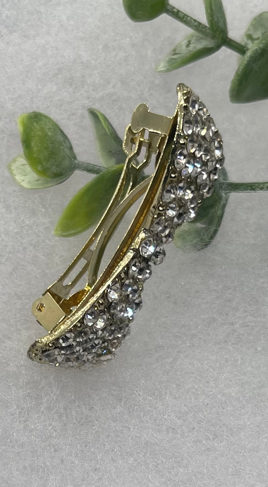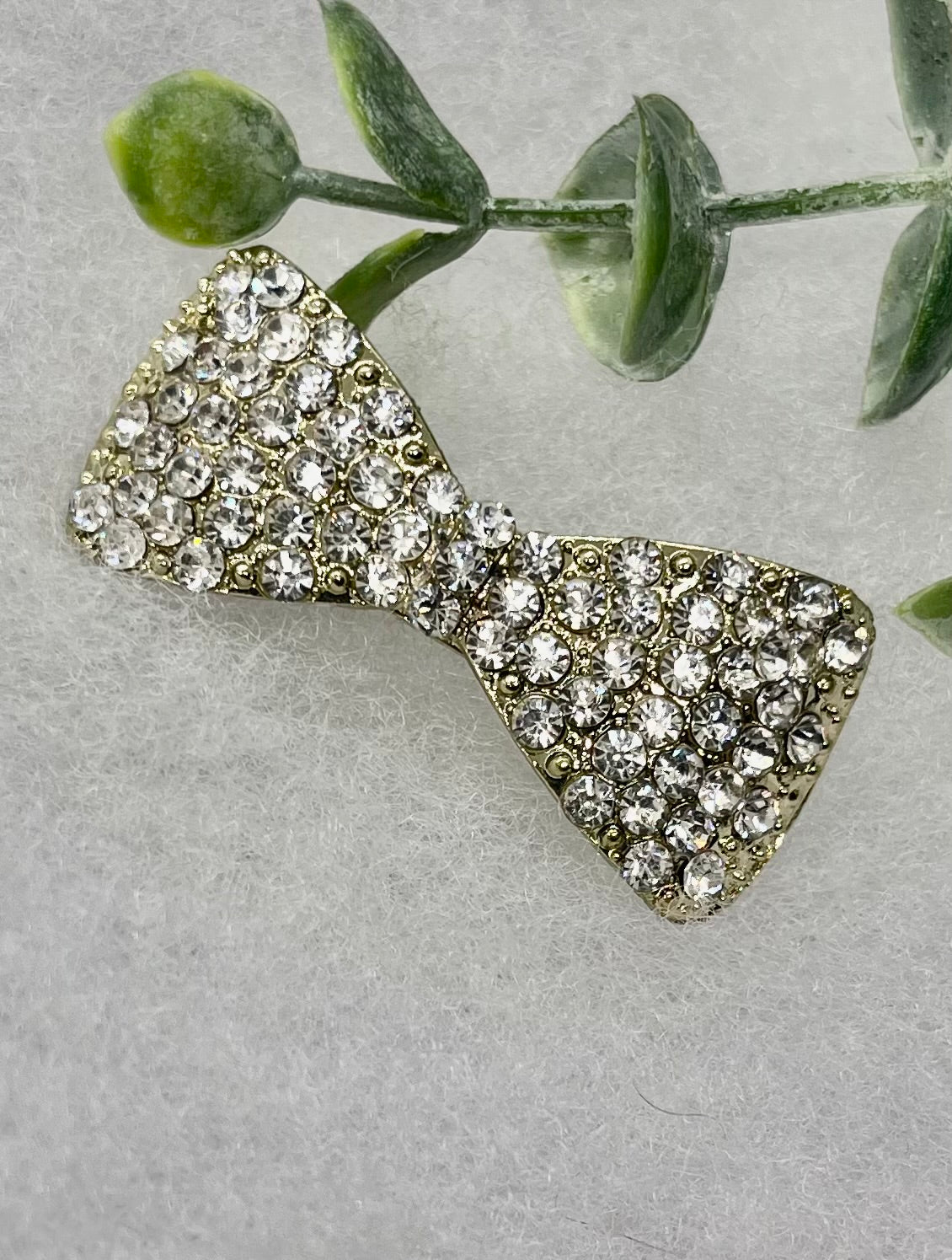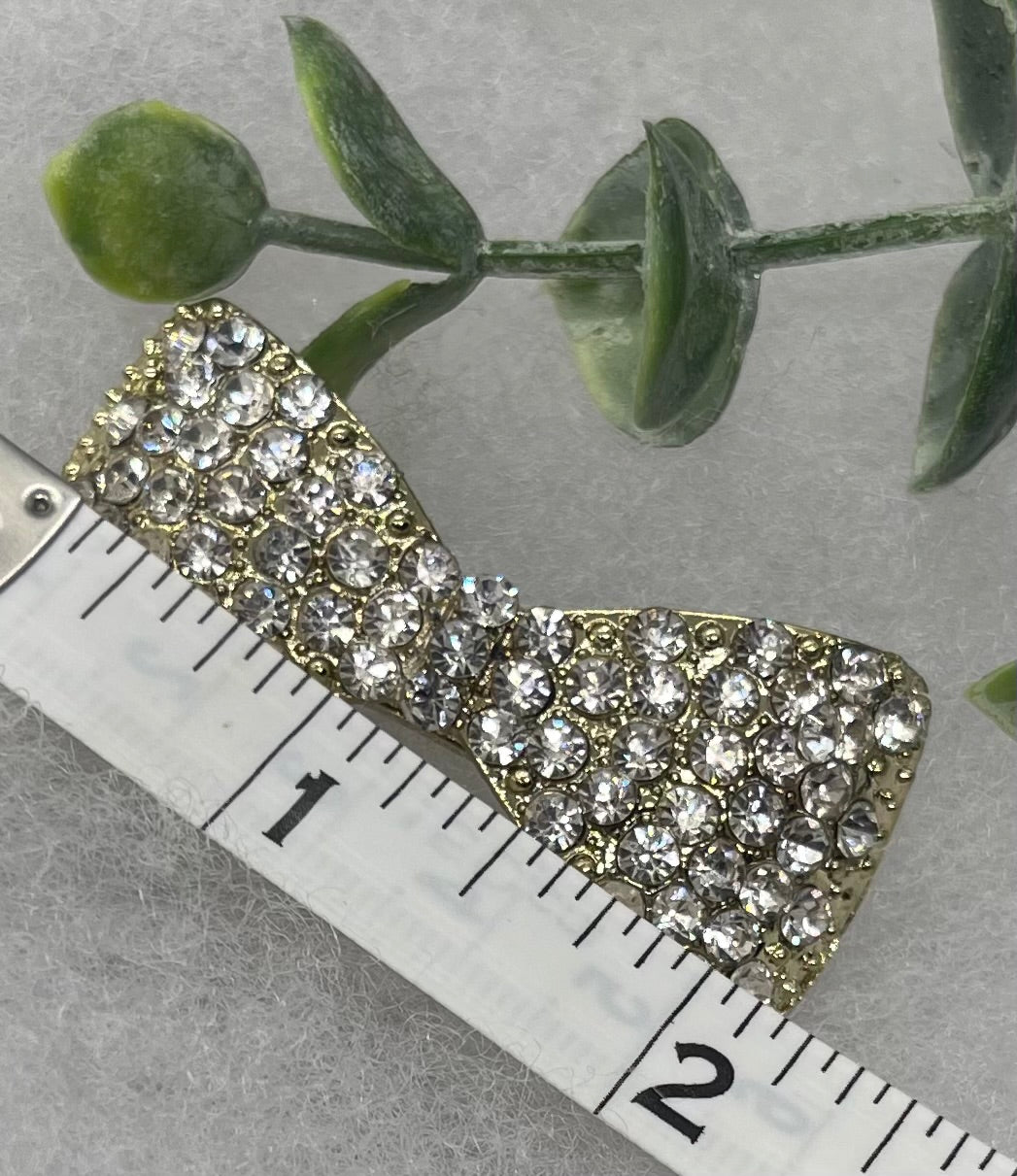 Clear Crystal Rhinestone bow tie Barrette approximately 2.5” Metal gold tone formal hair accessory gift wedding bridal shower accessories