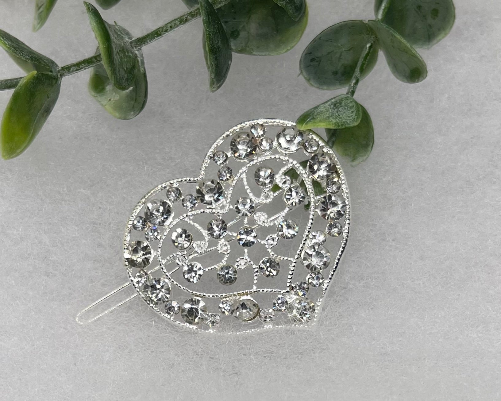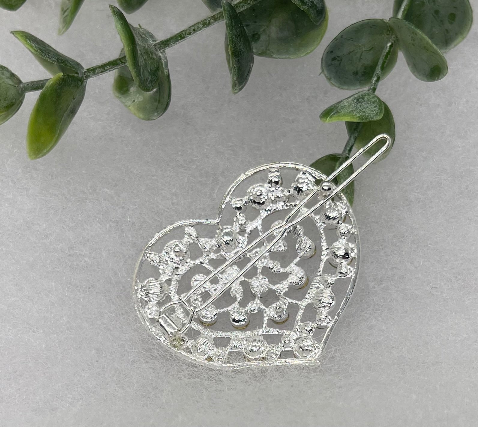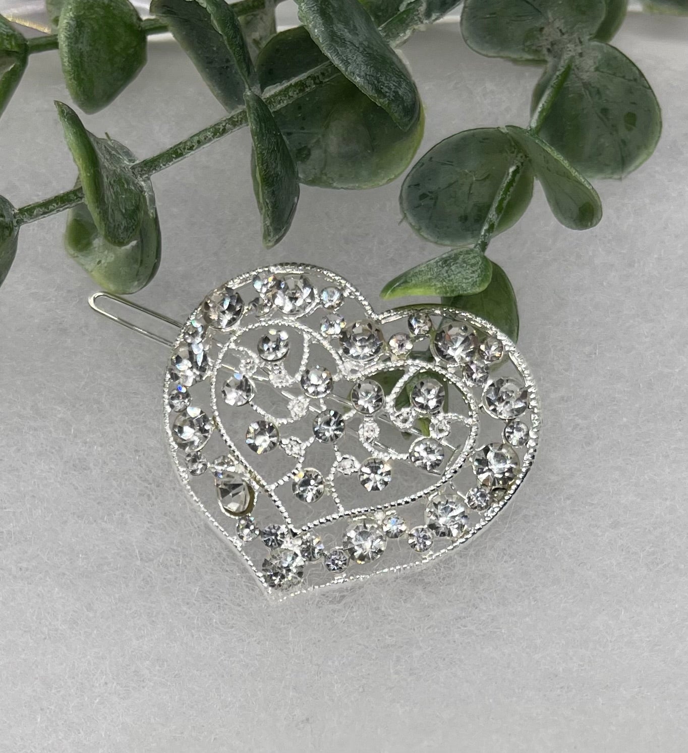 Clear Crystal rhinestone heart silver tone hair clip approximately 2.0” long hair accessory bridal wedding Retro Bridal Party Prom Birthday gifts