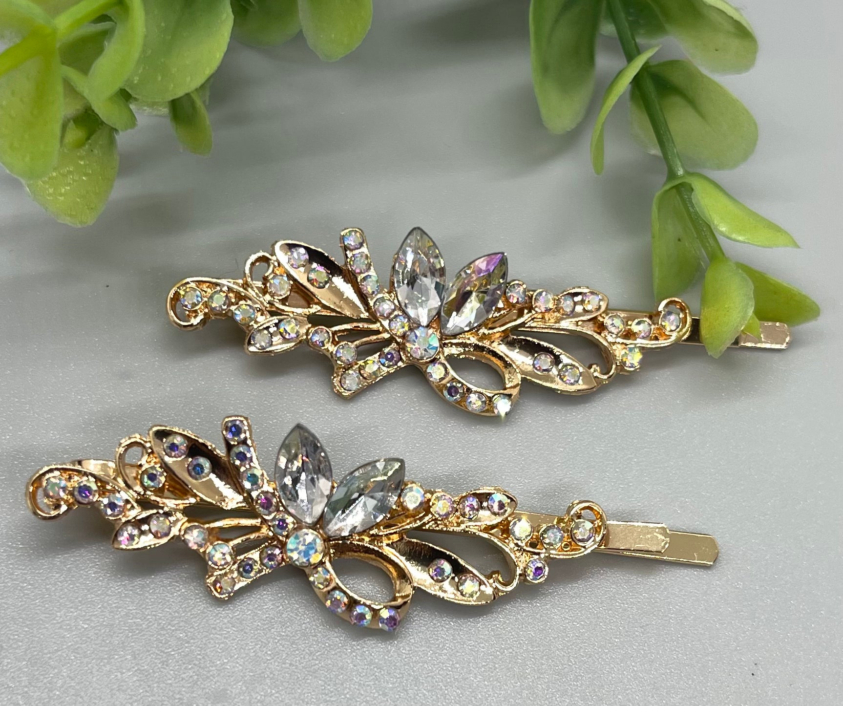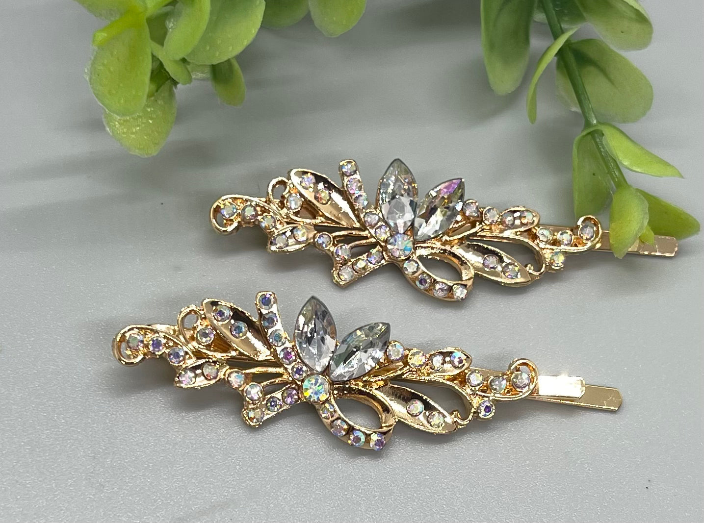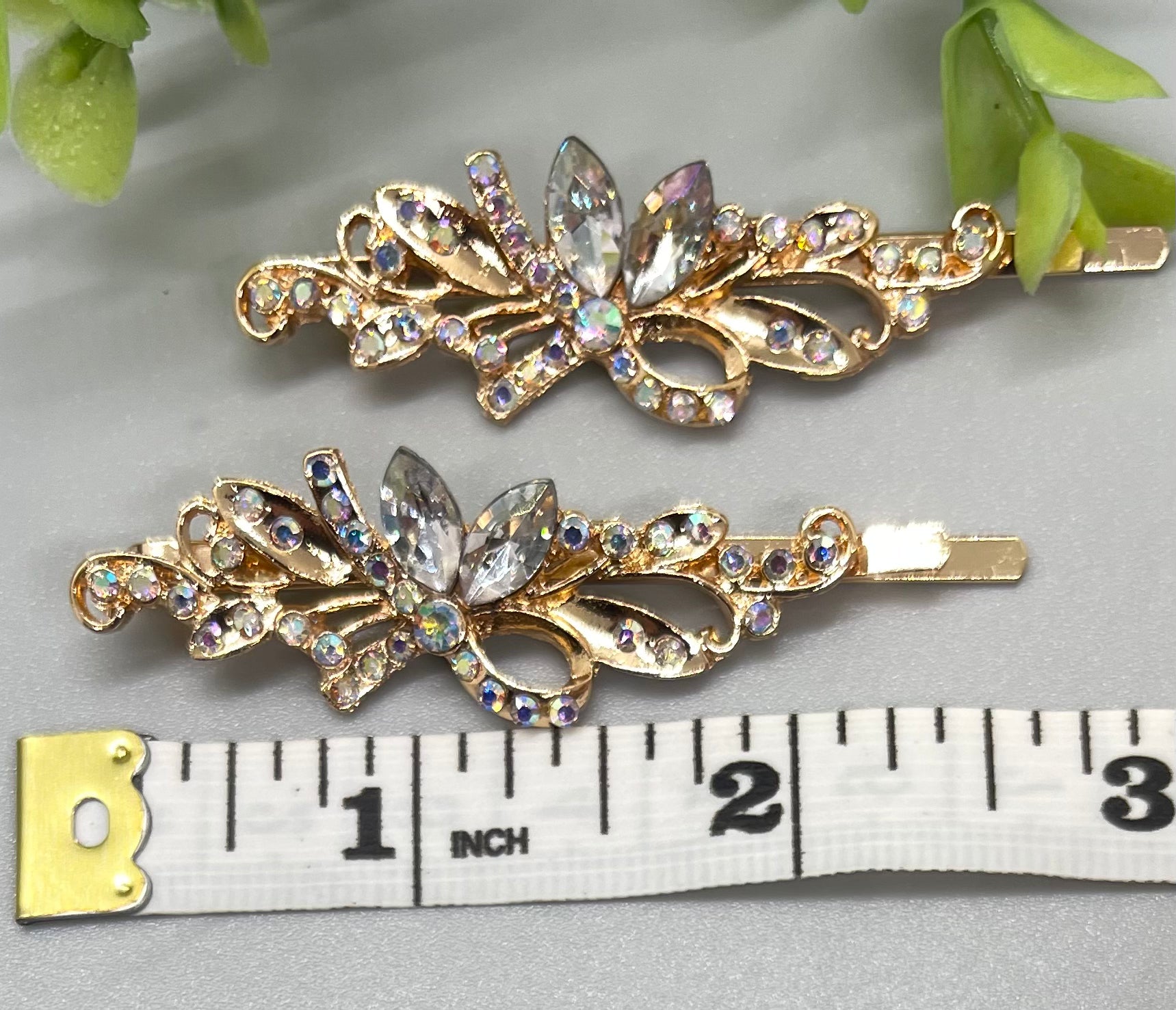 Clear crystal rhinestone Rose Gold approximately 2.75 hair pins 2 pc set wedding bridal shower engagement formal princess accessory birthday prom
