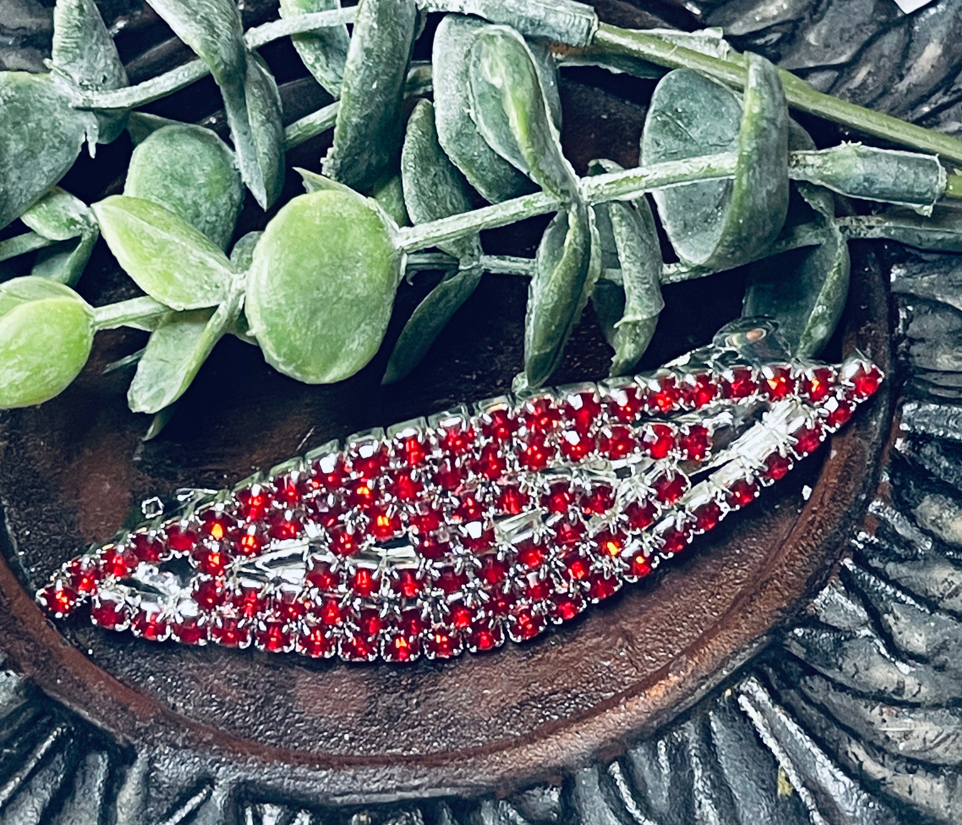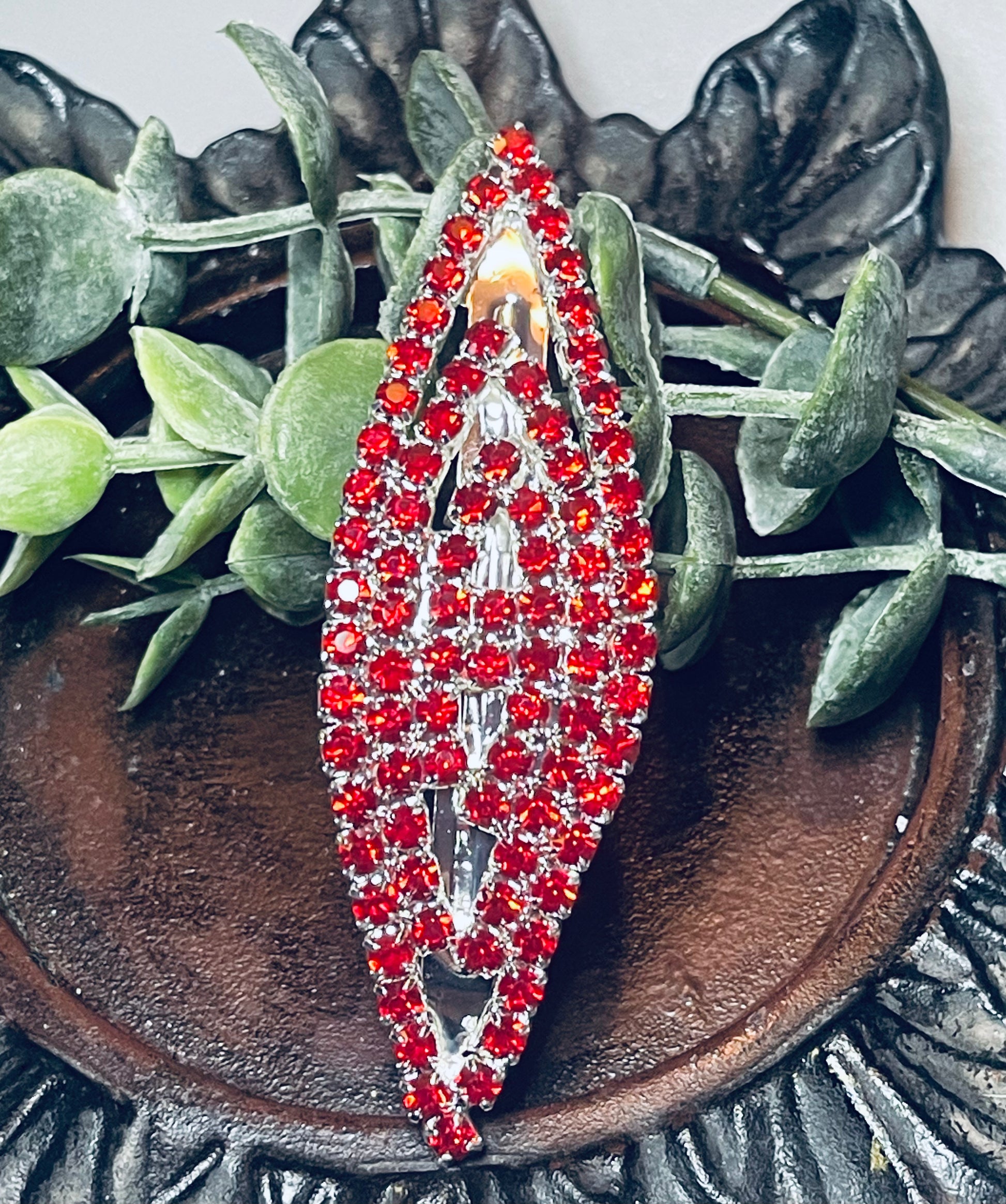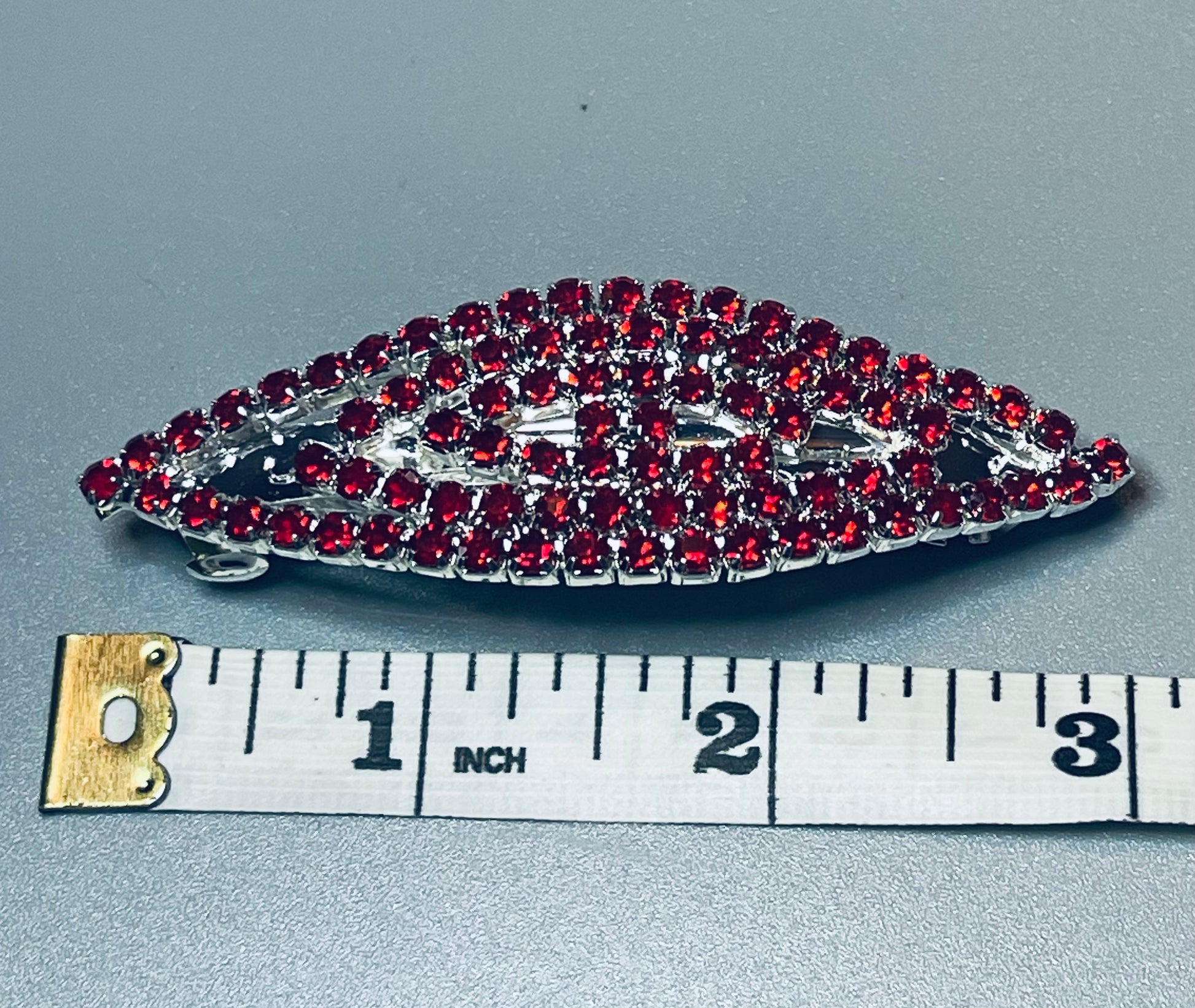 Red Crystal rhinestone barrette approximately 3.0” silver tone formal hair accessories gift wedding bridesmaid Prom birthday gifts