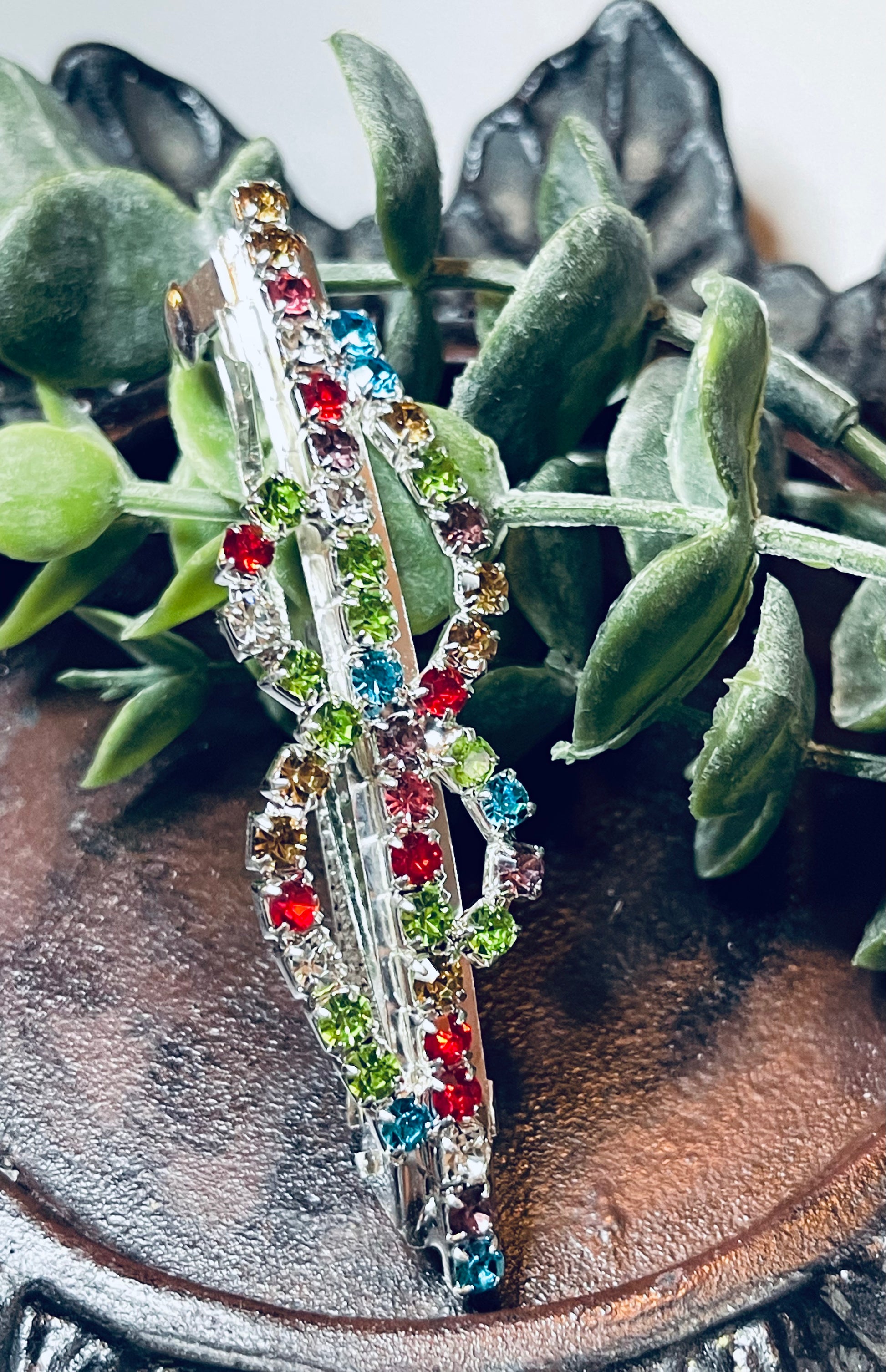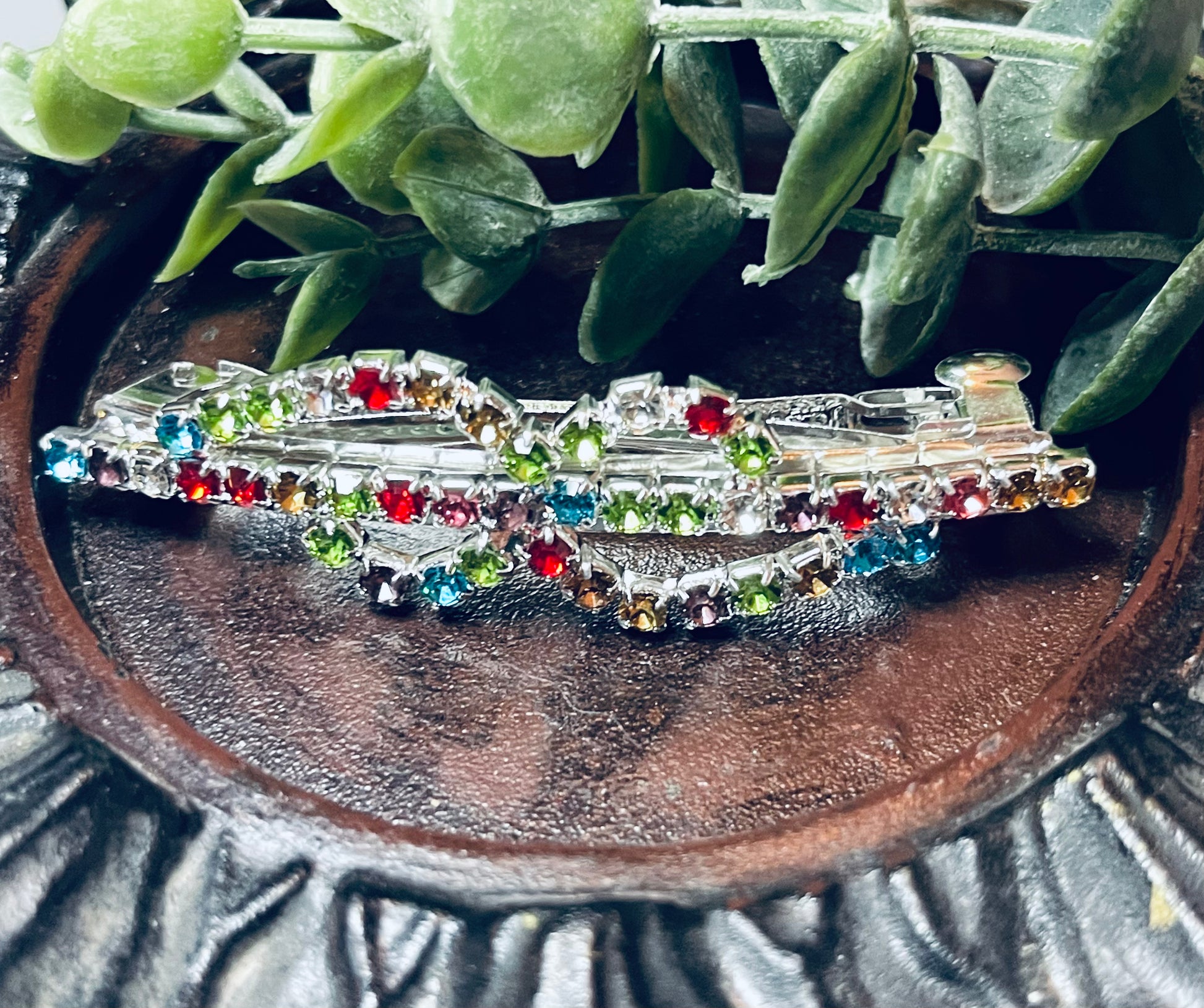 Rainbow Crystal rhinestone barrette approximately 3.0” silver tone formal hair accessories gift wedding bridesmaid