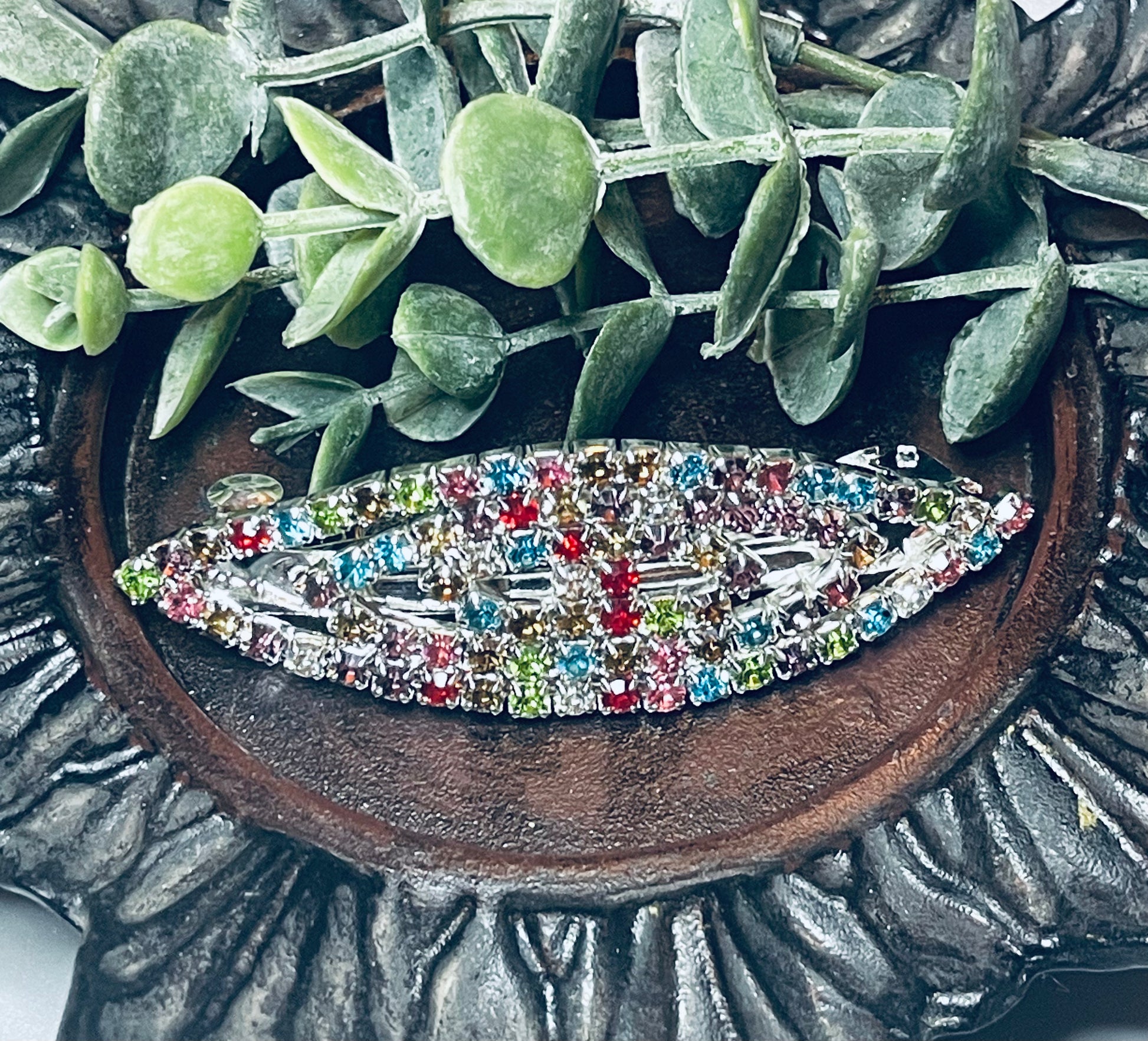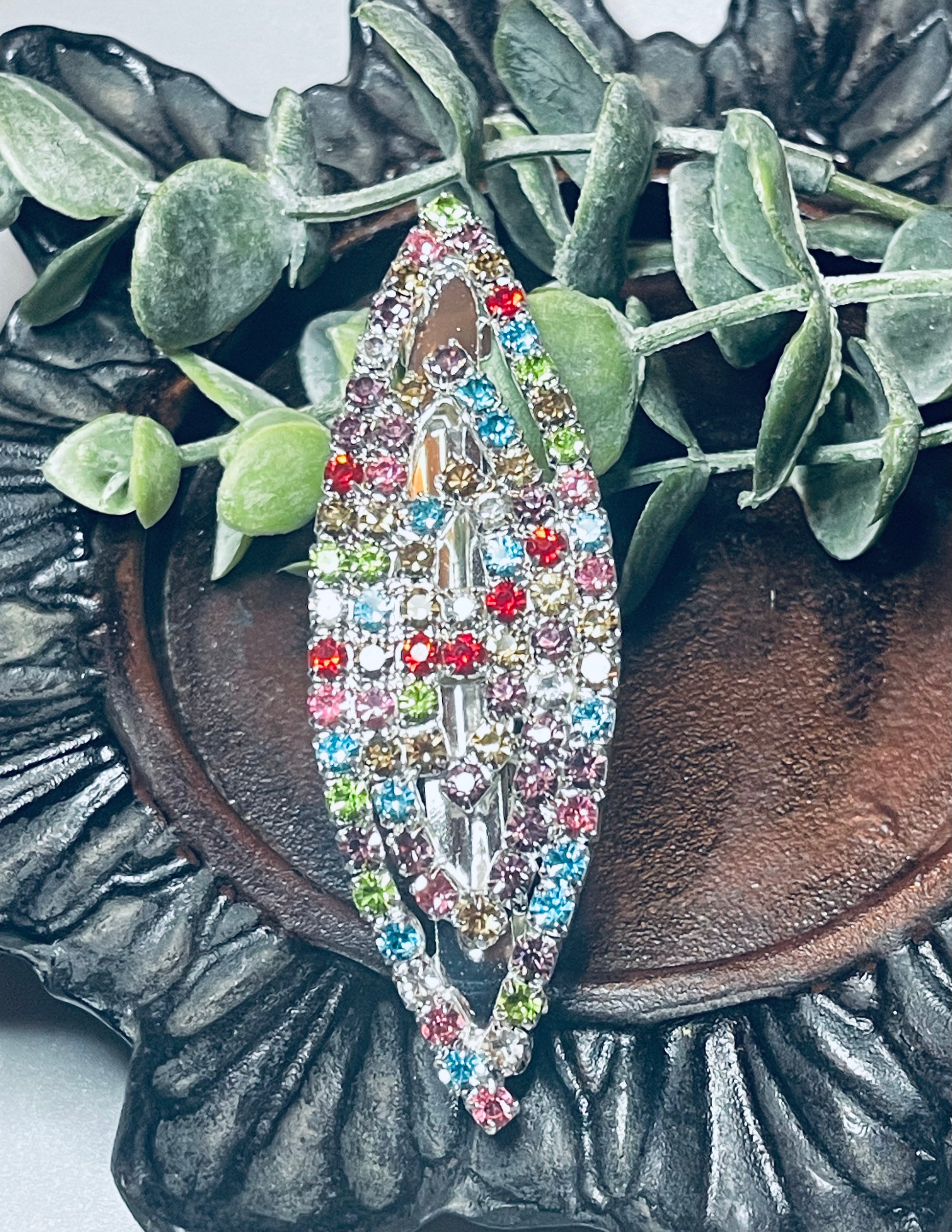 Rainbow Crystal rhinestone barrette approximately 3.0” silver tone formal hair accessories gift wedding bridesmaid Prom birthday gifts