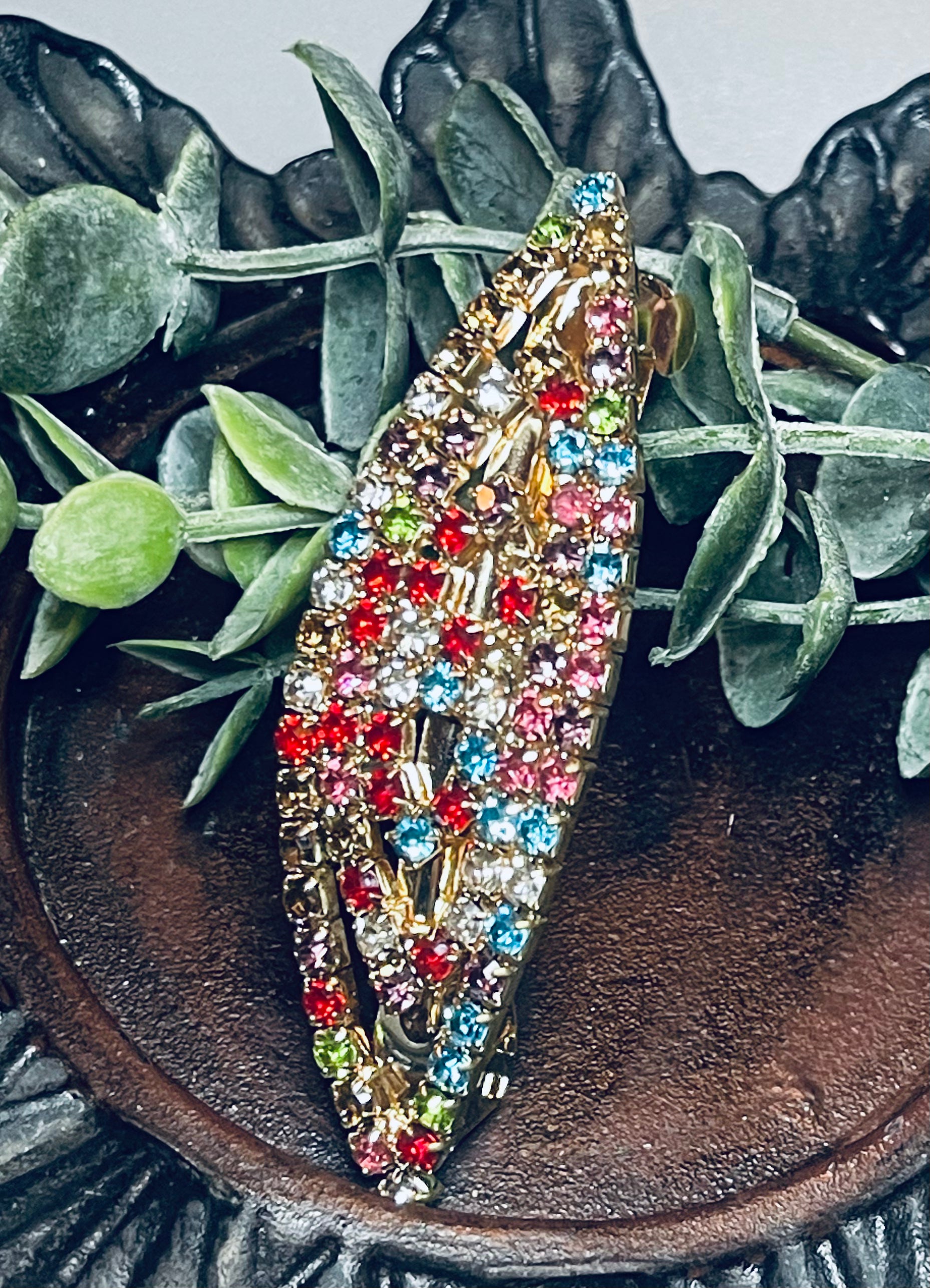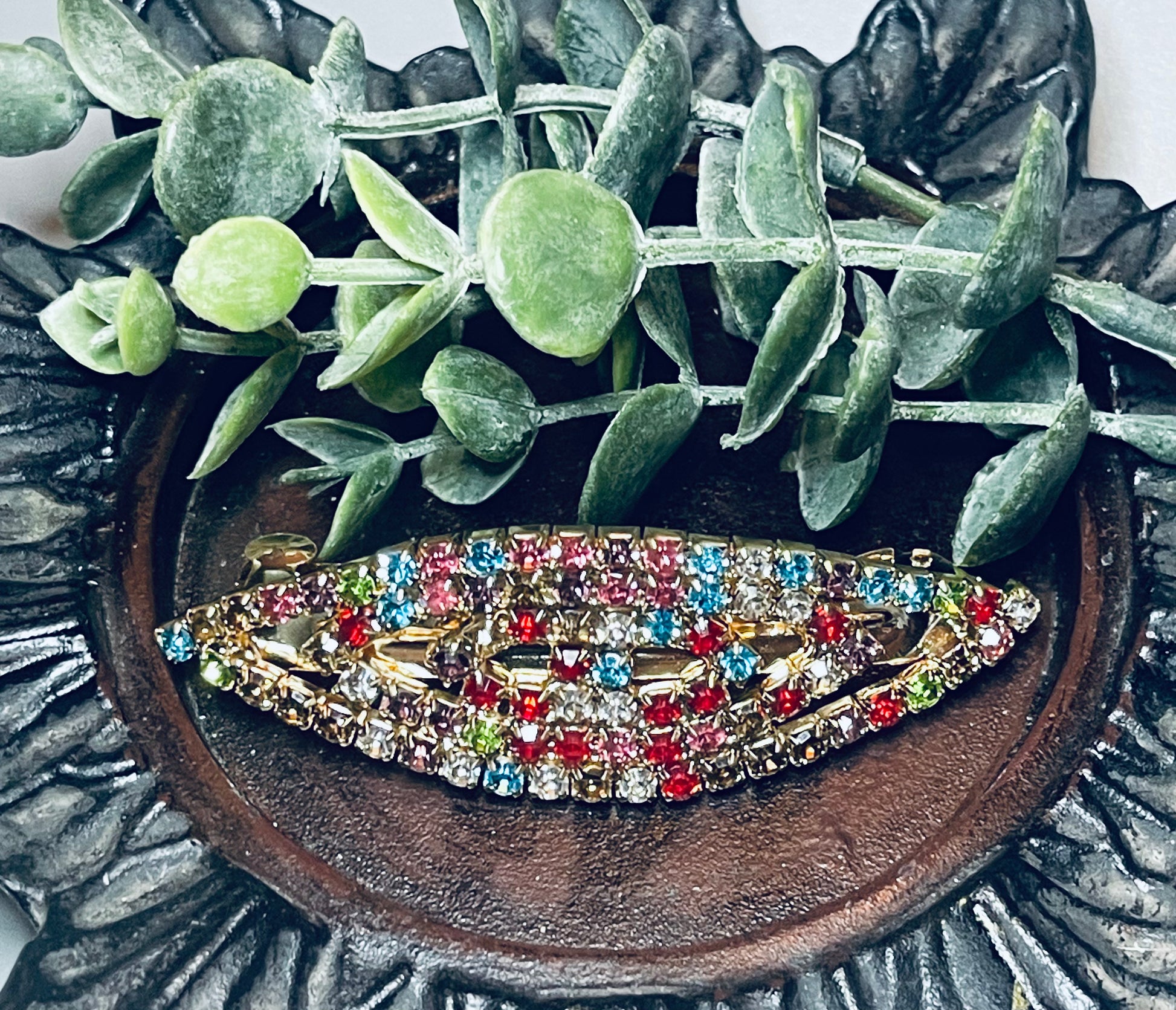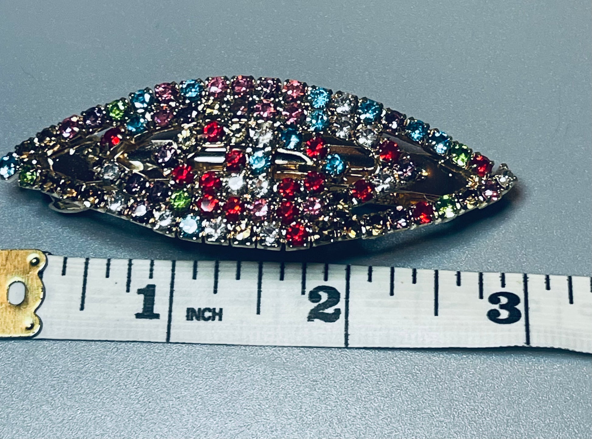 Rainbow Crystal rhinestone barrette approximately 3.0” gold tone formal hair accessories gift wedding bridesmaid Prom birthday gifts
