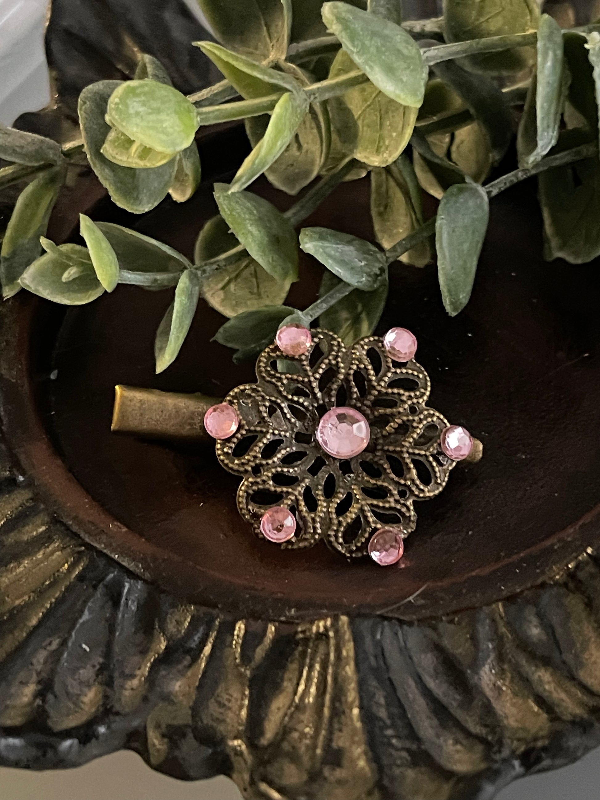 Pink crystal vintage antique style leaf hair alligator clip on a 2.0” Handmade hair accessory bridal wedding Retro Bridal Party Prom Birthday gifts