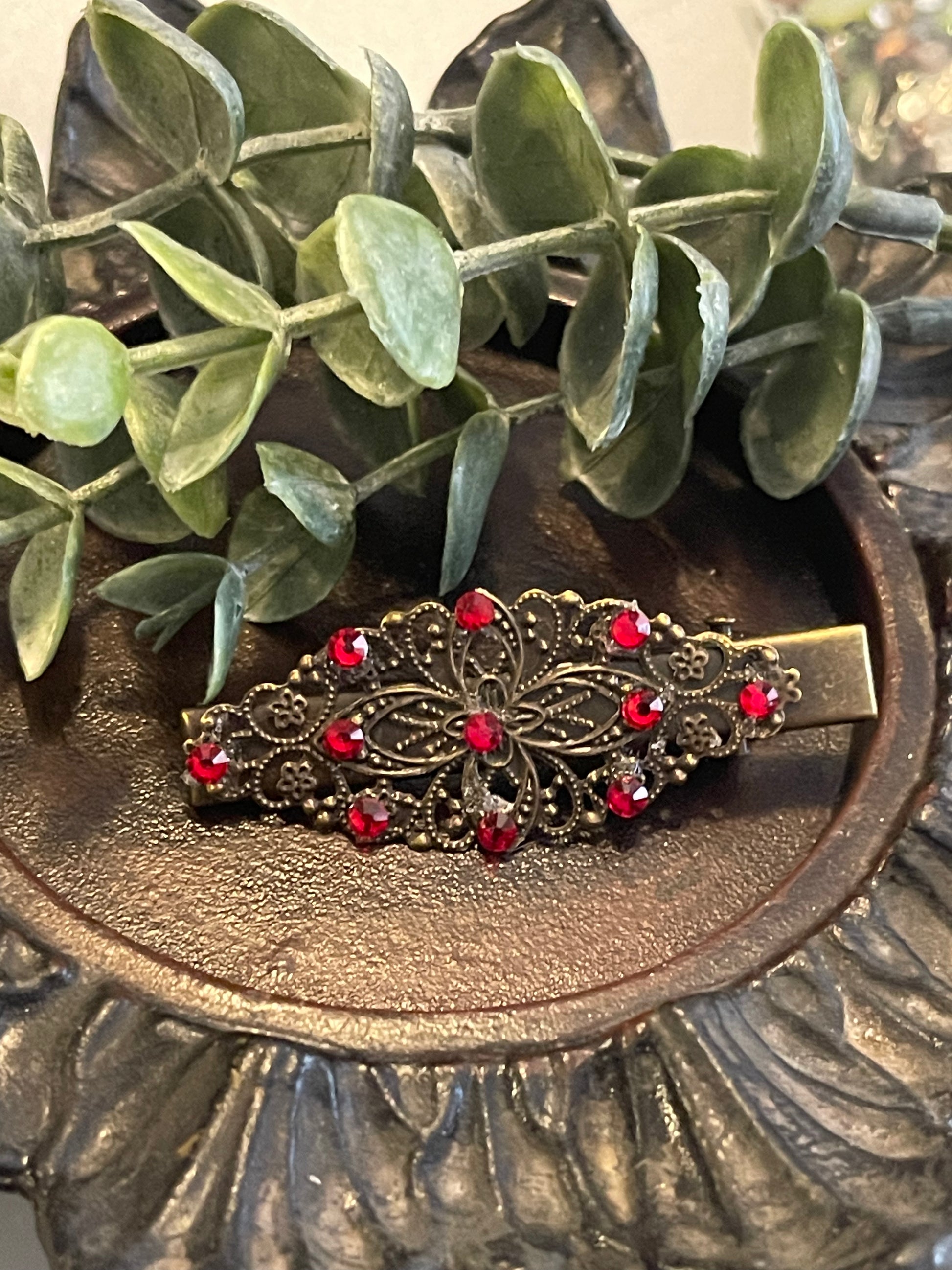 Ruby Red antique style hair alligator clip approximately 2,5” long Handmade hair accessory bridal wedding