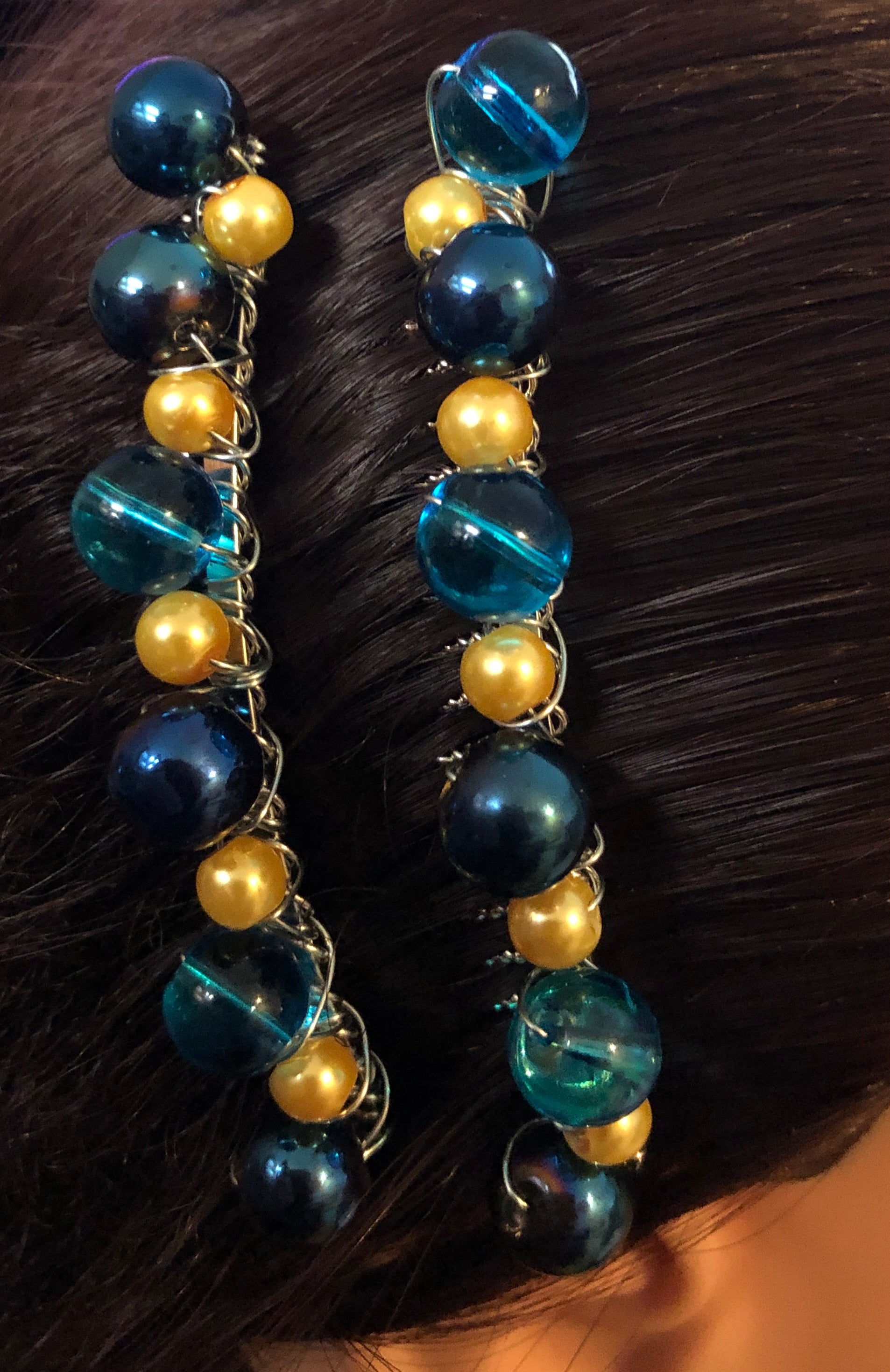 Blue Gold Beaded on a Silver one Metal 3.5" Comb Handmade By Hairdazzel Retro Bridal Party Prom Birthday