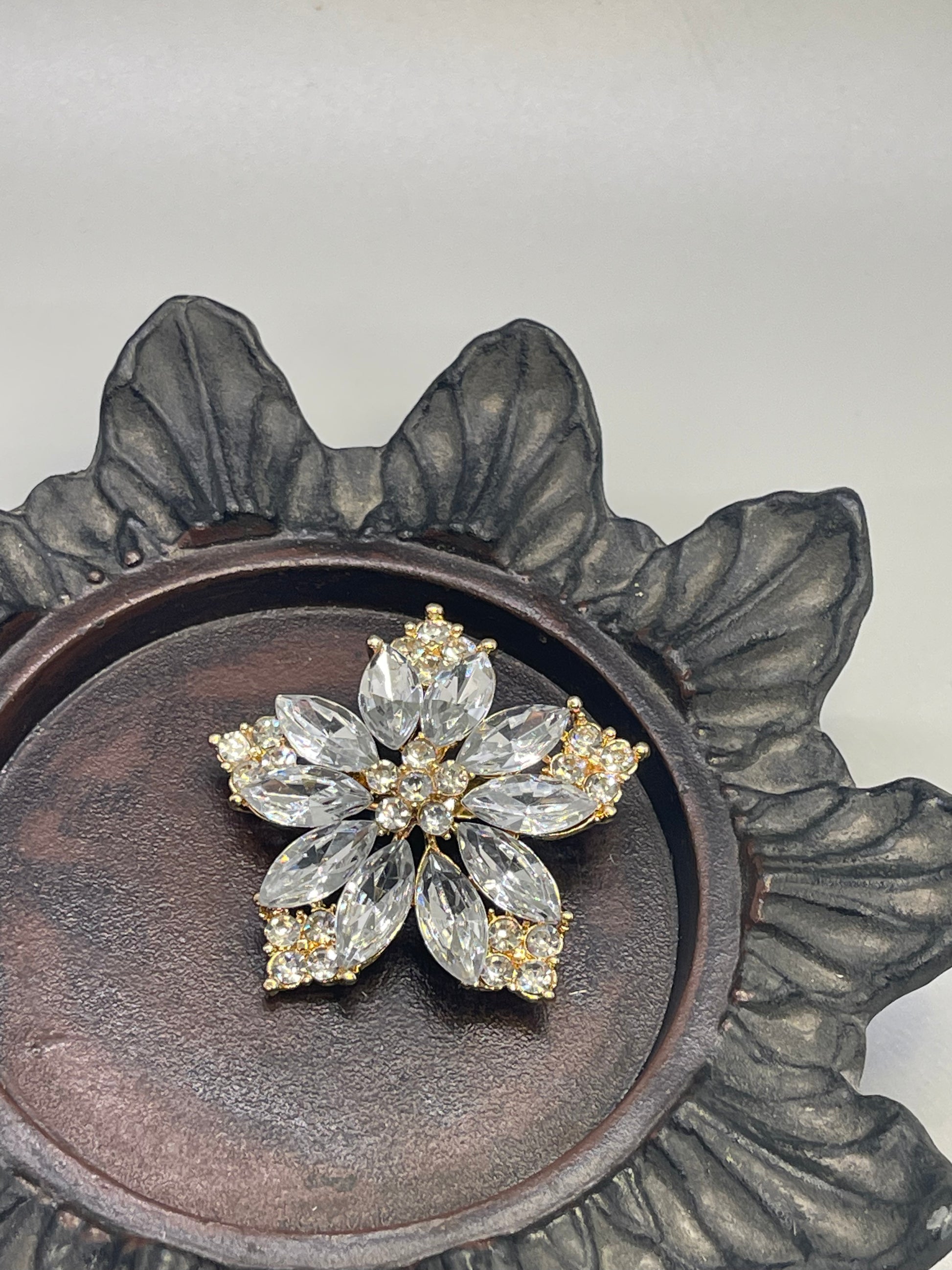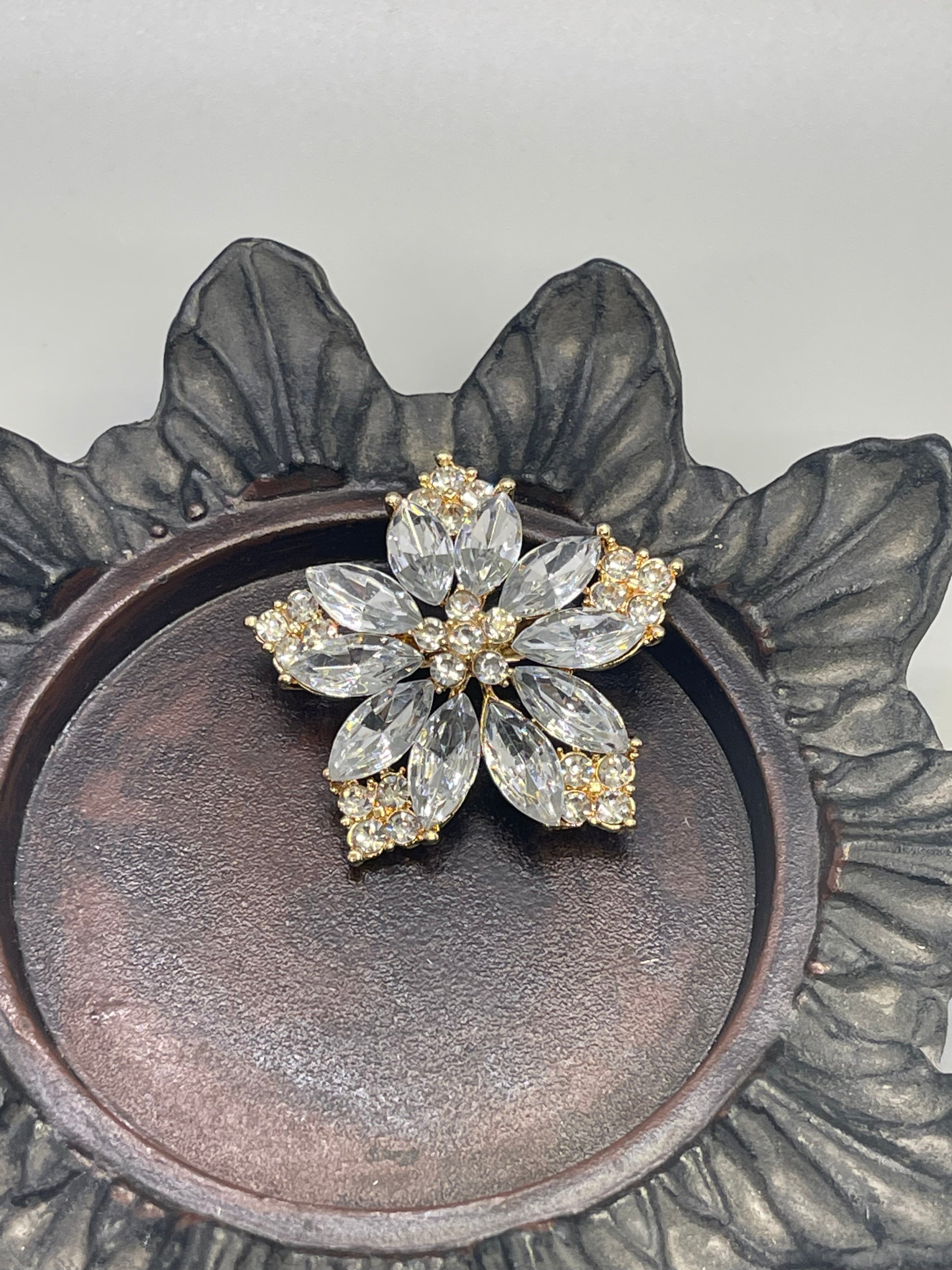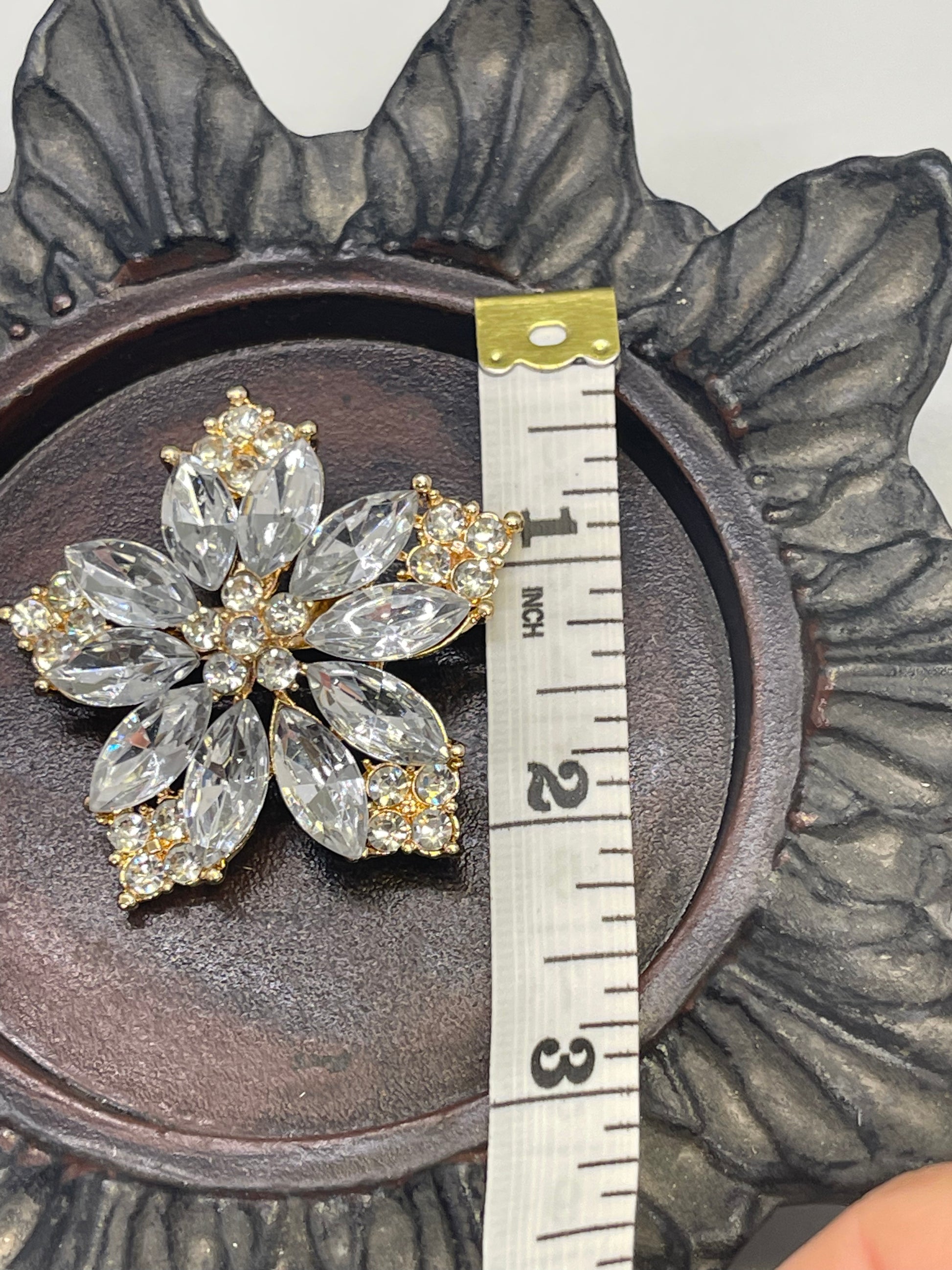 Luxe’s clear Crystal Star flower Brooch Rhinestone silver gold tone woman with rhinestone gift scarf accessory