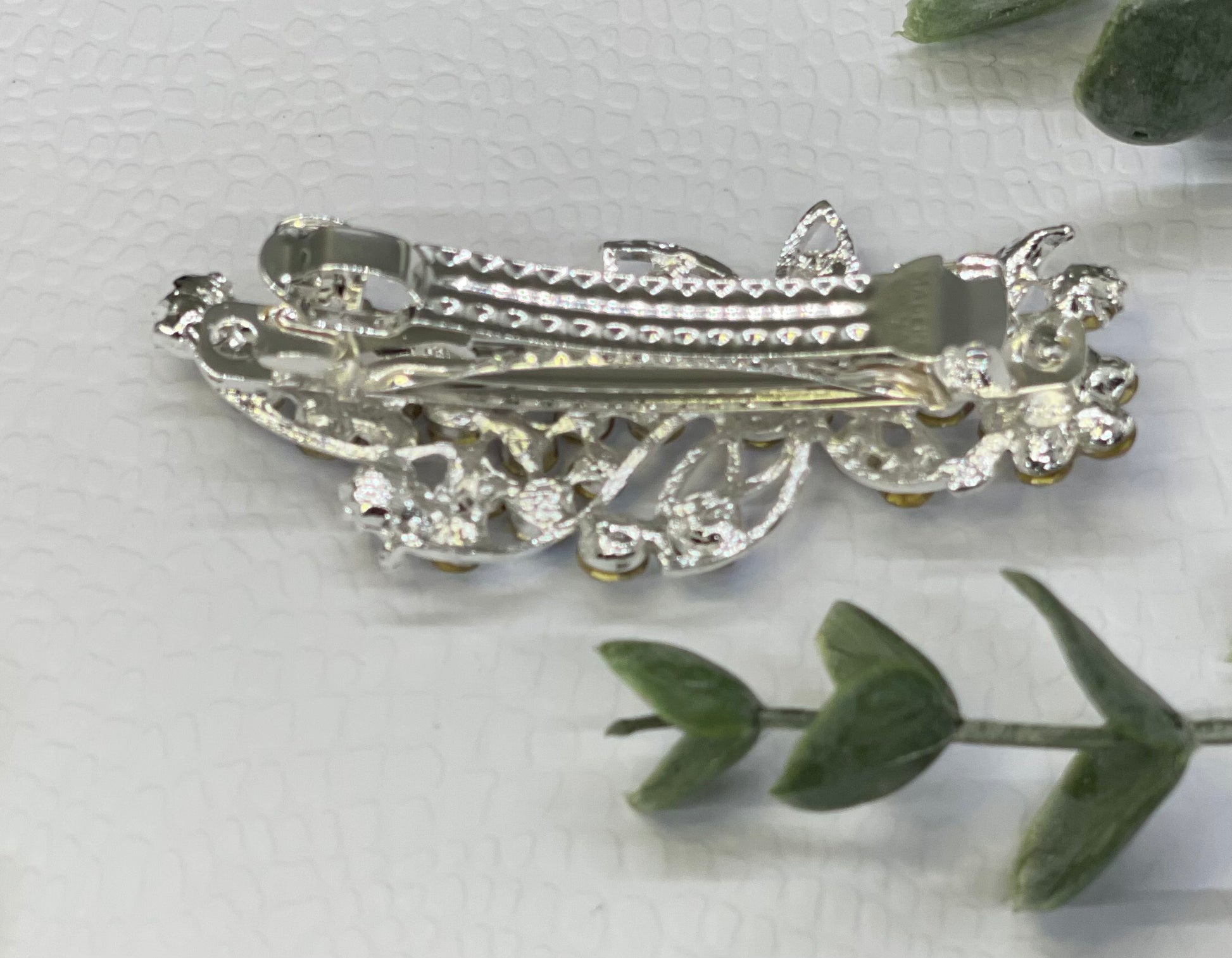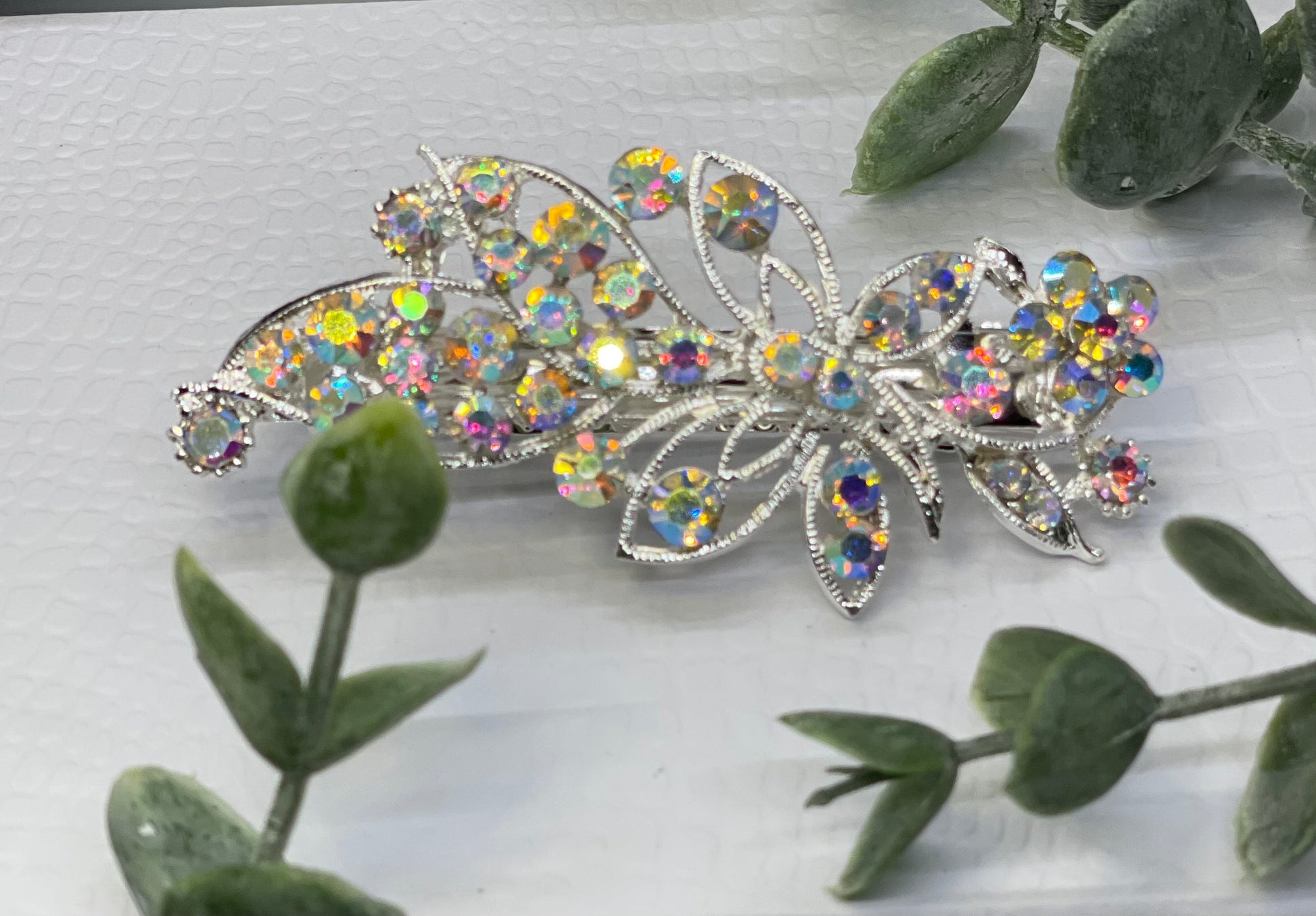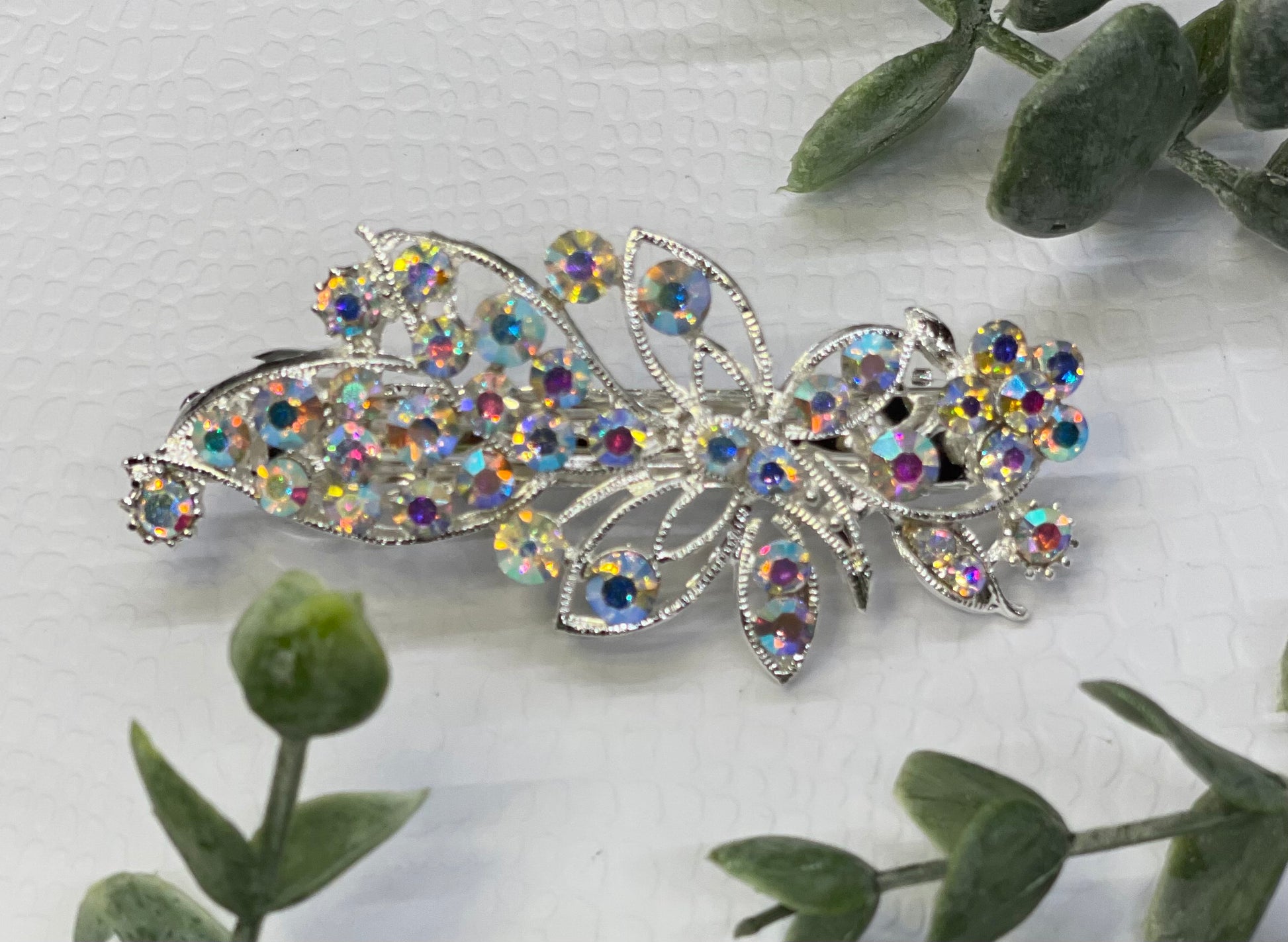 iridecent Crystal rhinestone barrette approximately 3.0” silver tone formal hair accessories gift wedding bridesmaid