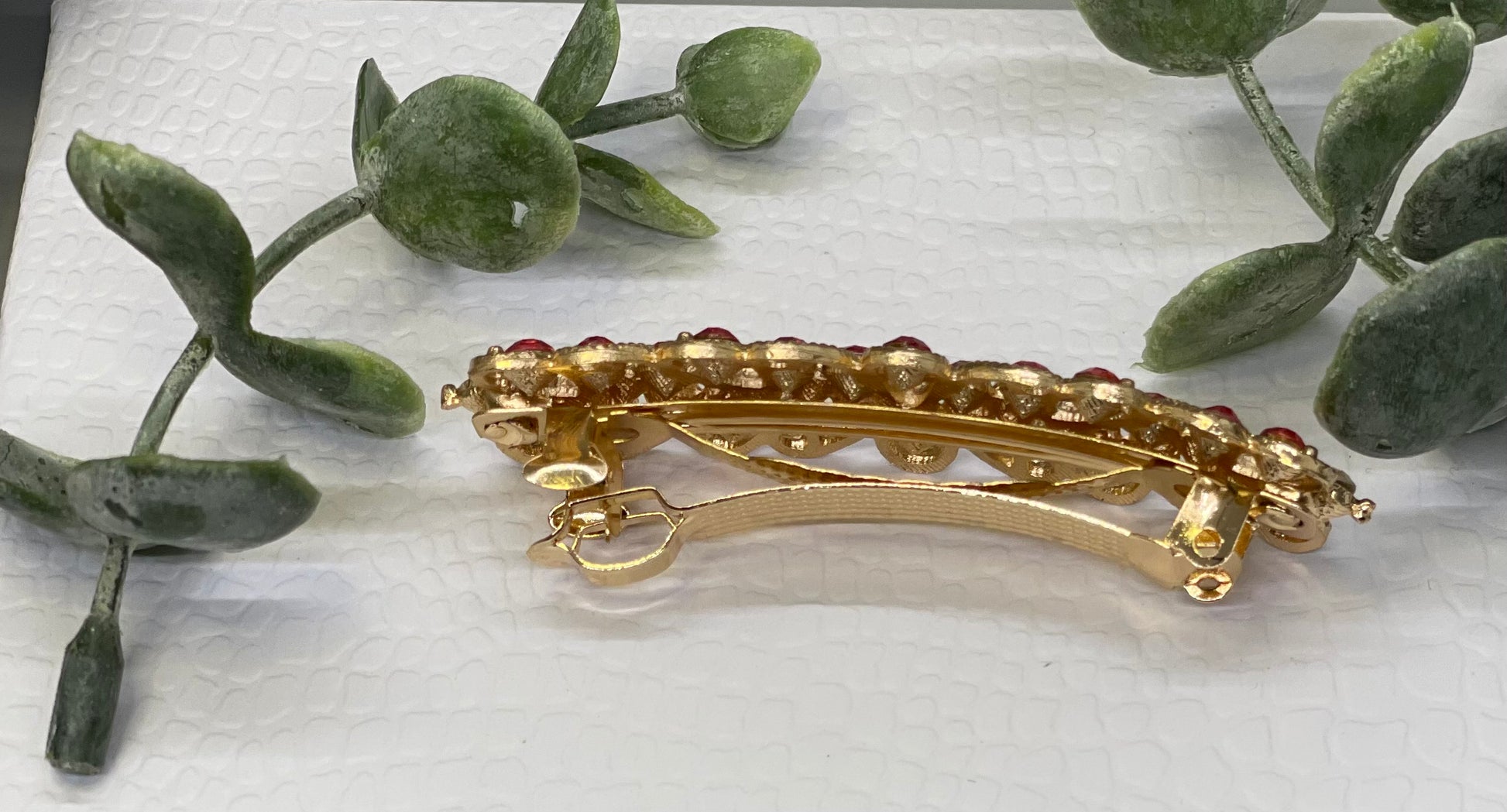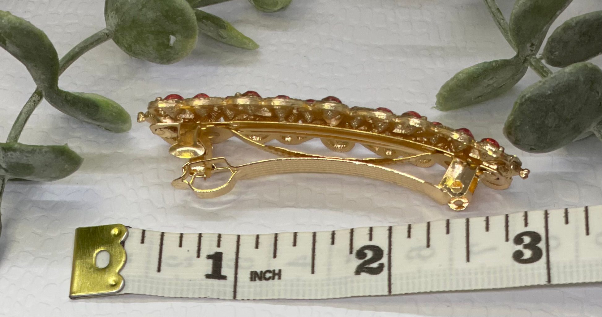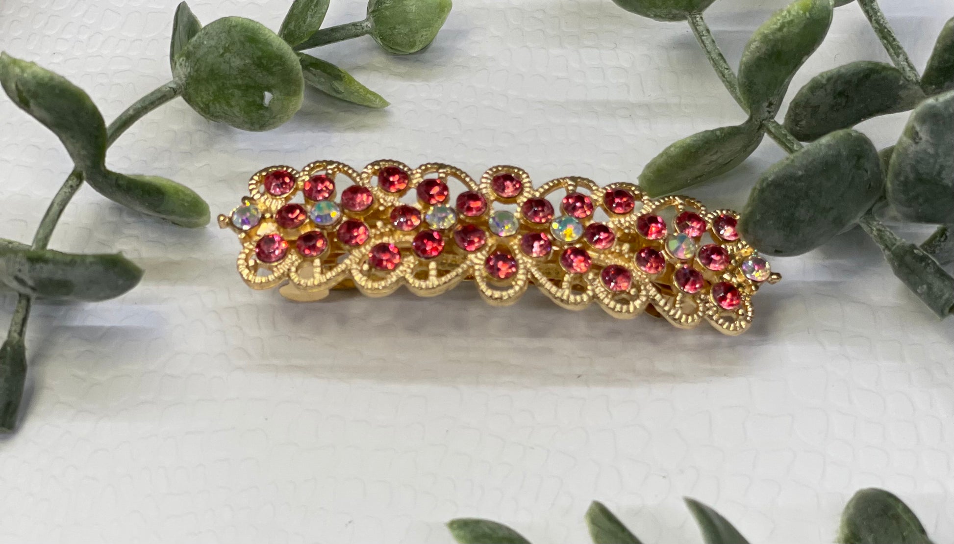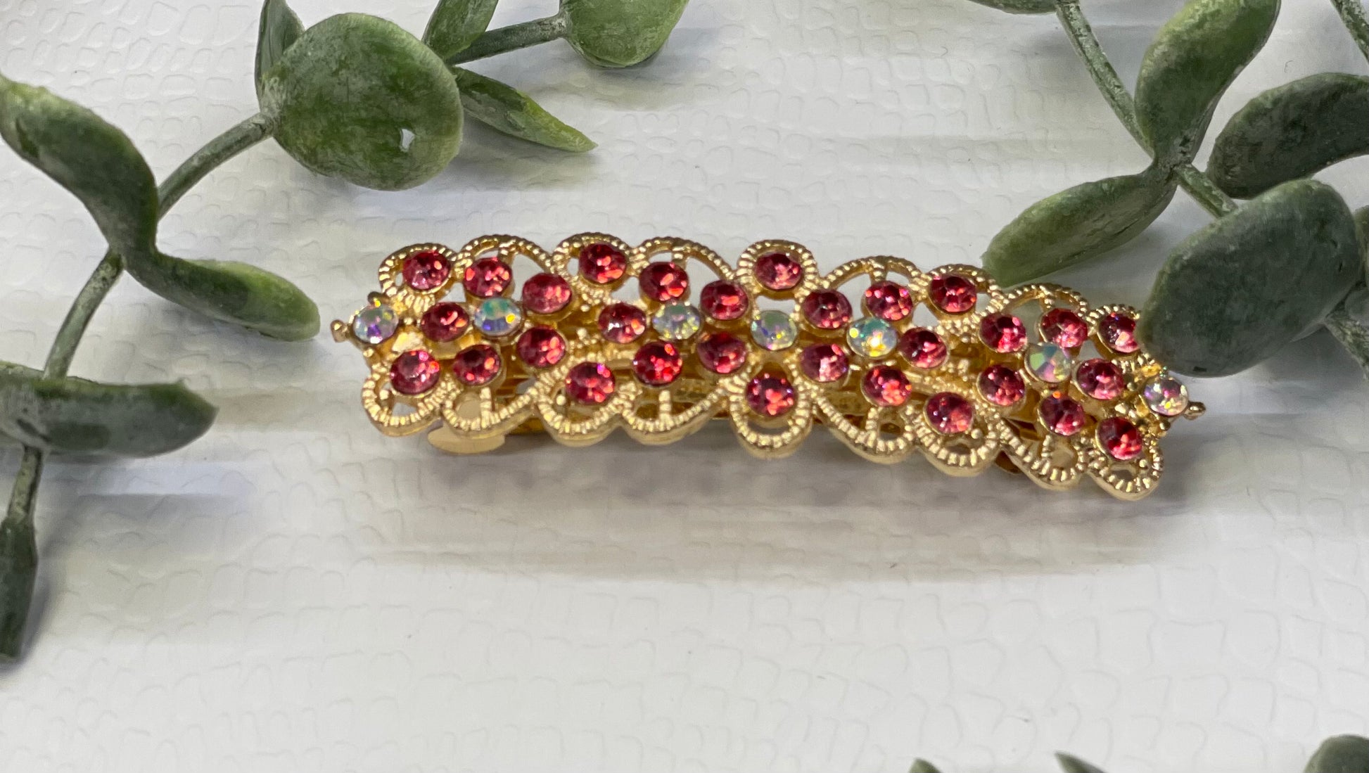 Pink Crystal rhinestone barrette approximately 3.0” gold tone formal hair accessories gift wedding bridesmaid