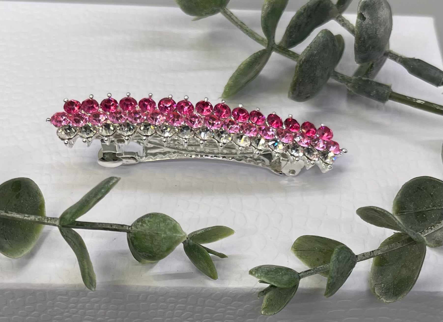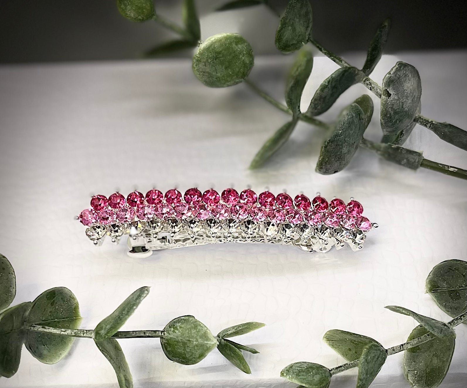 Pink Crystal rhinestone barrette approximately 3.0” silver tone formal hair accessories gift wedding bridesmaid princess accessory
