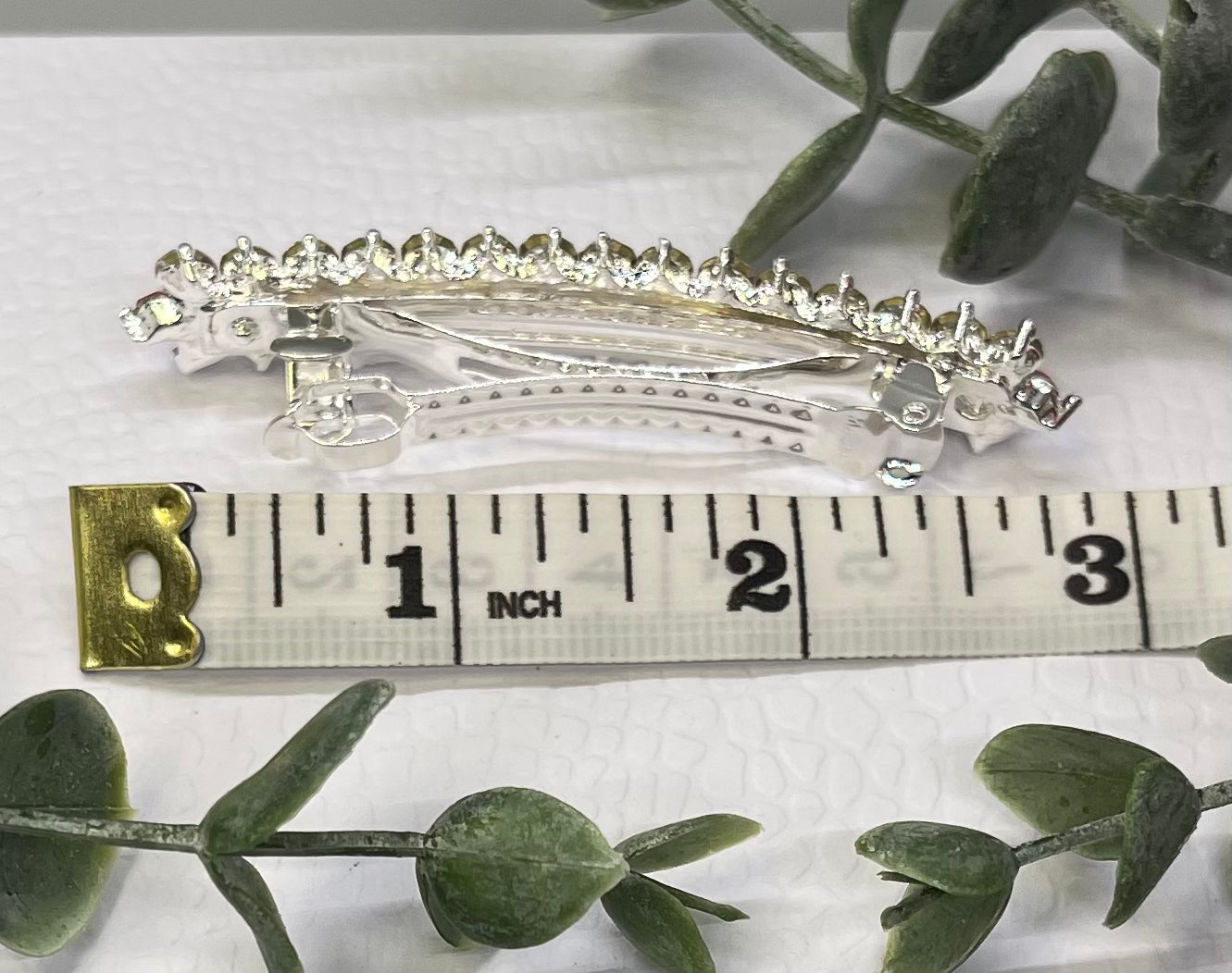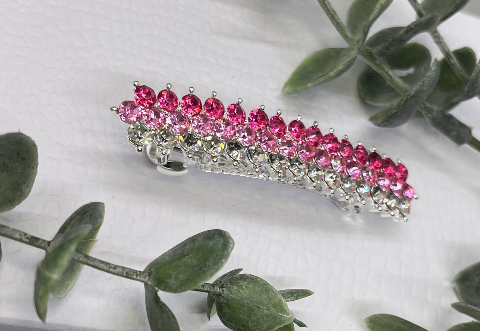 Pink Crystal rhinestone barrette approximately 3.0” silver tone formal hair accessories gift wedding bridesmaid princess