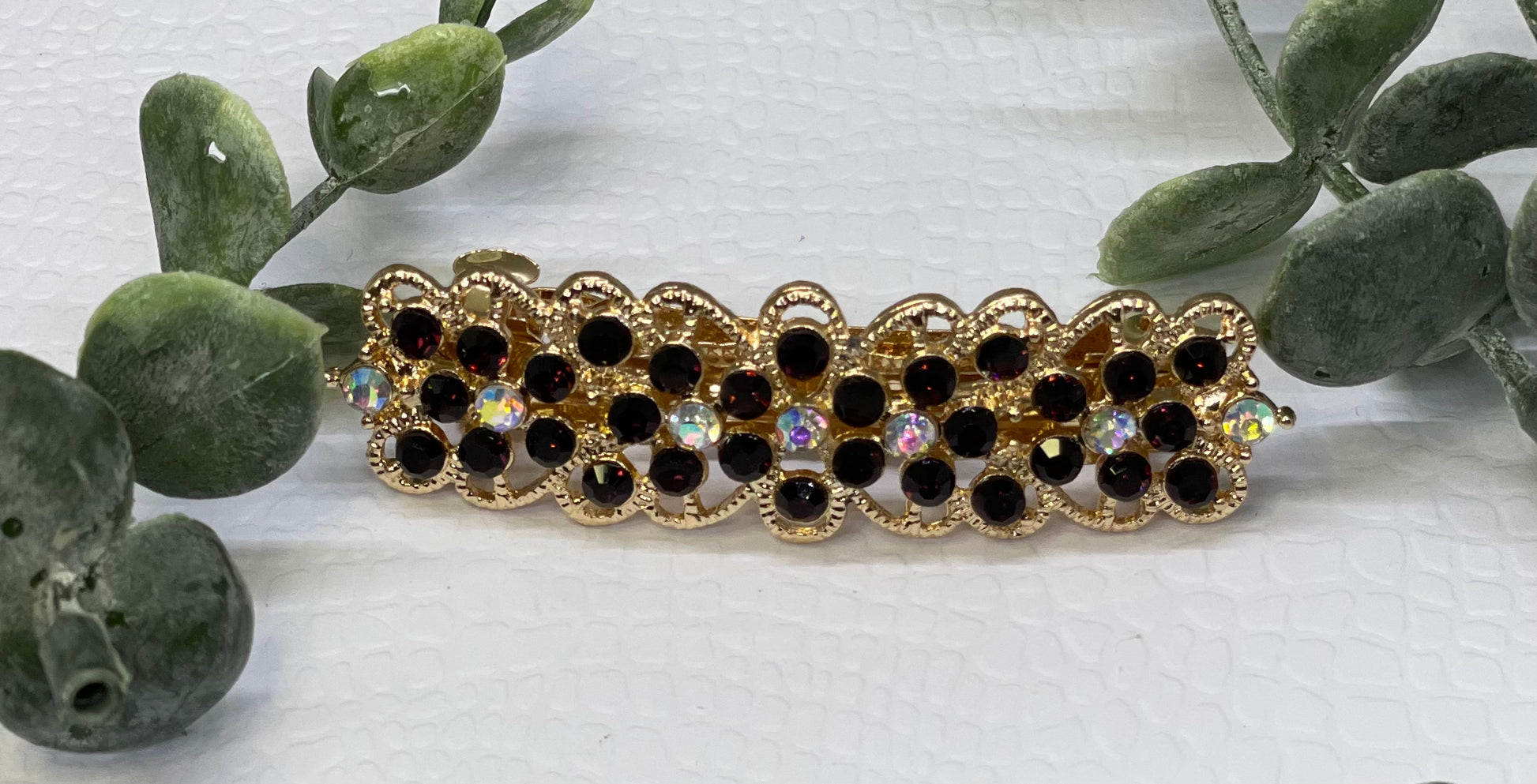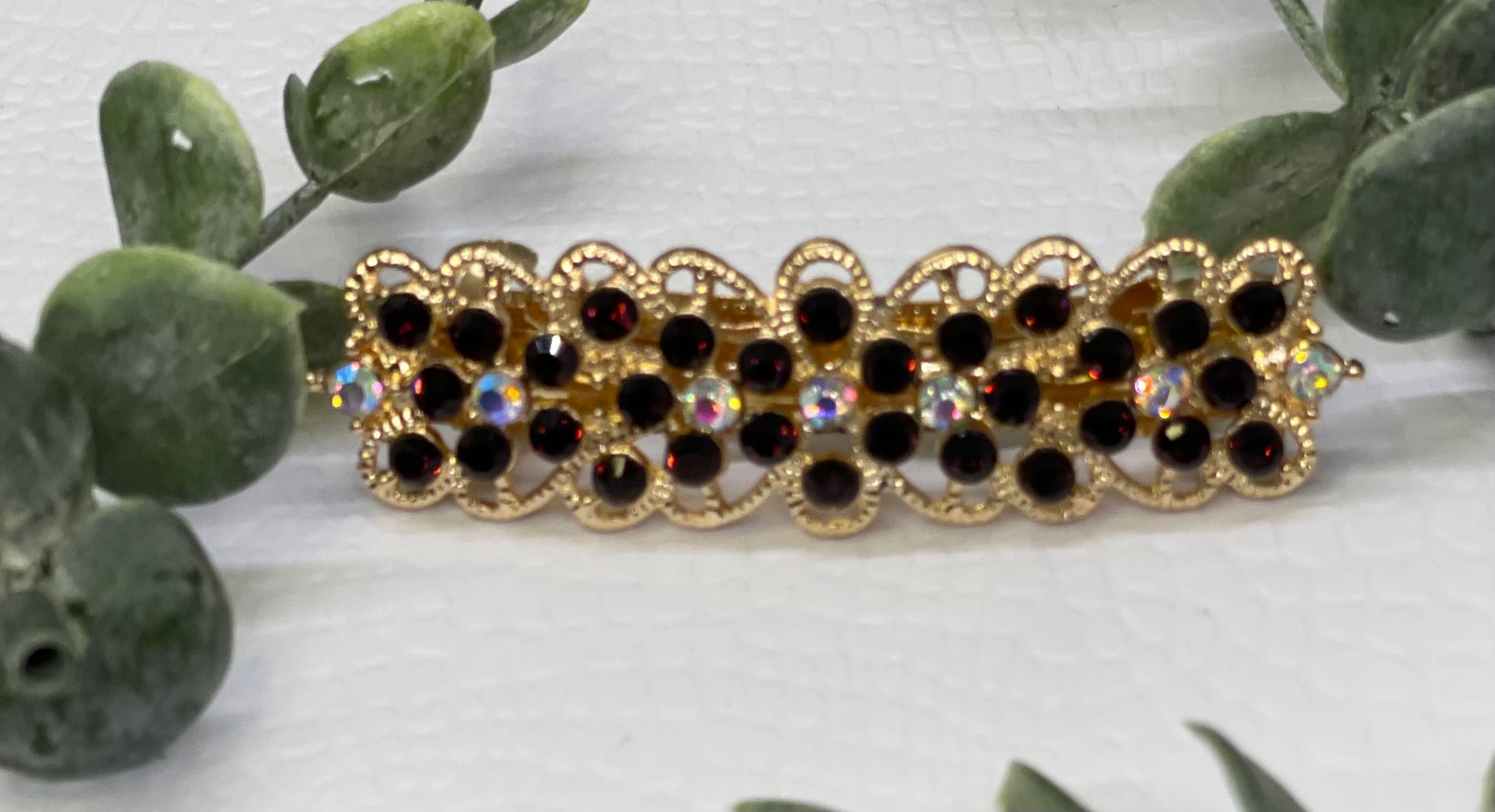 Dark brown Crystal rhinestone barrette approximately 3.0” gold tone formal hair accessories gift wedding bridesmaid princess accessory