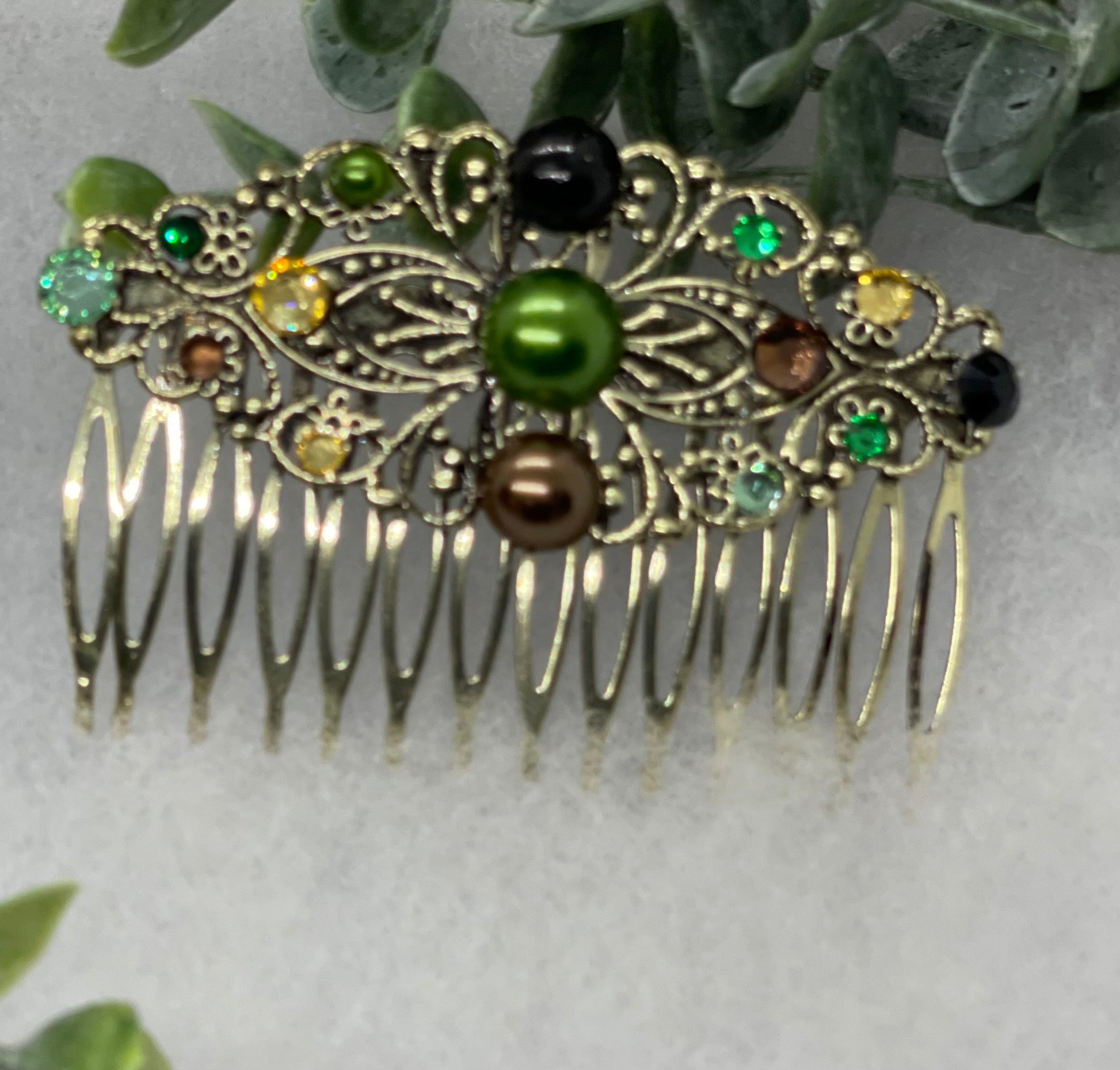 Camouflage crystal rhinestone pearl vintage style antique hair accessories gift birthday event formal bridesmaid 3.5” Metal side Comb ##650